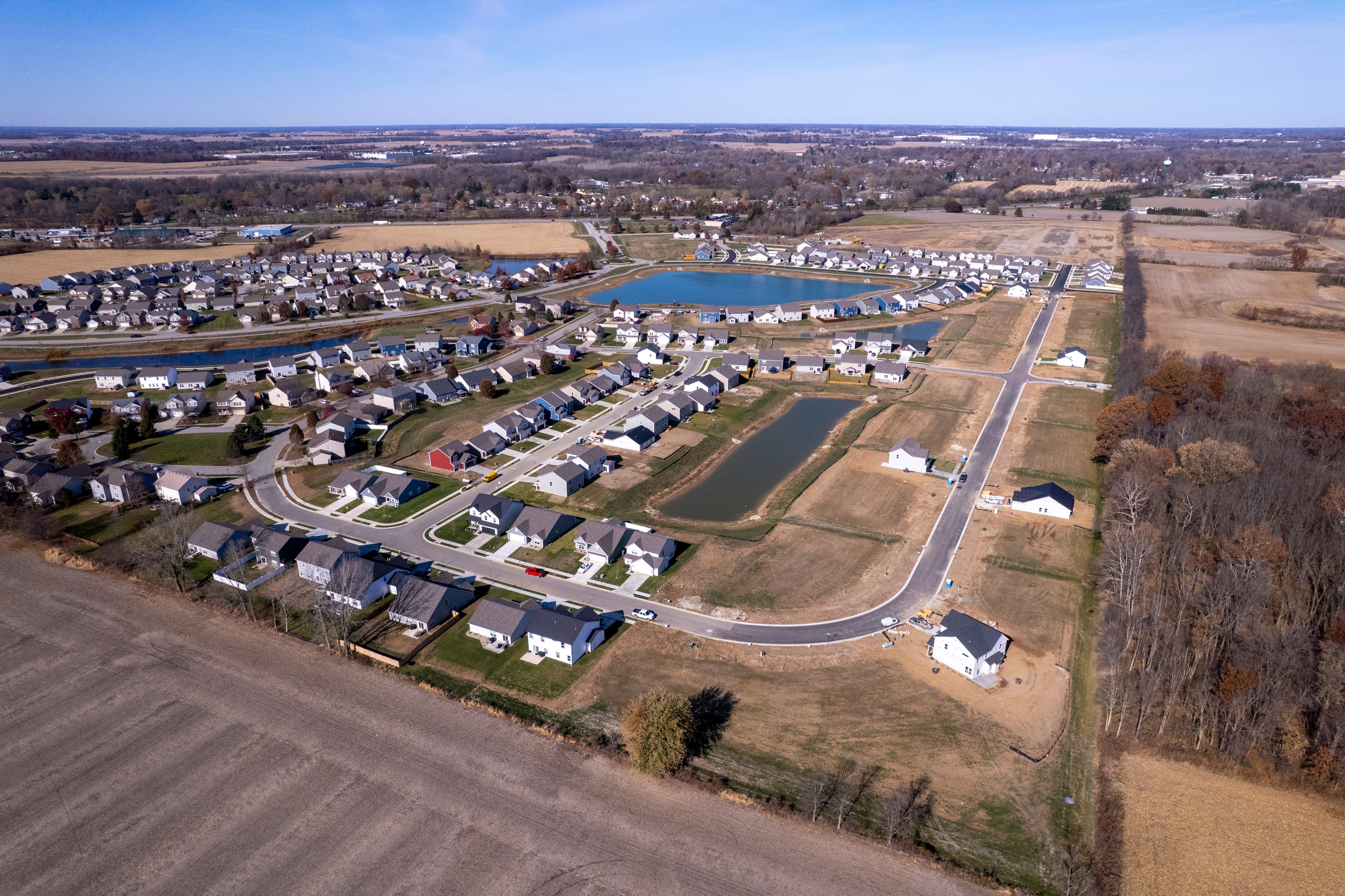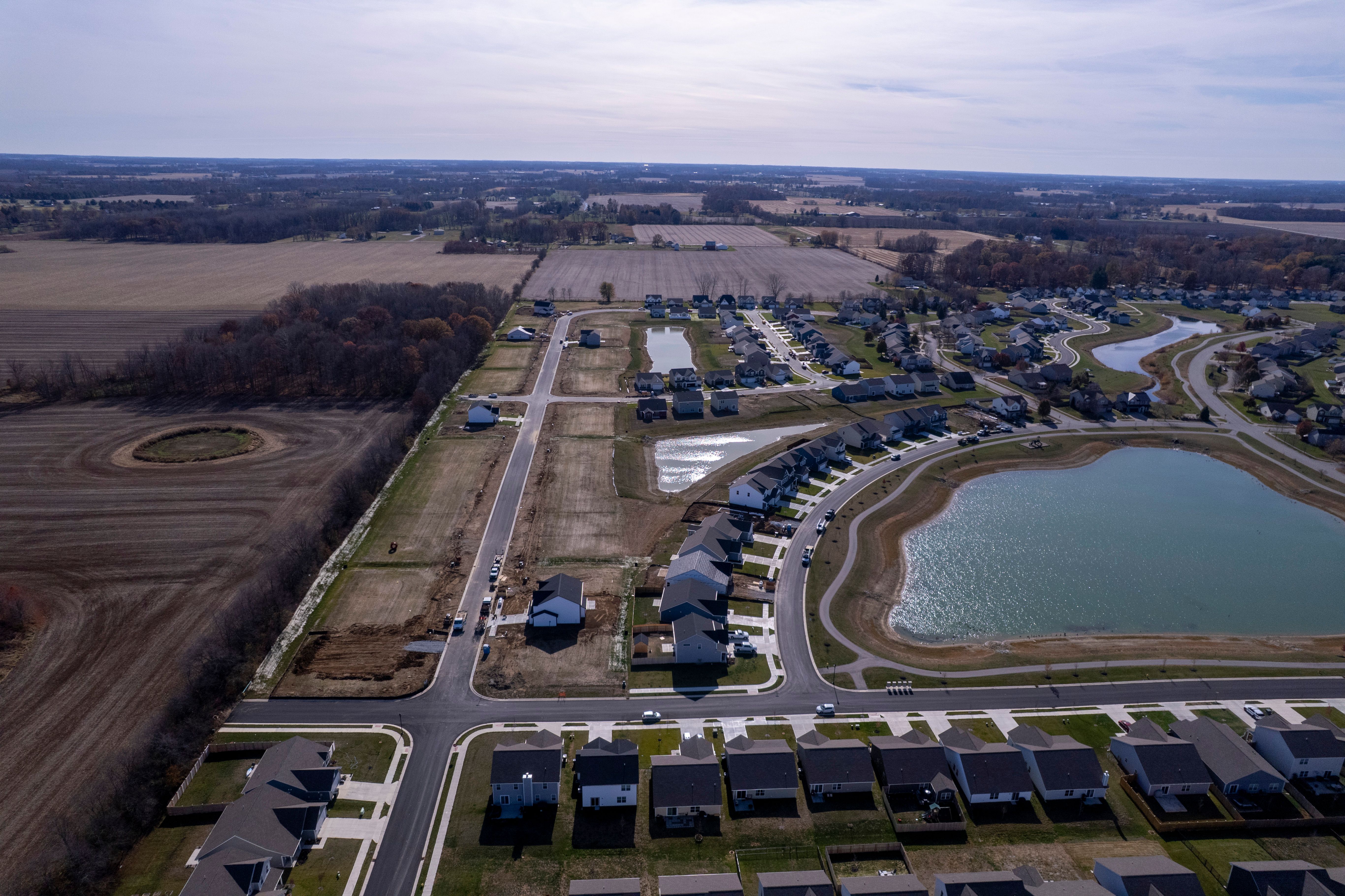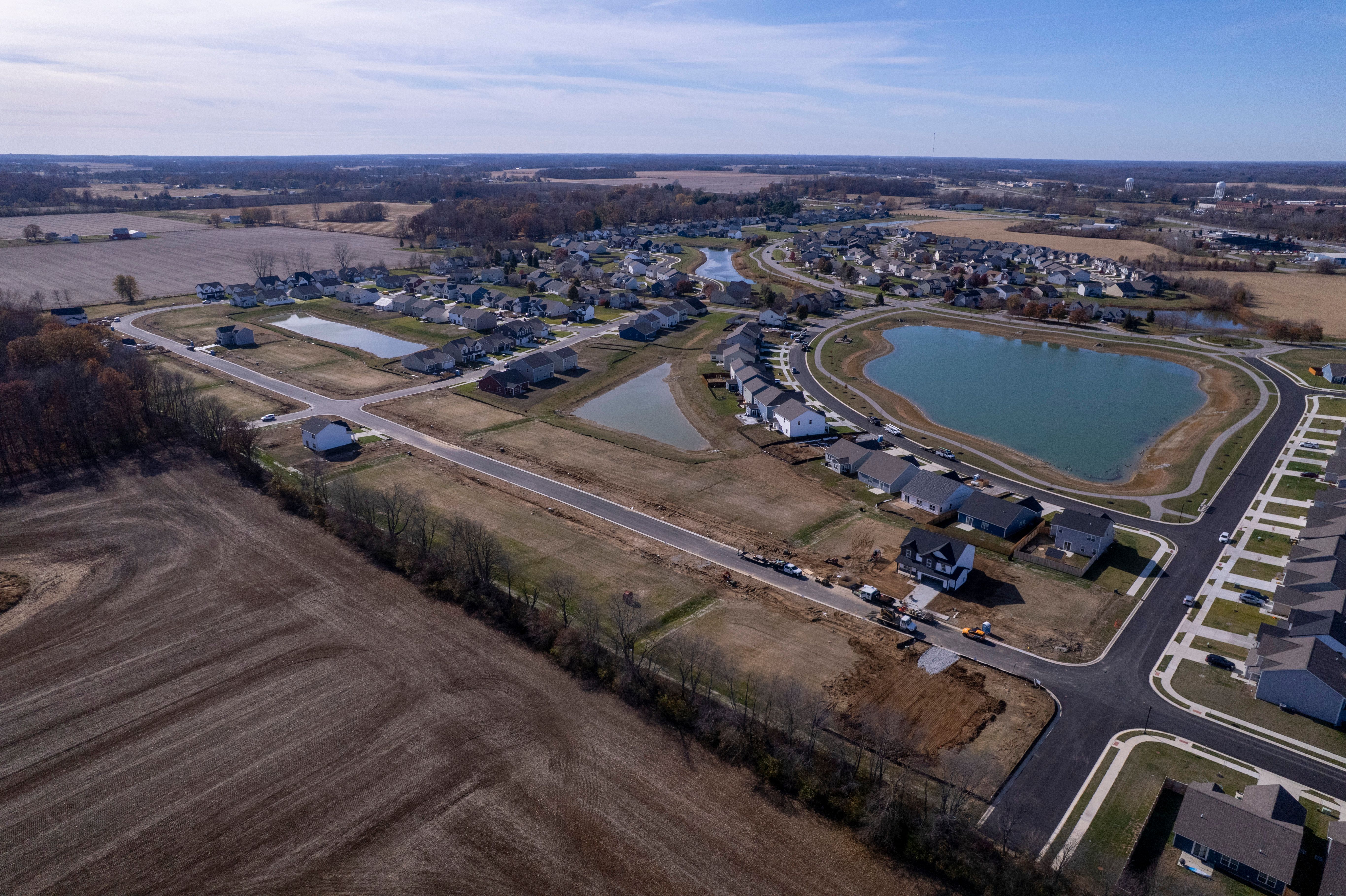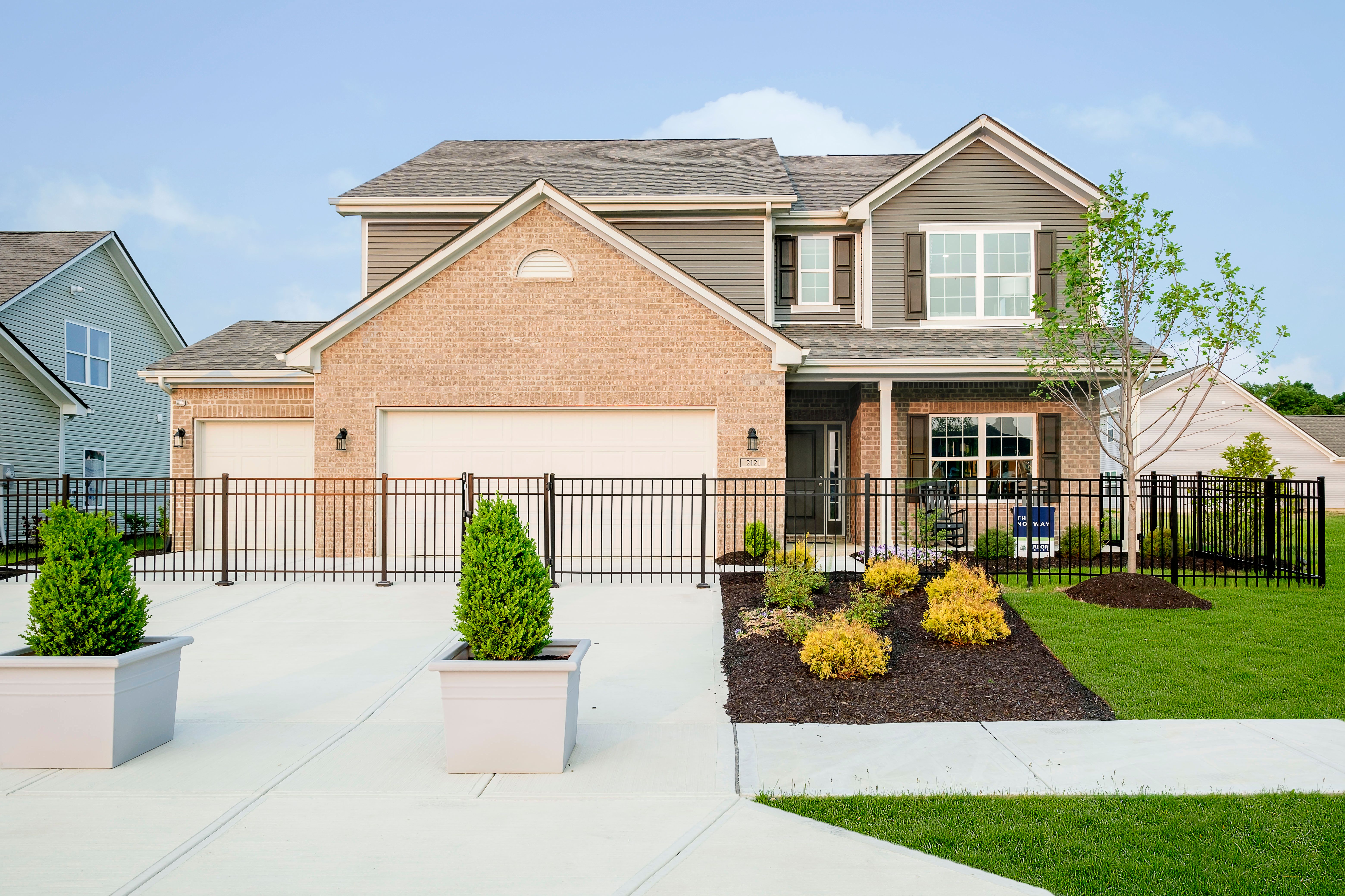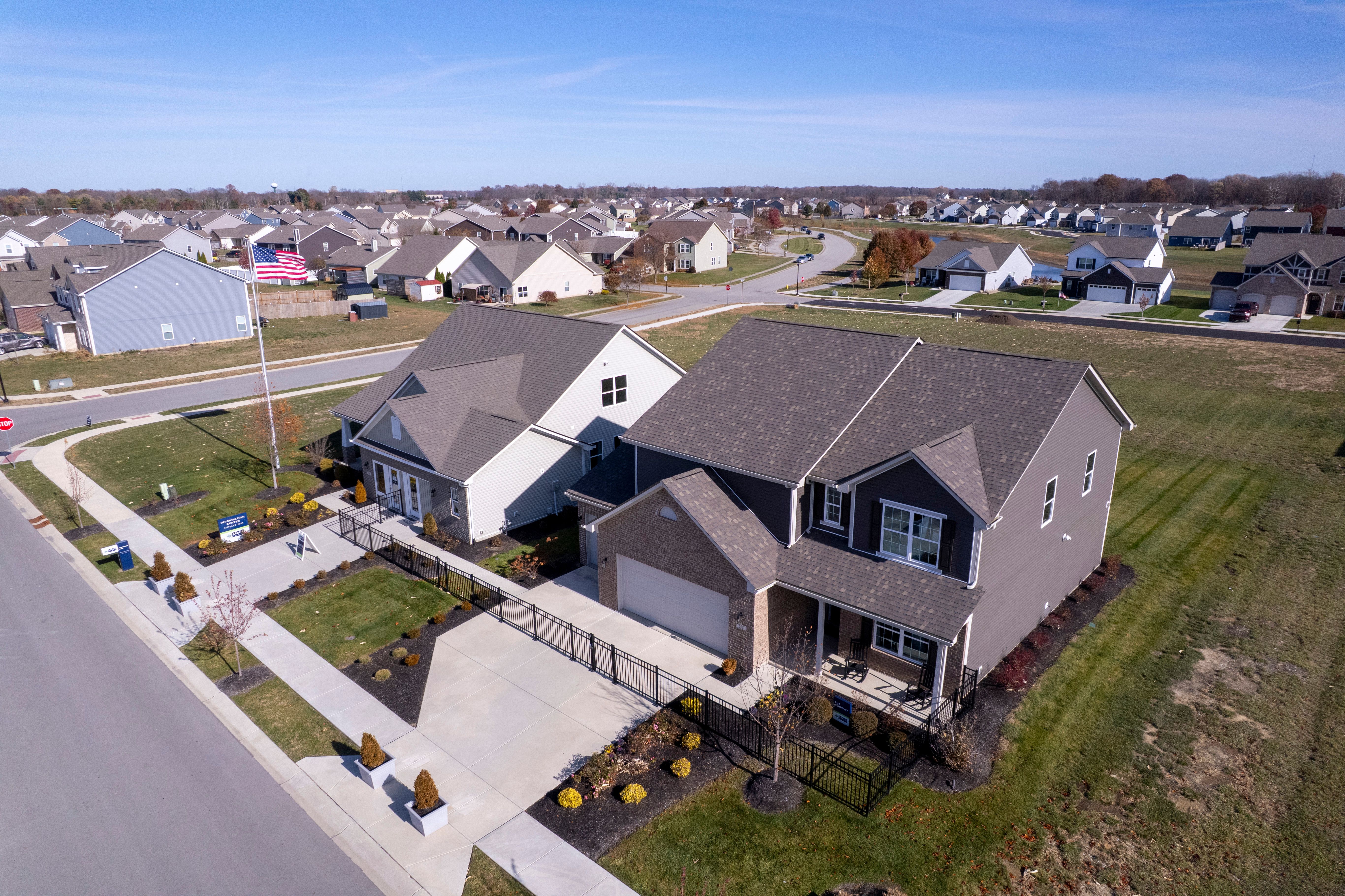 Start on Pendleton Pike for 1.3 miles and then take US36 15 miles. Turn right onto SR9 and arrive to Huntzinger Farm. Turn left onto Huntzinger Blvd. Drive straight and around the round-a-bout and arrive on your right to the Bradford Model located at 2105 Maplewood Lane Pendleton, Indiana