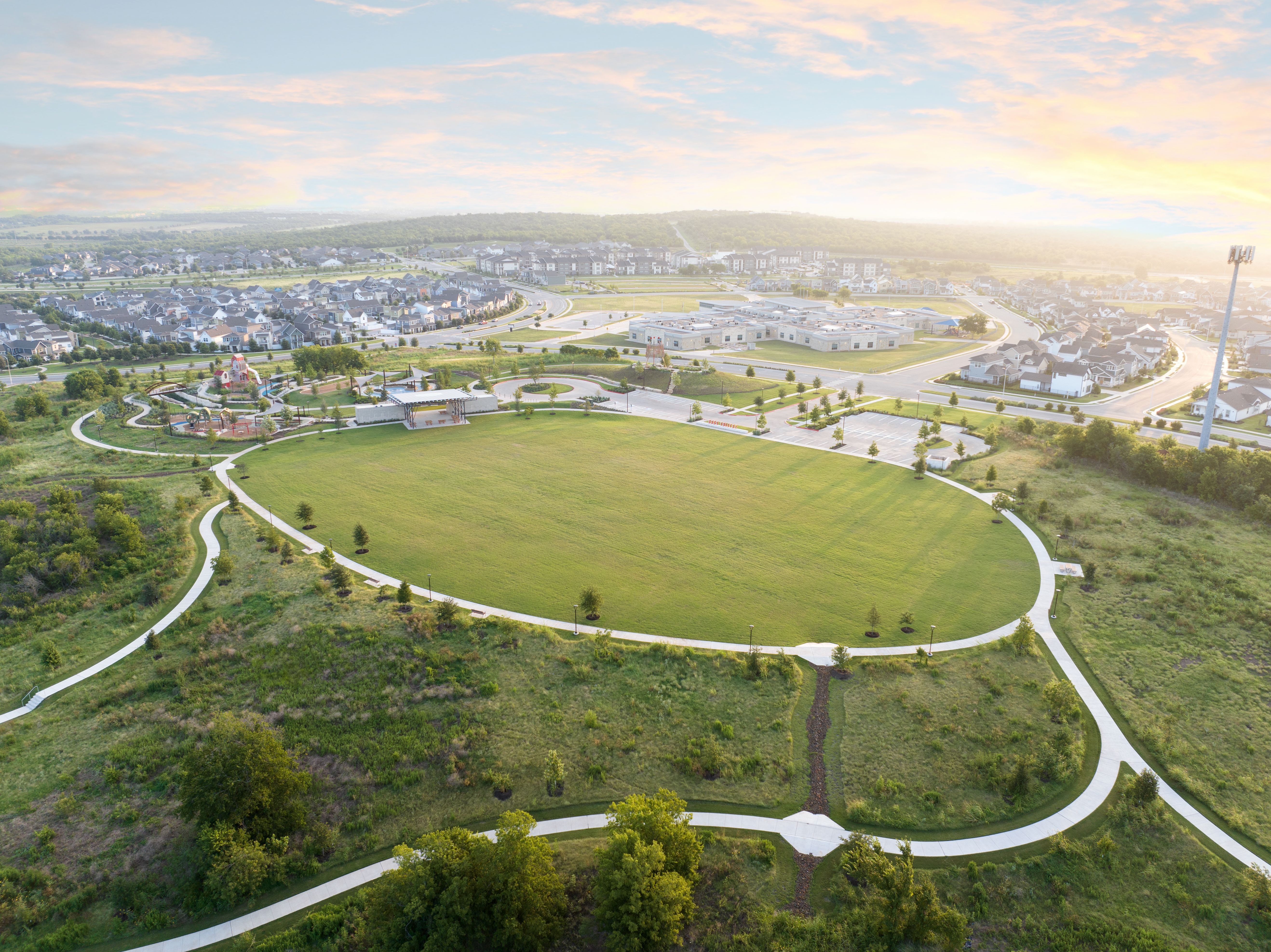 This vibrant master-planned community captures the true essence of Austin's vibrant culture. Easton Park is focused on celebrating the best of Austin living with a vibrant community that enjoys activities like live music, food trailers, movies in the park, and running the trails. Just 12 miles from downtown Austin, Easton Park offers a unique blend of community connection and a deep, seamless tie to the heart of the city, giving residents the best of both worlds. Residents also enjoy an on-site elementary school, unique community living with our quad-style homes, and Pacesetter-exclusive ADU (additional dwelling unit) options.