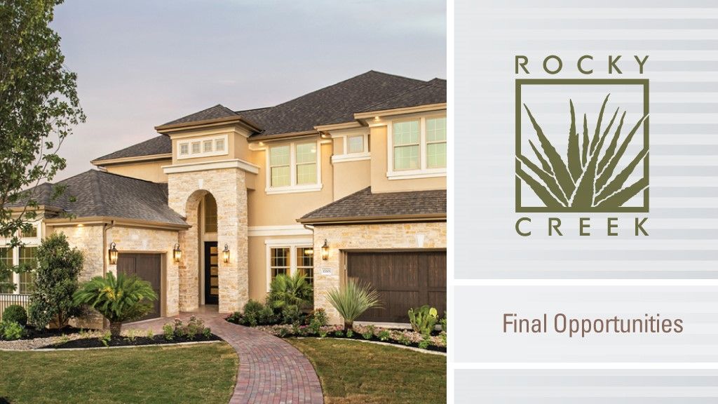 Closing Out! Only a Few Homes Remain in Rocky Creek Enjoy the rural beauty of Hill Country and the convenience of city living at Rocky Creek. This intimate enclave is minutes from the heart of Bee Cave and close to Austin employment centers, excellent schools, shopping, dining and essential services. Experience a serene setting with over 300 acres of dedicated green space adjacent to the spectacular Shield Ranch section of the Nature Conservancy of Texas. Demand for new Austin homes for sale is high. Join the Rocky Creek Interest List now to ensure you get the latest community updates and news about floor plans, pricing and invitations to special events about our new Hill Country homes.A Limited Number of Homes Available You will love the homes offered in Taylor Morrison’s Rocky Creek neighborhood. But you need to hurry to take advantage of purchasing now as we only have a few homes left! A Great Location Rocky Creek is located just six minutes from the heart of Bee Cave. Residents will have easy access to Hill Country Galleria shopping, dining and entertainment and the Lakeway Regional Medical Center. Children attend acclaimed Lake Travis ISD schools including Bee Cave Elementary, Lake Travis Middle and Lake Travis High. Community amenities will include a pool, children’s play area and nature trails.