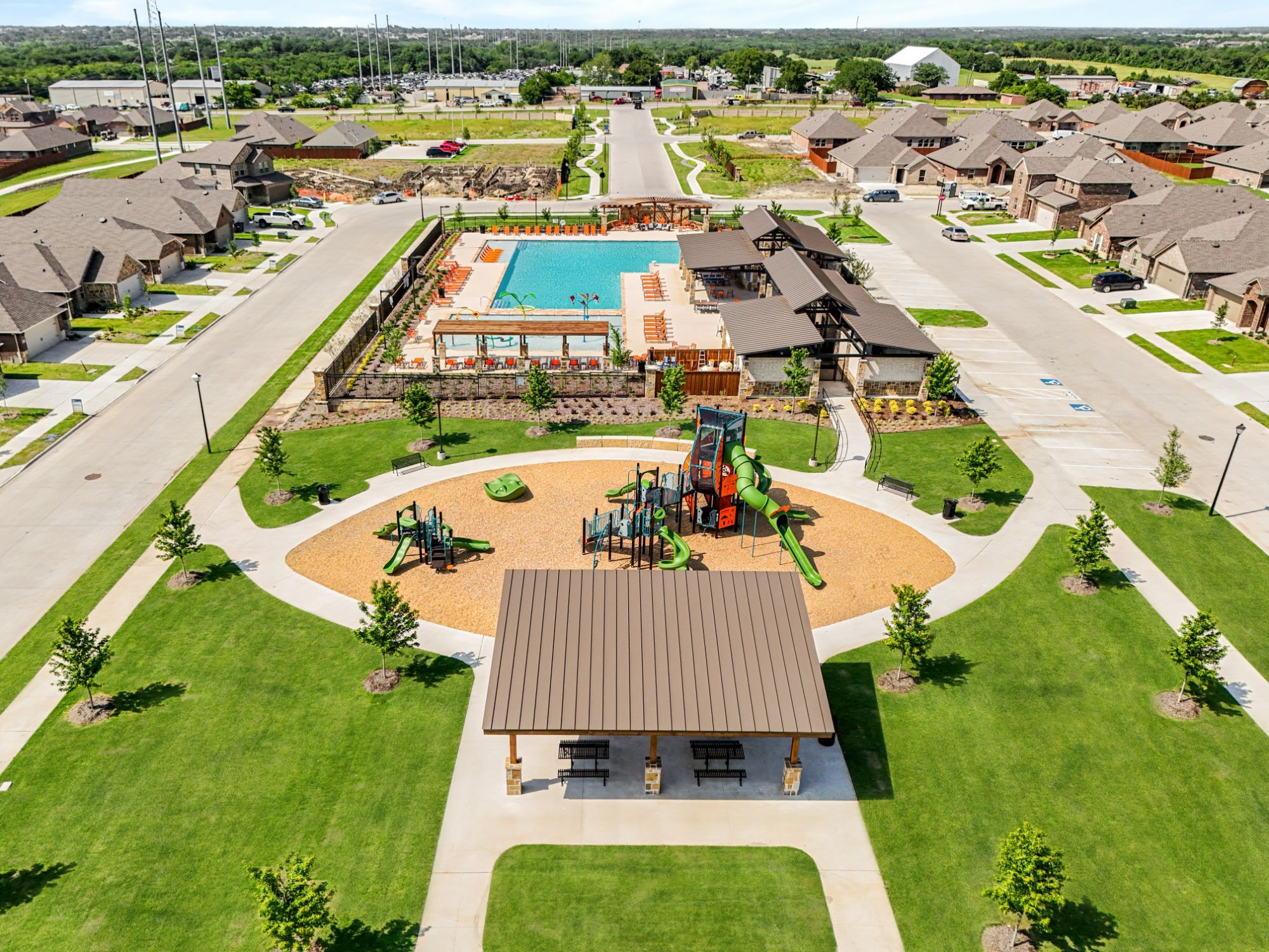 - Homeowners can enjoy an abundance of onsite amenities including a central amenity center, pool, community lawns, walking/biking trails, playgrounds, and sports courts.