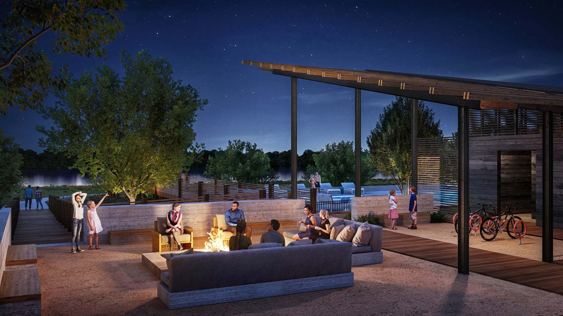 - Lakeside Trailhead: two-tiered pool, lounges, pool house, fire pit, Overlook