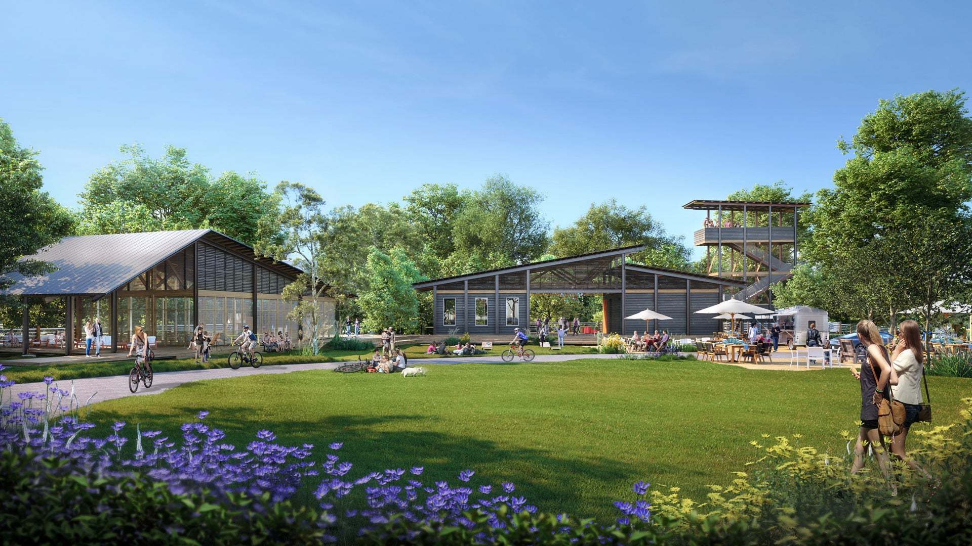 - Village Trailhead: pools, sun shelf, pool house, playgrounds, Strider pump track