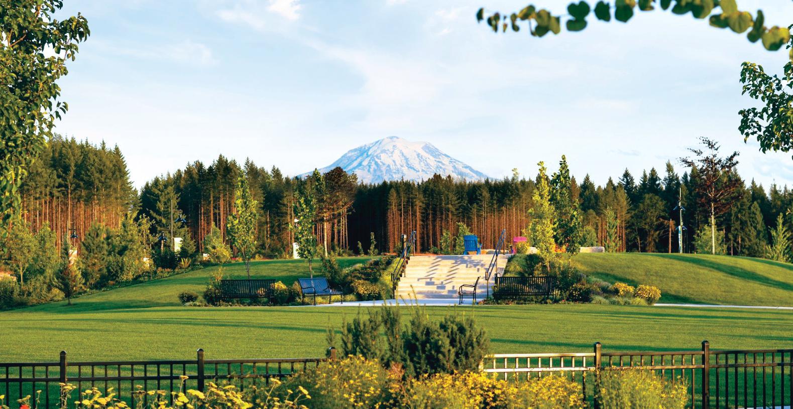 - The 3.9-acre recreation center with 10,000 square-foot private clubhouse offers an indoor pool, fitness, club lounge, pickleball courts, bocce ball, dog park, and beautiful views of Mt. Rainier