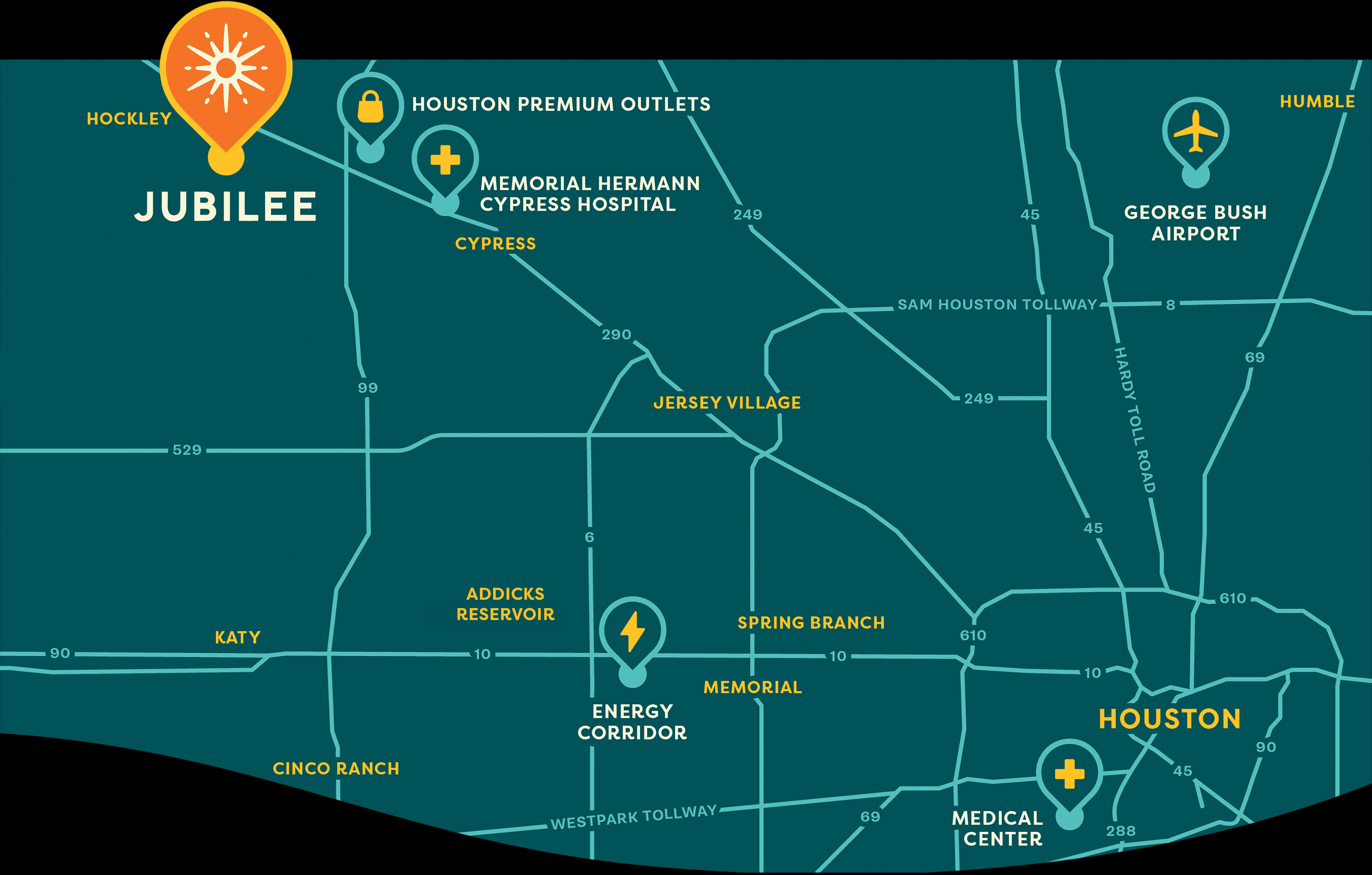 We believe that where you live has a huge impact on the overall health and happiness of your family. We are raising the bar for how a community can better the lives of the individuals that live in it by emphasizing a more holistic approach to wellness and creating a lifestyle rooted in positivity. Join us and discover why we call Jubilee "The Joyful Neighborhood!" Nestled in tranquil Hockley, Texas, yet effortlessly accessible to modern conveniences by quick highway access, Jubilee offers the perfect balance of solitude and accessibility. Discover why you’ll love calling this place home. Johnson Development is a nationally recognized, award-winning residential and commercial land development company. Now celebrating 50 years, the company has set the standard for successful master-planned communities in Houston, Atlanta, Austin, Dallas-Fort Worth and other markets around the country.
