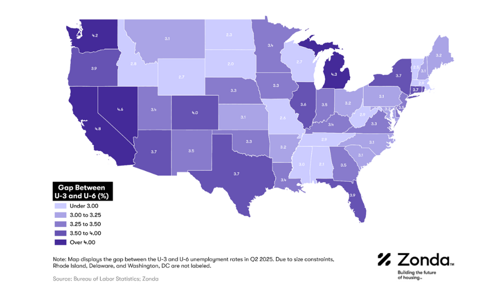 NewHomeSource parent company Zonda analyzed the U-6 and U-3/U-6 gap on a national and state-by-state basis to provide indications of where the labor market is more challenged and where it is holding up.