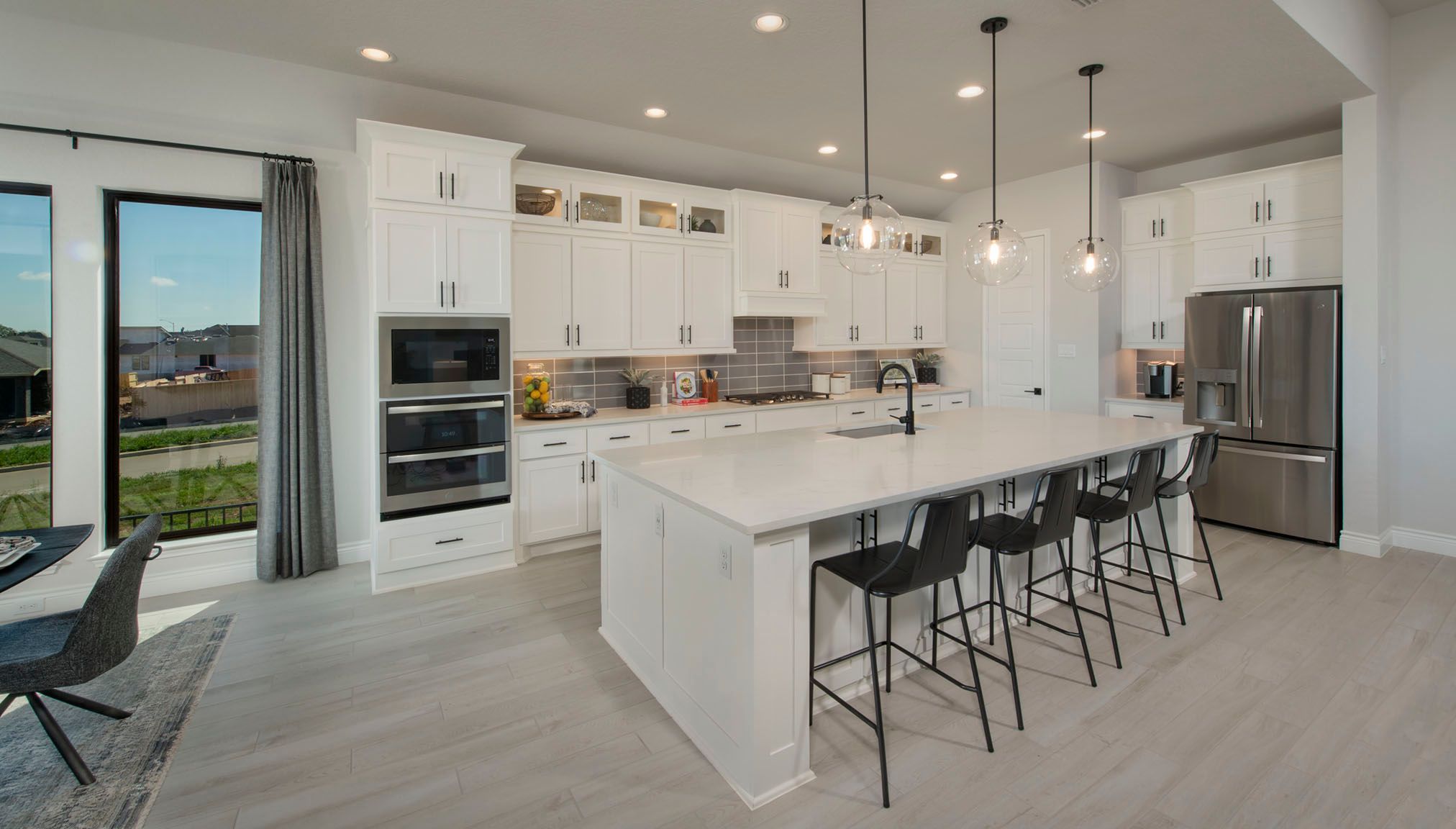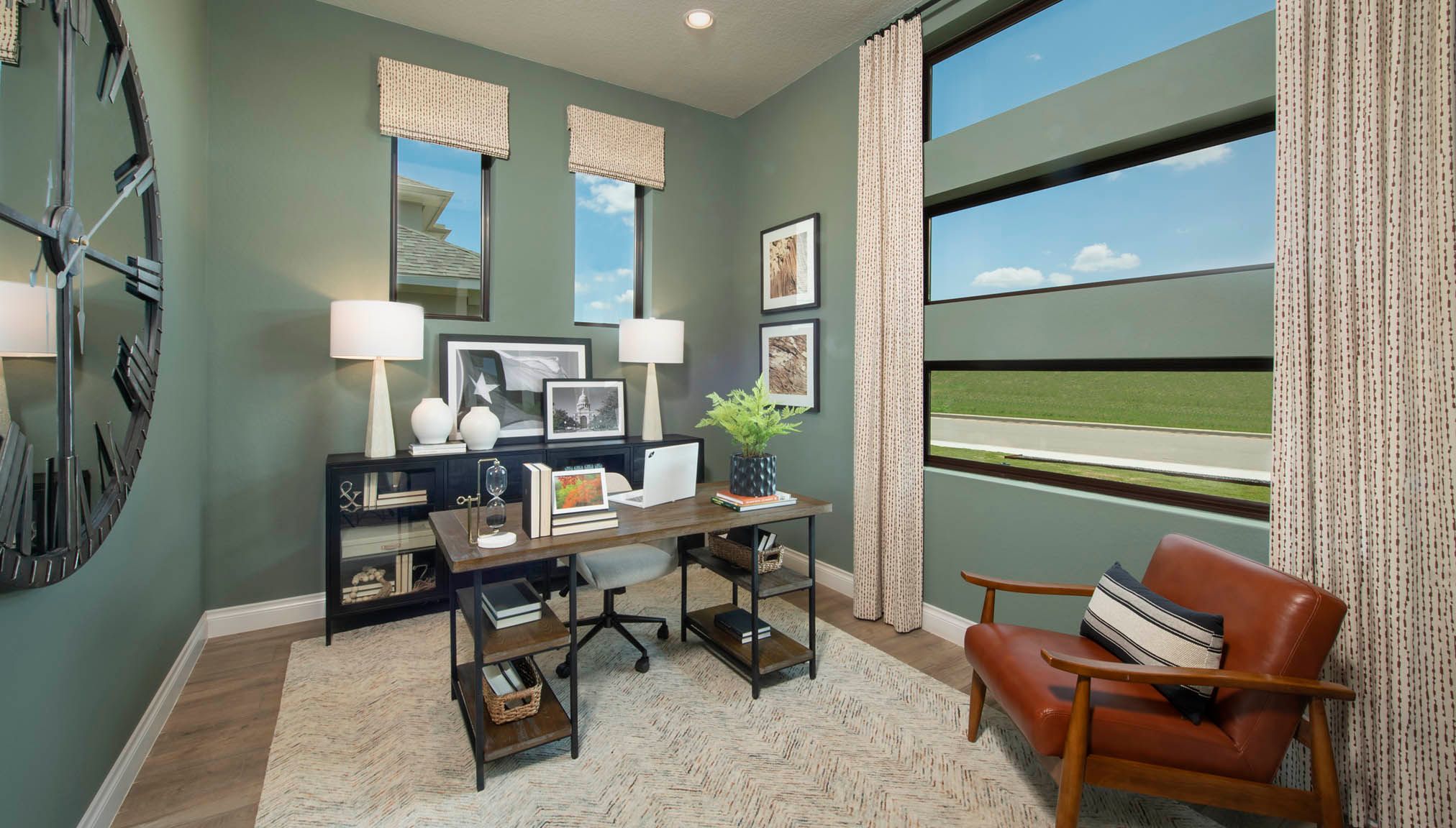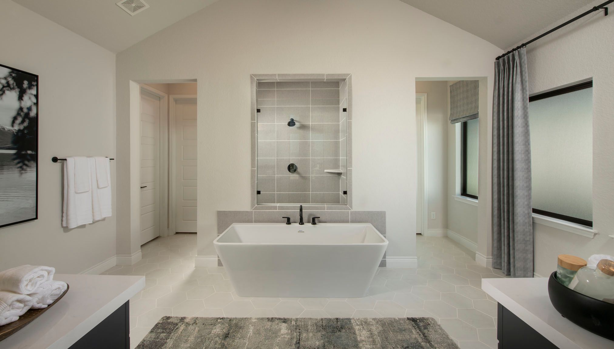 Extended entry with 12-foot ceiling. Home office with French doors off the main hallway. Game room with French doors for added entertainment. Open family room extends through the dining area and kitchen. Island kitchen with a walk-in pantry. Secluded primary suite features French doors, dual vanities, separate glass enclosed shower, garden tub, and a large walk-in closet in the primary bath. Guest suite with full bathroom and walk-in closet. Utility room with linen closet. Covered backyard patio. Two-car garage. Representative Images. Features and specifications may vary by community.