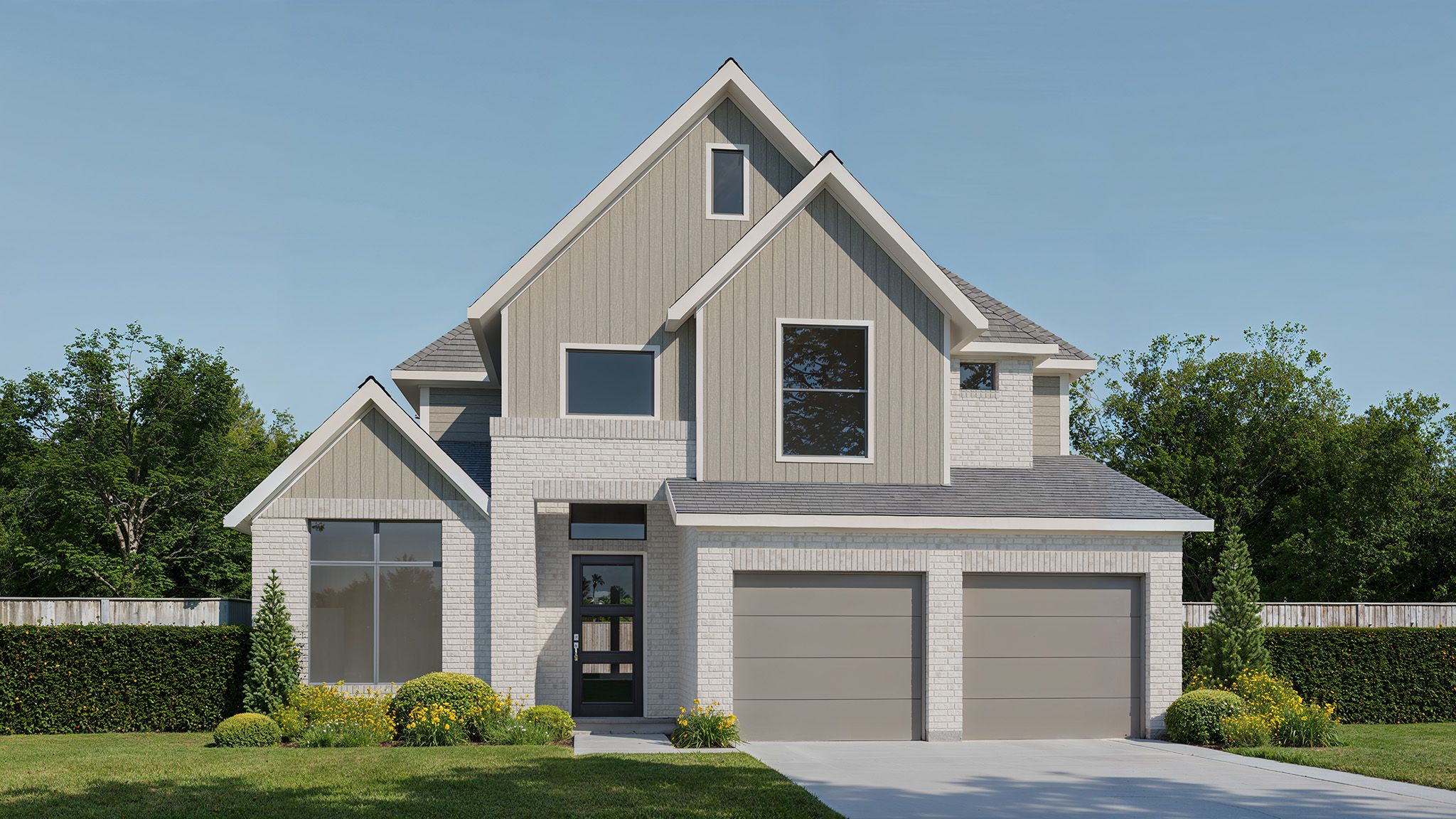 Front porch opens into a two-story entryway with a grand staircase. French doors enclose the private home office. The utility room is conveniently located off the main hallway. The family room boasts extended ceilings and a wall of windows. The kitchen has an island with built-in seating and a walk-in pantry. The dining area is embraced by a corner wall of windows and allows entrance into the covered backyard patio. The primary bedroom boasts three large windows. French doors open into the primary bathroom which hosts dual vanities, a garden tub, glass enclosed shower, and two walk-in closets. Upstairs you are welcomed by a game room and secondary bedrooms. Completing the home is a guest suite tucked beyond the mud room which features a full bathroom. Two-car garage. Representative Images....