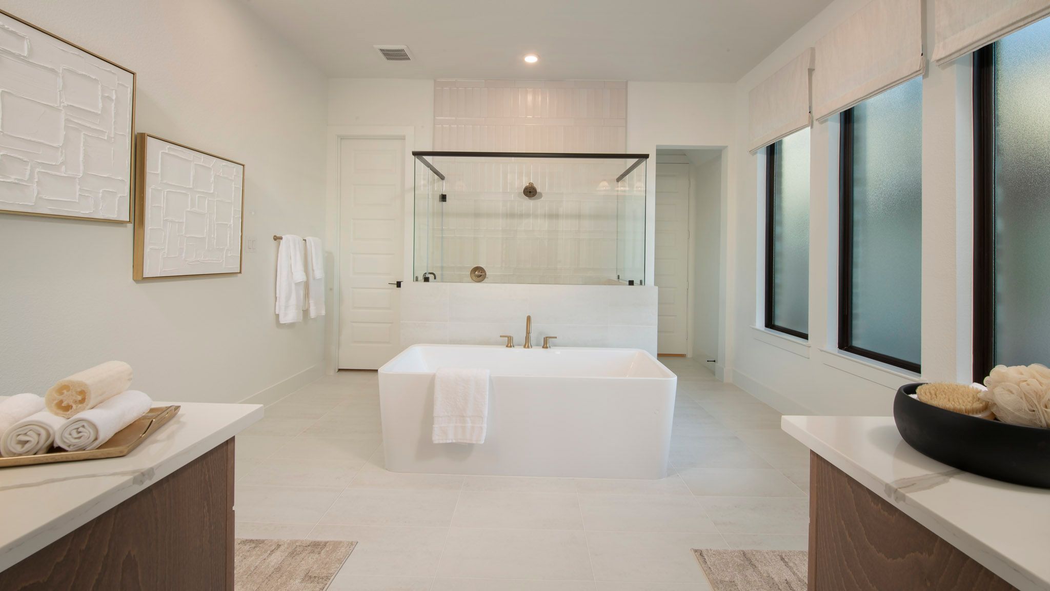 Home office with French doors frame entry. Game room with French doors and formal dining room just off the extended entry. Spacious family room with wall of windows and fireplace opens to the kitchen and morning area. Island kitchen with built-in seating space and a corner walk-in pantry. Primary suite features a large wall of windows. Primary bath offers a French door entry, dual vanities, garden tub, separate glass enclosed shower and a wall-in closet. All additional bedrooms offer a private bathroom and walk-in closets. Covered backyard patio. Mud room and utility room just off the three-car garage. Representative Images. Features and specifications may vary by community.