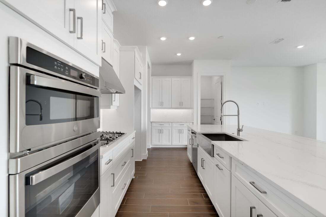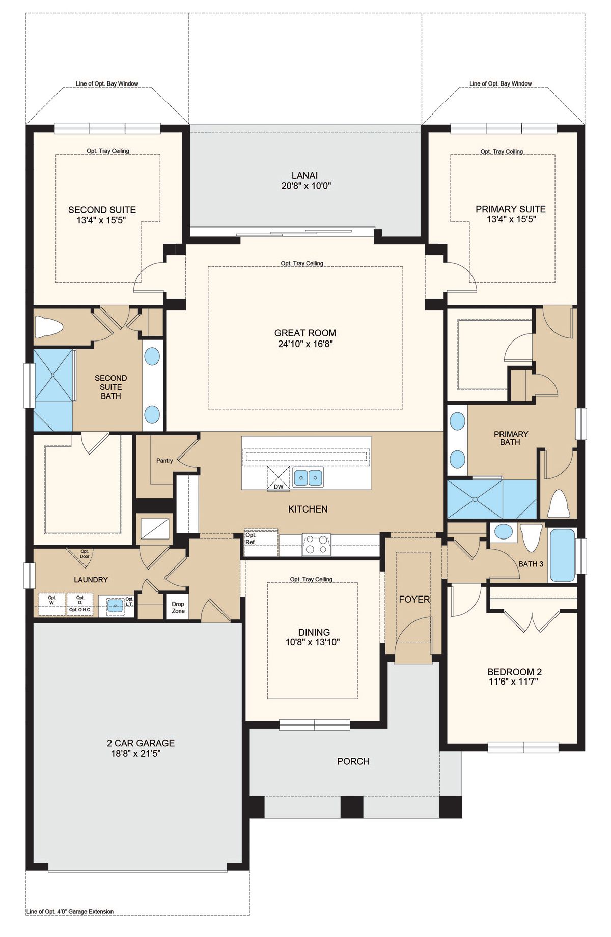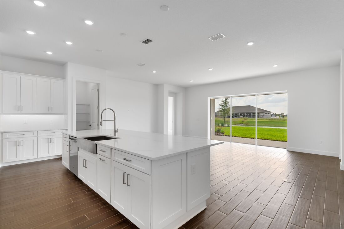 The Ambra is totally on-trend, with features inspired by homeowners like you. The open concept living area combines the great room, a spacious kitchen with large central working island, and an expansive view of the lanai. What really sets it apart are the two primary suites, each with spacious walk-in closets and baths with walk-in showers. In-demand options include bay windows, media room in lieu of formal dining room, gourmet kitchen, deluxe primary bath with soaking tub and an outdoor kitchen.