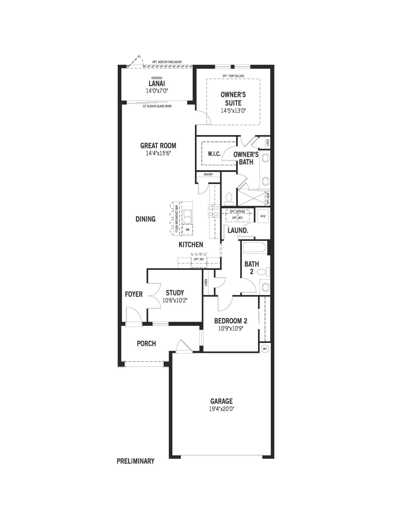 The 1,501 sq. ft. Anclote is an attached villa floorplan with serious style and optimized spaces for daily living, nightly privacy and any kind of special occasion. The cozy porch of this interior home leads to both the 2-car garage and the foyer which opens to a flex room thats perfect for entertaining, a hobby room or a home office. The airy Great Room features expansive sliding glass doors, overlooks the dining and kitchen areas, and offers plenty of space for gatherings, daily meals, games, movies and more. A breakfast bar and covered lanai create even more opportunities for conversation and enjoying your day. The private owners suite has a large walk-in closet and dual-sink bath of its own, while bedroom 2 has a full bath and easy access to the laundry room. *This home includes ener...