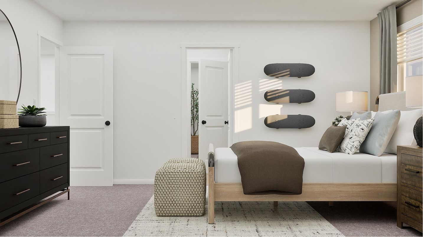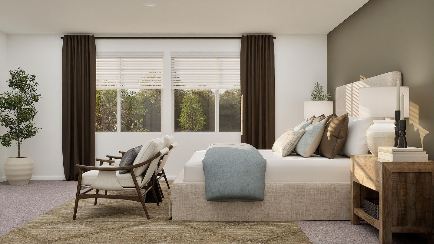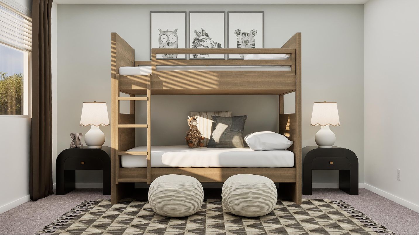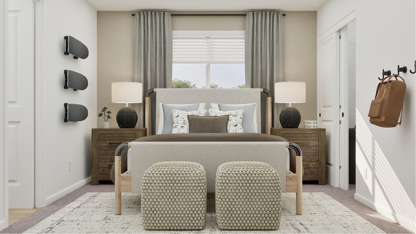 This two-story home has a classic layout that works well for growing families. The open concept living area is on the first floor and features a modern kitchen, Great Room and dining area, plus a back patio and a small tech room for gadgets. Upstairs are four bedrooms, including a comfortable owner’s suite with a full bathroom and walk-in closet.