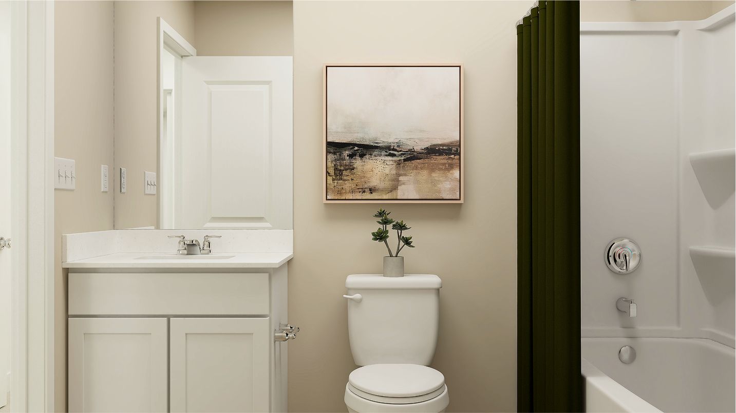 The first floor of this new two-story home is host to an inviting open-concept floorplan that blends the kitchen, living and dining areas for seamless entertaining and multitasking. All four bedrooms are located on the second floor, including the luxe owner’s suite at the back of the home with a spa-inspired bathroom and generous walk-in closet.