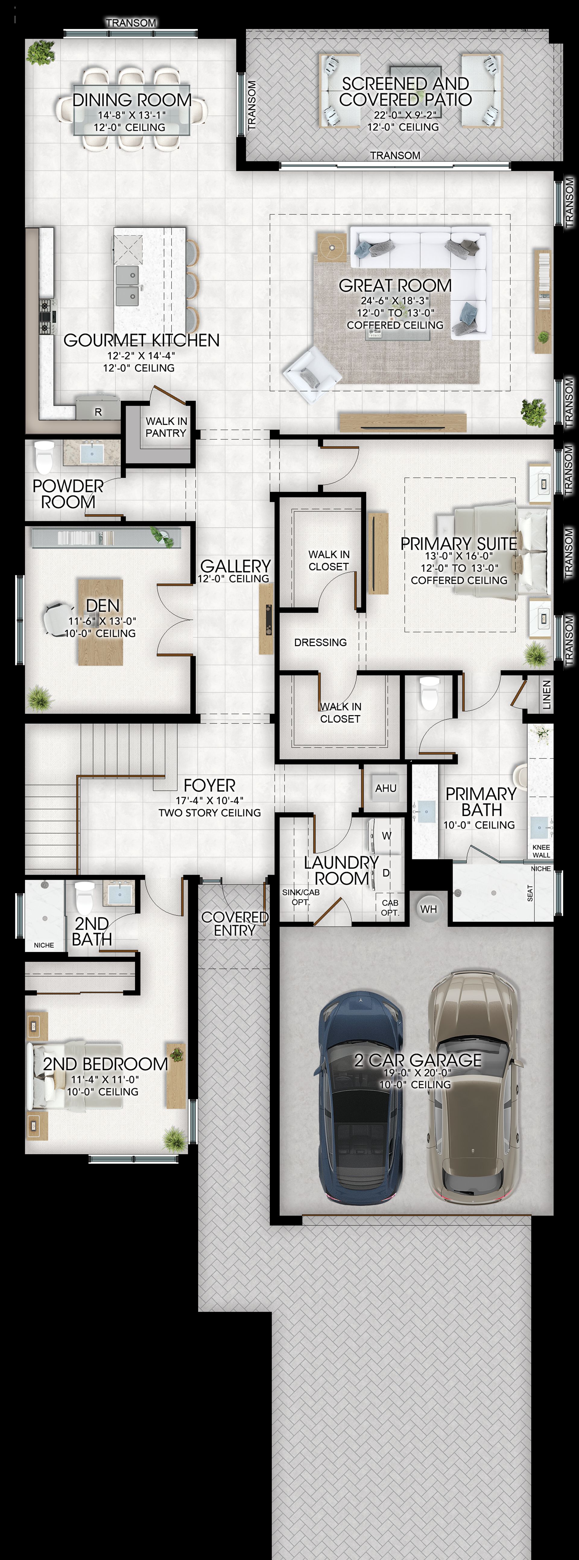 3 Bedrooms, 3 Bathrooms, 1 Half Bath, Den, Great Room, Bonus Room/Opt. 4th Bed, 2-Car Garage, 3,076 a/c sq. ft.