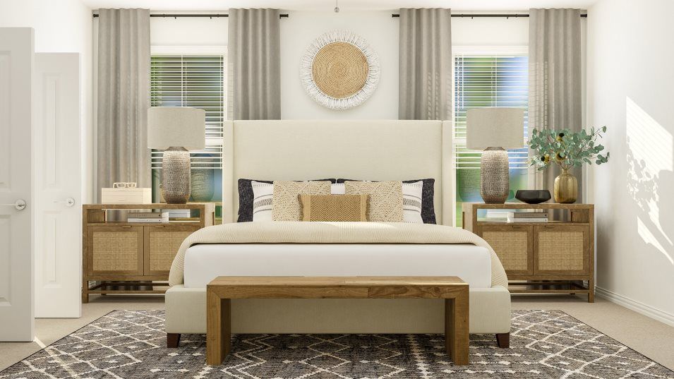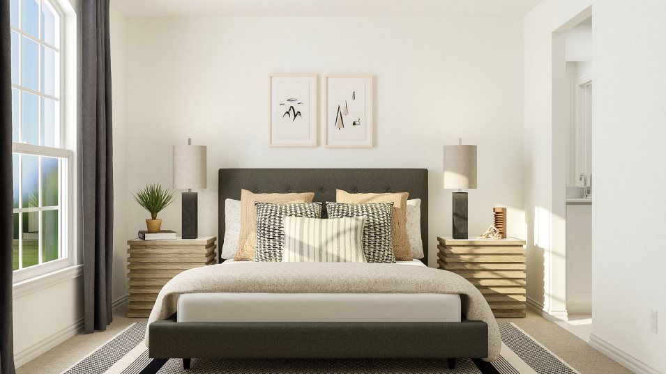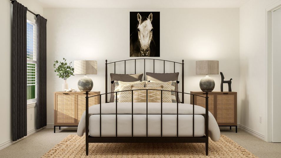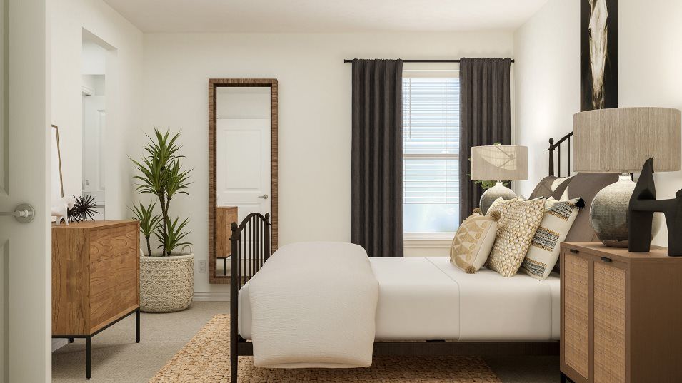 This two-story home has a unique layout that is perfect for families who need space. There are two bedrooms on the first floor, including the owner’s suite in the back of the home and a smaller suite off the foyer. The open living space is beside the owner’s suite and has a back patio. Upstairs are two bedrooms and a versatile bonus room loft.