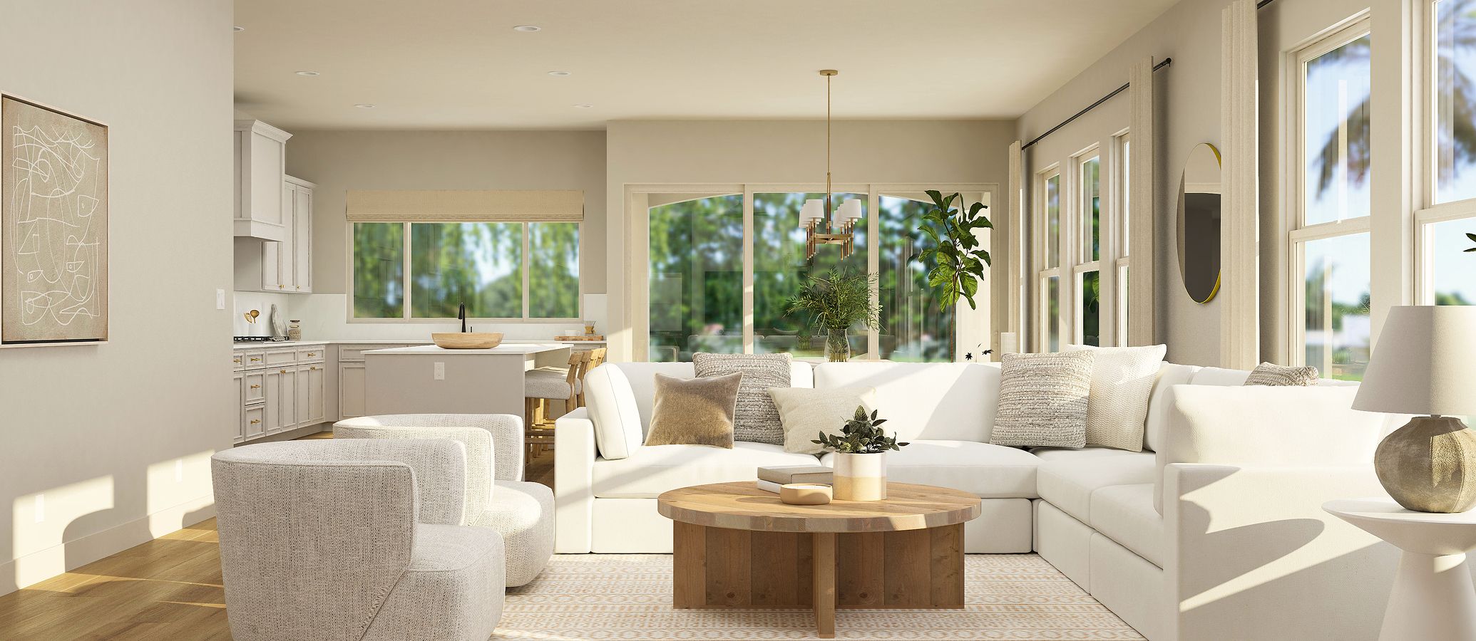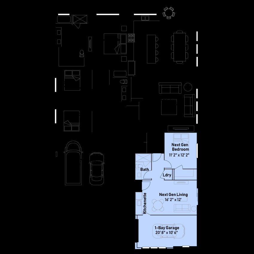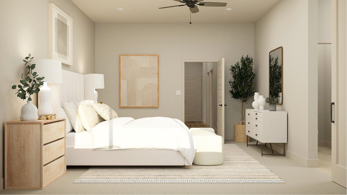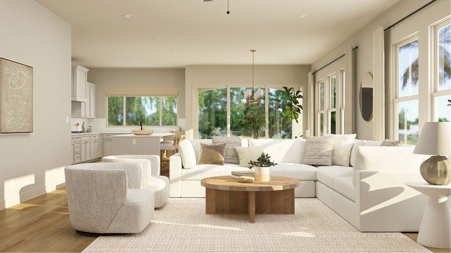 This new single-story home is ready for multigenerational living with Lennar’s Next Gen® suite, complete with a separate entrance, living area, kitchenette, bedroom, single-bay garage and laundry room. The main living space features an open-concept layout that combines the kitchen with the living and dining areas. Three bedrooms are tucked away to the side of the home, including the expansive owner’s suite, offering residents an en-suite bathroom and walk-in closet.