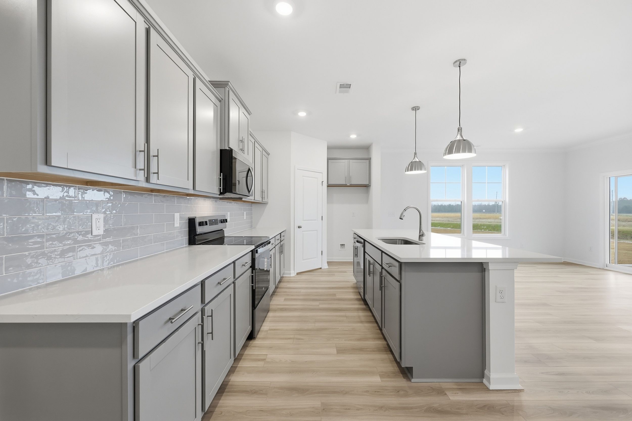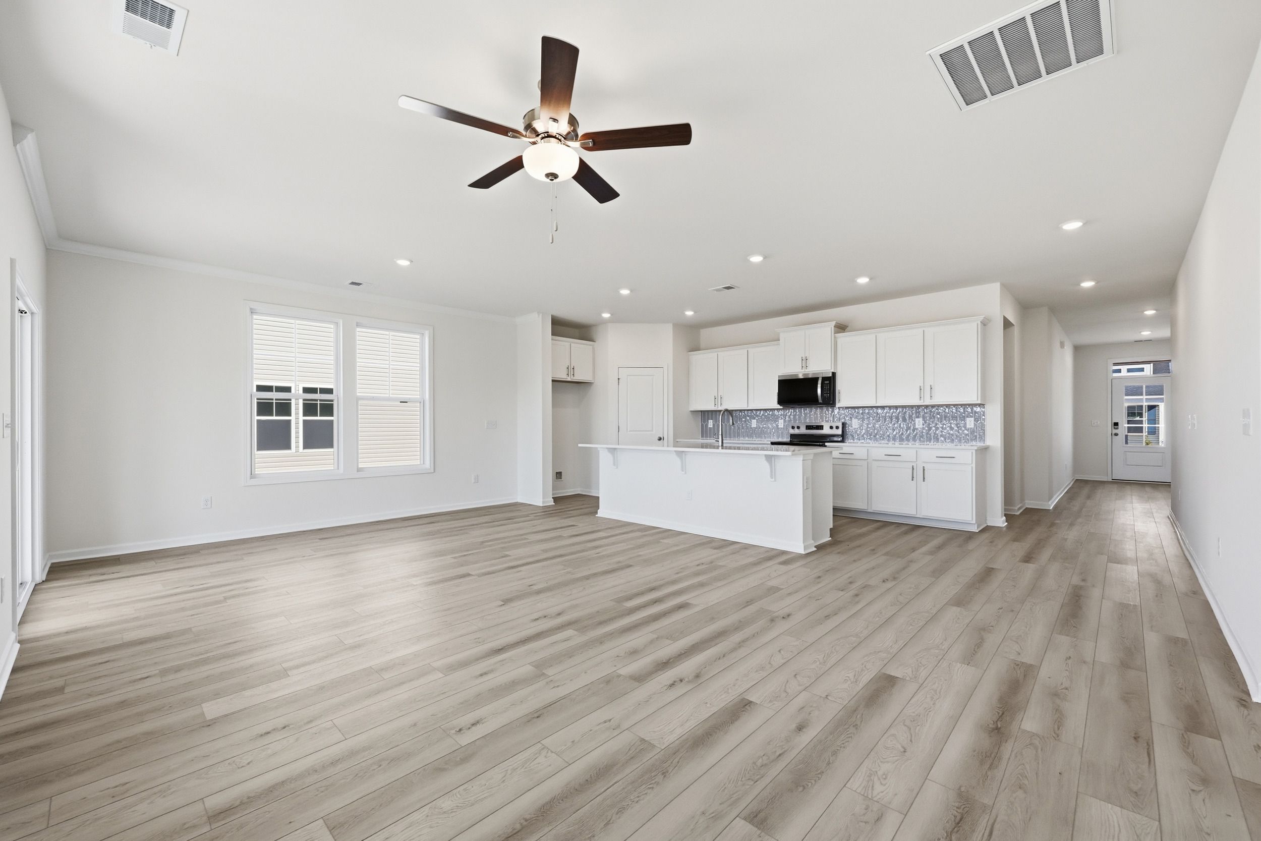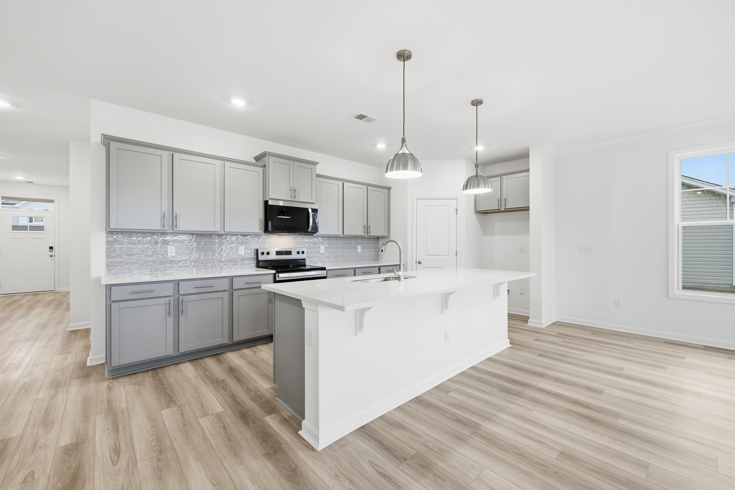 The Bailey II by Great Southern Homes is a thoughtfully designed single-story plan offering approximately 1,622 square feet of comfortable, open living space. Featuring 3 bedrooms and 2 full baths, this layout blends functionality and style for modern family living. The spacious great room flows seamlessly into the dining area and kitchen, creating an inviting setting for entertaining or everyday activities. The kitchen includes a large center island, walk-in pantry, and the option for a deluxe kitchen upgrade with upgraded cabinetry and finishes. The private owner’s suite is located at the rear of the home and features a generous walk-in closet and a luxurious bath with dual vanities, a soaking tub, and an optional tiled or deluxe shower. Two secondary bedrooms are positioned at the fron...