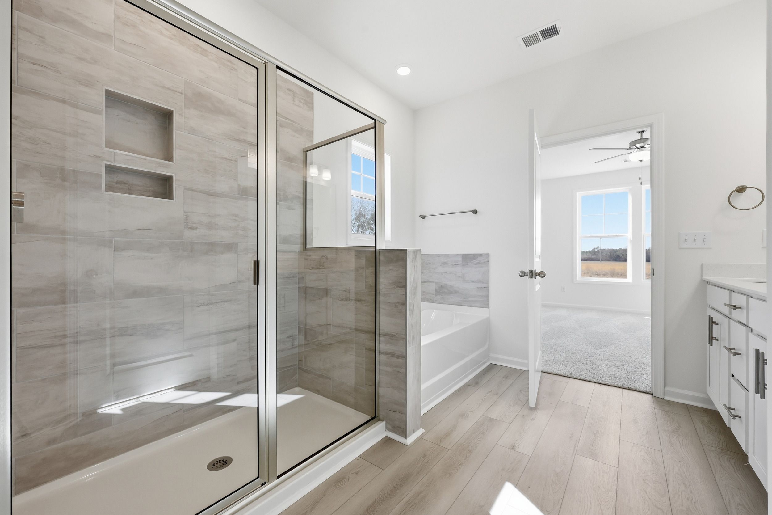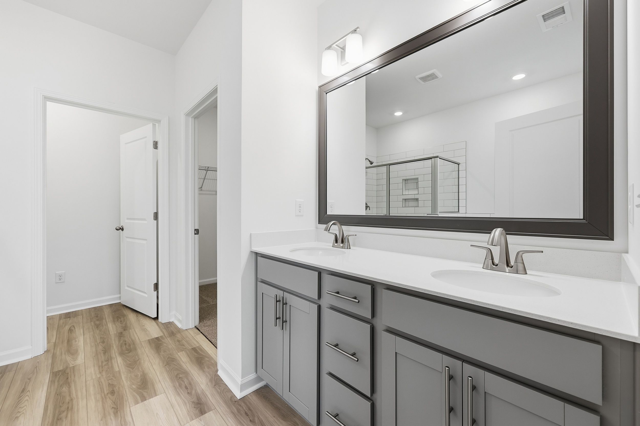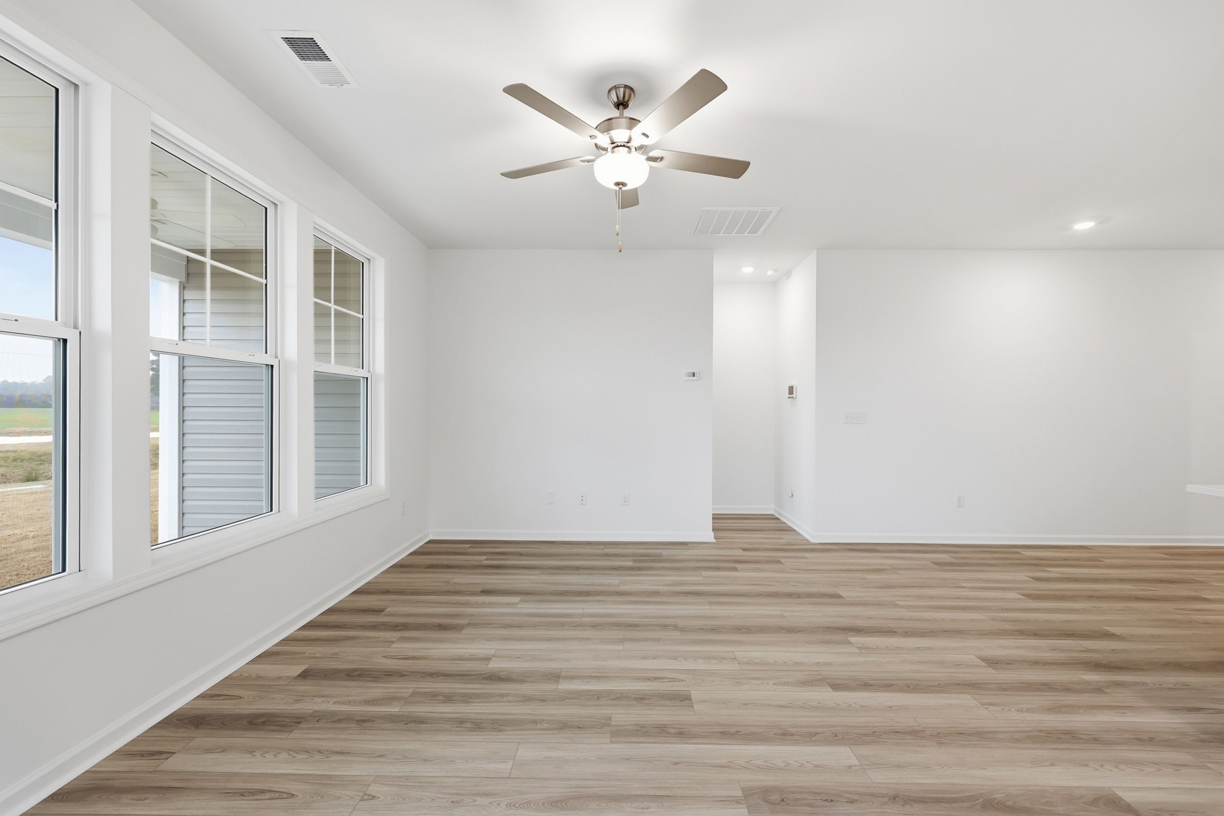 The Bailey II by Great Southern Homes is a thoughtfully designed single-story plan offering approximately 1,622 square feet of comfortable, open living space. Featuring 3 bedrooms and 2 full baths, this layout blends functionality and style for modern family living. The spacious great room flows seamlessly into the dining area and kitchen, creating an inviting setting for entertaining or everyday activities. The kitchen includes a large center island, walk-in pantry, and the option for a deluxe kitchen upgrade with upgraded cabinetry and finishes. The private owner’s suite is located at the rear of the home and features a generous walk-in closet and a luxurious bath with dual vanities, a soaking tub, and an optional tiled or deluxe shower. Two secondary bedrooms are positioned at the fron...