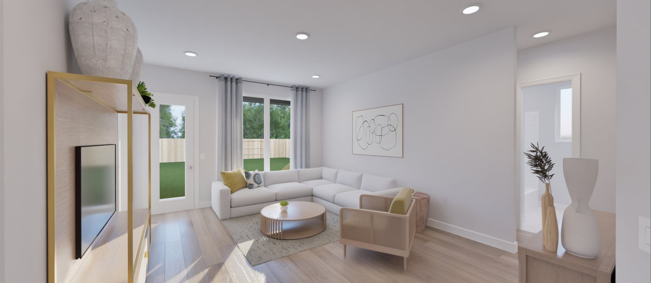 This new single-family home has a modern, open-concept layout at the heart of the home. It includes a chef-ready kitchen, an intimate breakfast room and a family room with convenient patio access. A study off the foyer provides an ideal set-up for work. At opposite sides of the home is the tranquil owner’s suite and two secondary bedrooms framing a full-sized bathroom. Rounding out the space is a two-car garage.