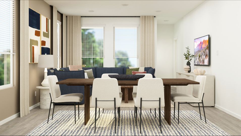 This new single-level home offers a modern and low-maintenance layout. An open-concept floorplan blends the kitchen, living and dining areas to maximize interior space, with access to a covered patio for simple entertaining and multitasking. All four bedrooms are tucked away to the side of the home, including the luxe owner’s suite with a full bathroom and walk-in closet.