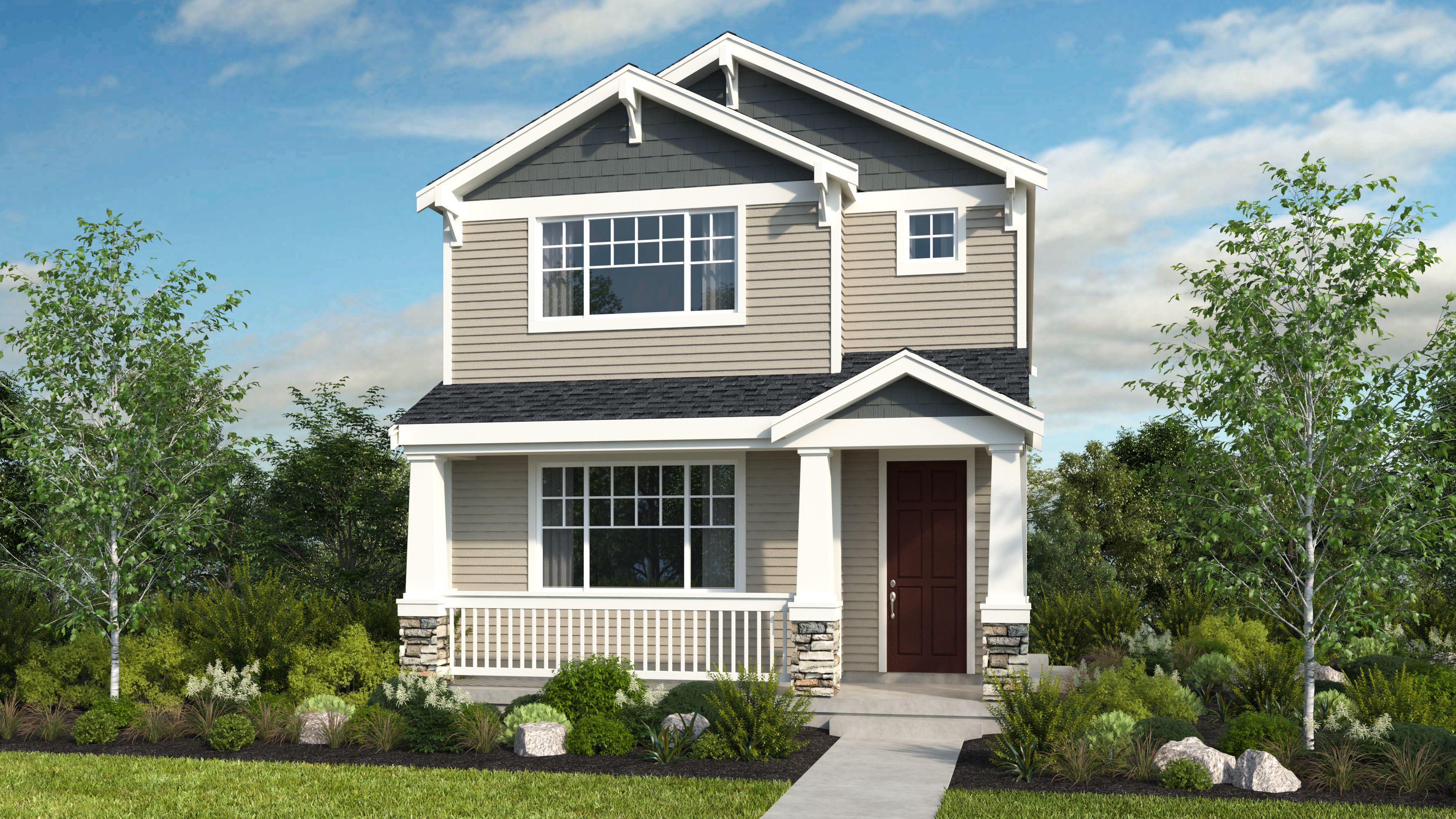 The Birch floor plan is the open-concept oasis you've been searching for. Spend lovely sunrises on your front porch, then head through the foyer and into the heart of the home: a spacious great room opens to a dining room, a gourmet kitchen with stainless-steel appliances, and a large patio. Keep going to discover a secluded study space and loft perfect for cozy nights in. Head downstairs to find an entryway and a convenient 2-car garage. Then, head up two flights to make it to the top floor of the home. Here, you'll find 3 additional bedrooms, one with a walk-in closet, 1 bathroom, a laundry room, and a luxurious primary suite with a spa-like primary bathroom and walk-in closet. You'll love every last detail of the Birch floor plan!
