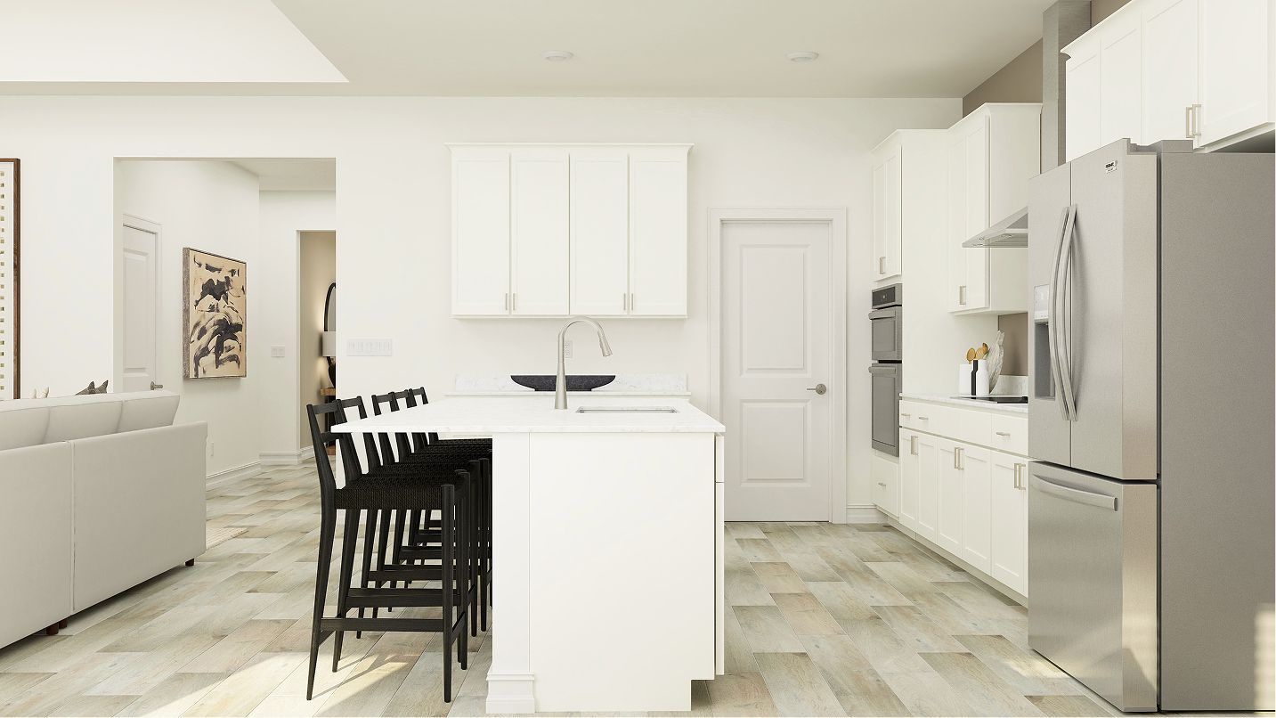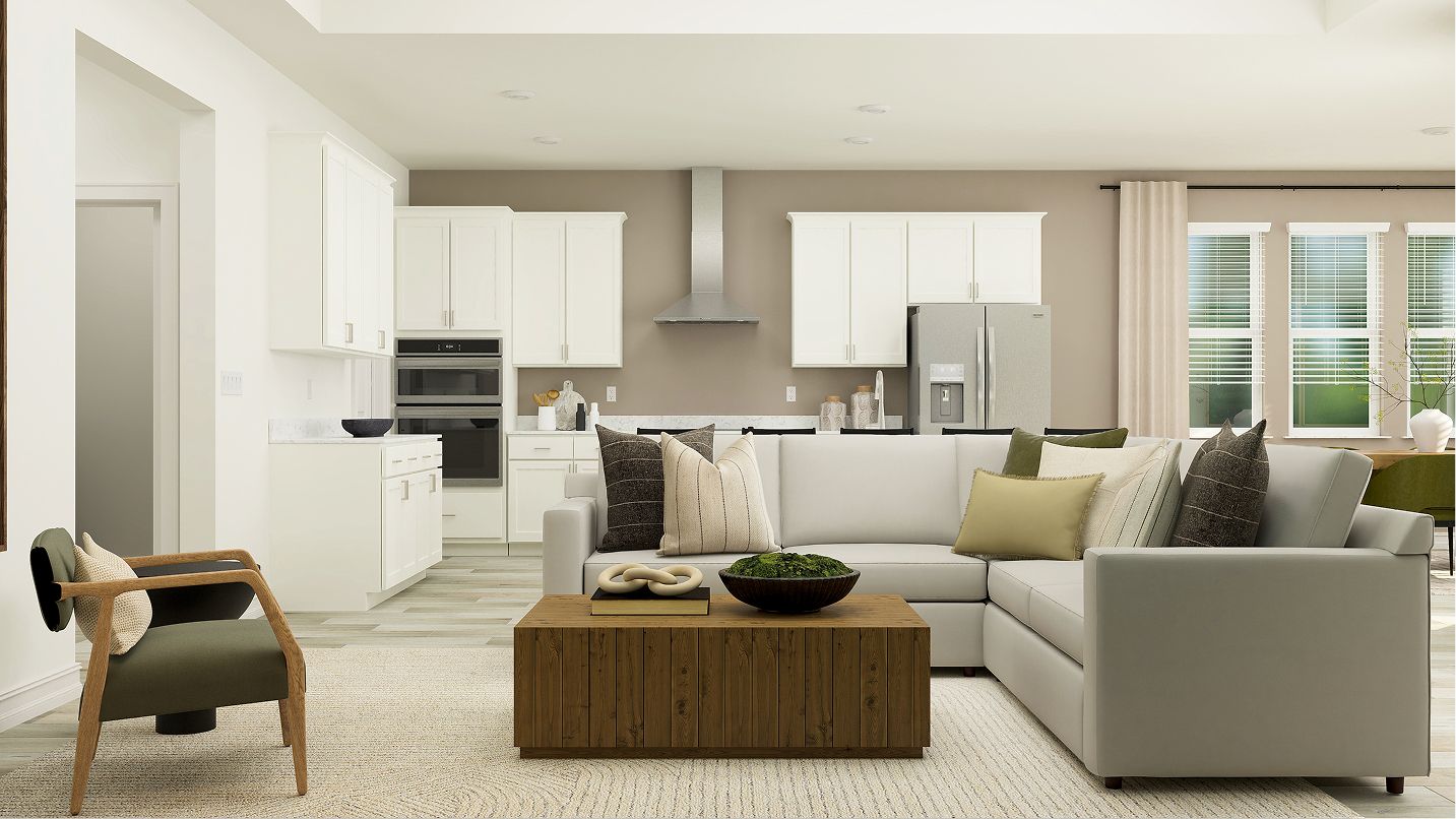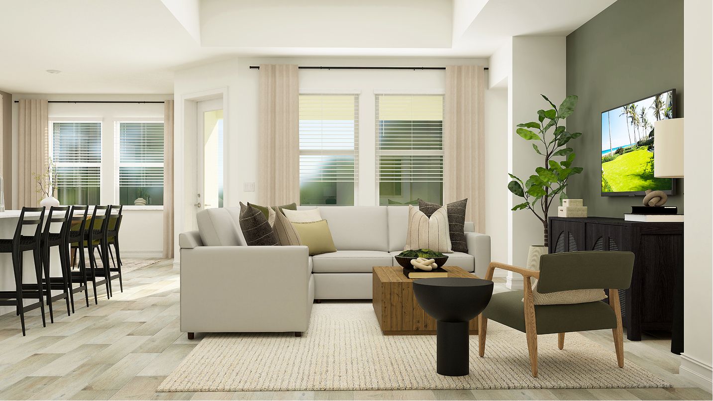 This modern single-story home boasts an airy layout that effortlessly unites the kitchen, family room and nook. A study is ready to be transformed to meet the homeowner’s needs, while three bedrooms provide space for the whole family. Plus, indoor and outdoor living opportunities on the spacious covered patio.
