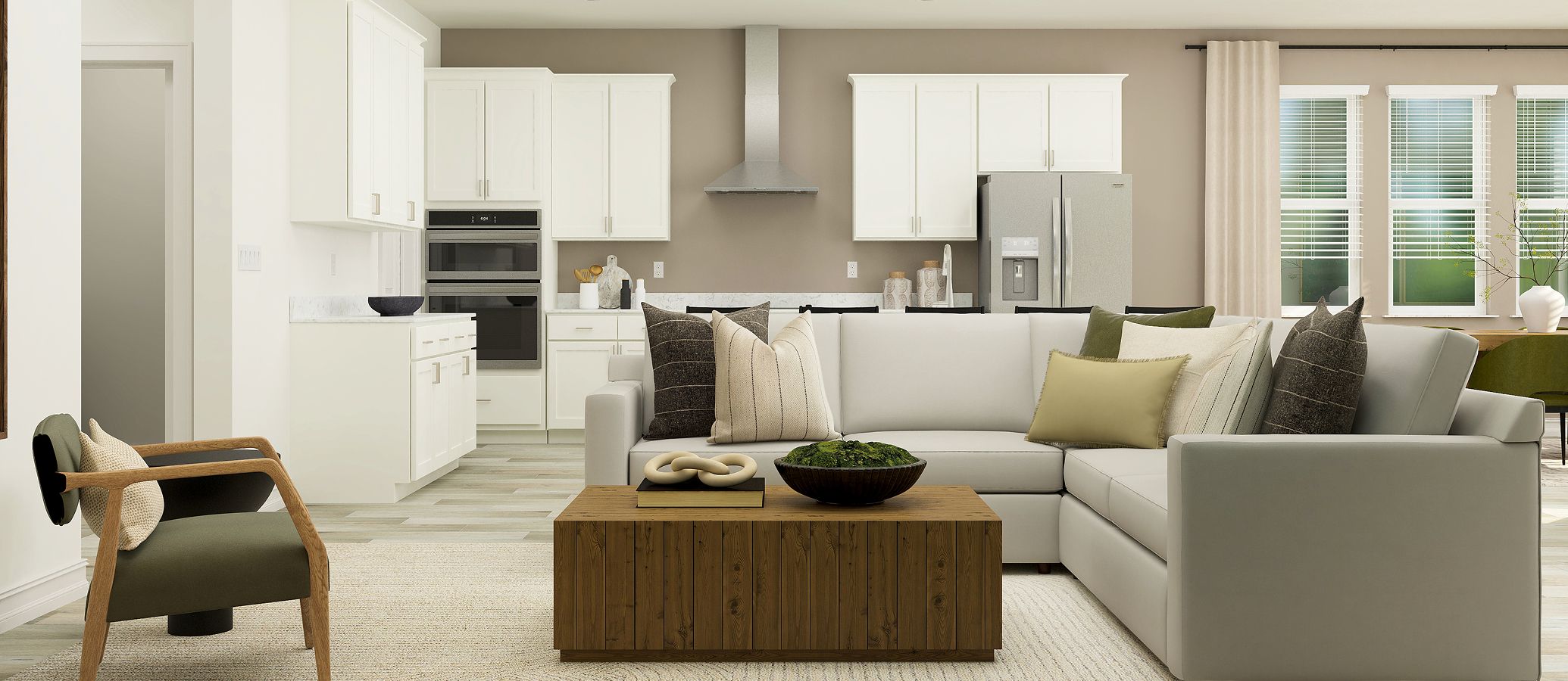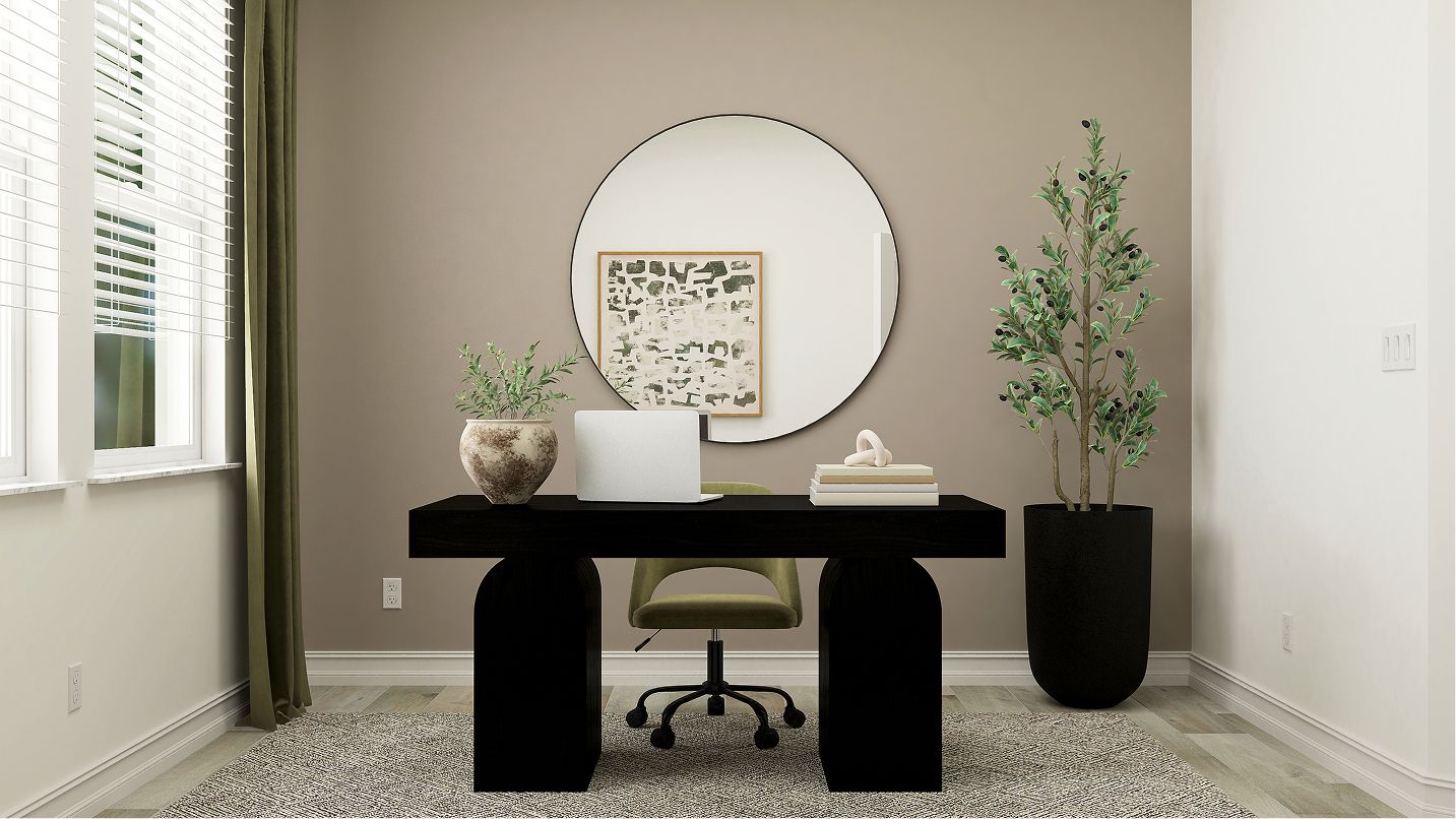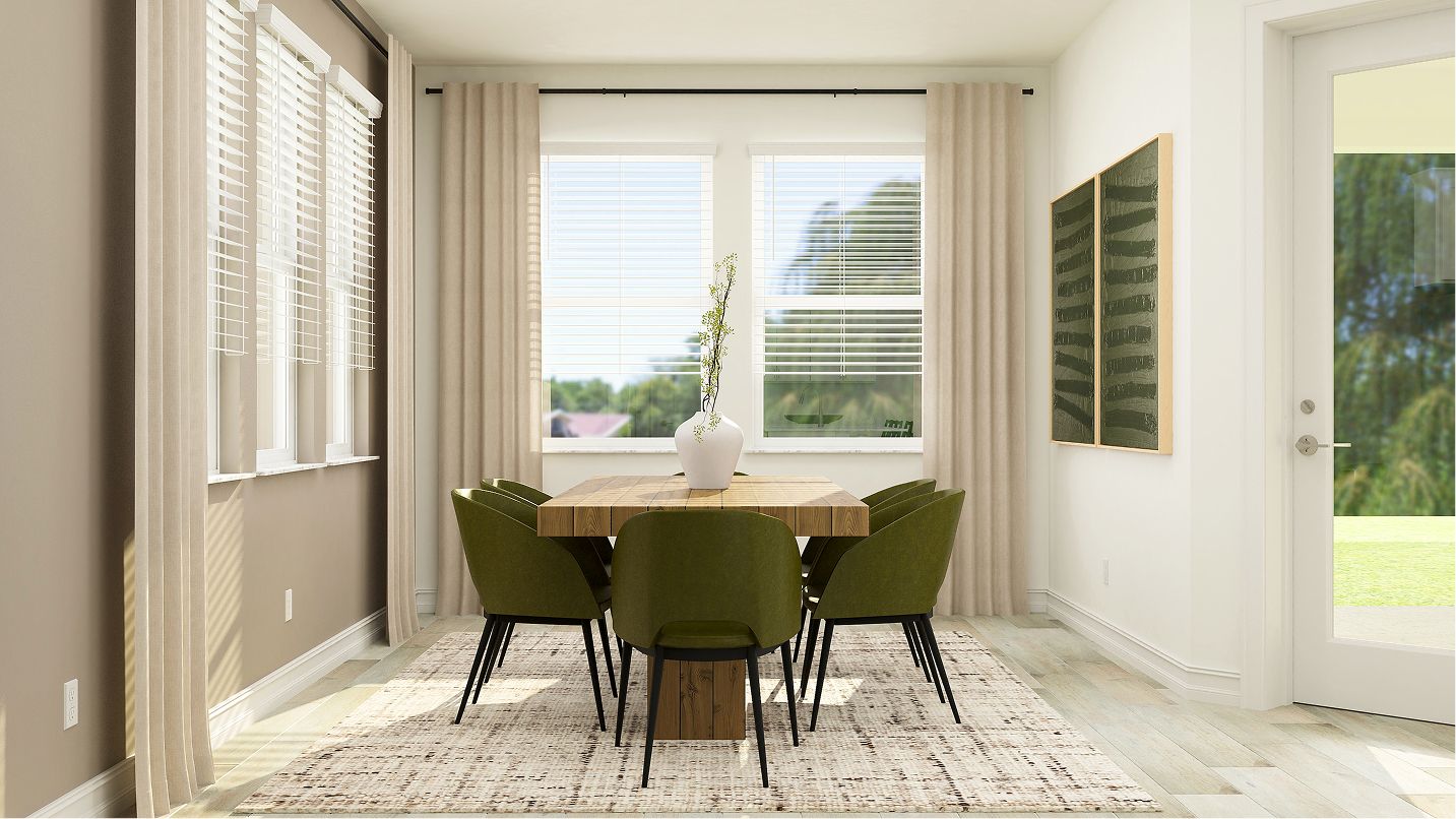 This modern single-story home boasts an airy layout that effortlessly unites the kitchen, family room and nook. A study is ready to be transformed to meet the homeowner’s needs, while three bedrooms provide space for the whole family. Plus, indoor and outdoor living opportunities on the spacious covered patio.