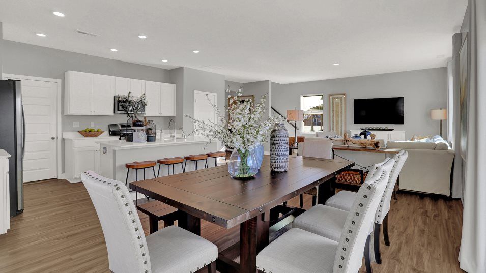 This two-story home leads directly to the open Great Room, kitchen and dining area, arranged in a thoughtful layout great for family gatherings and entertaining friends. The second floor has four bedrooms, including the owner’s suite, and a loft for additional living space.