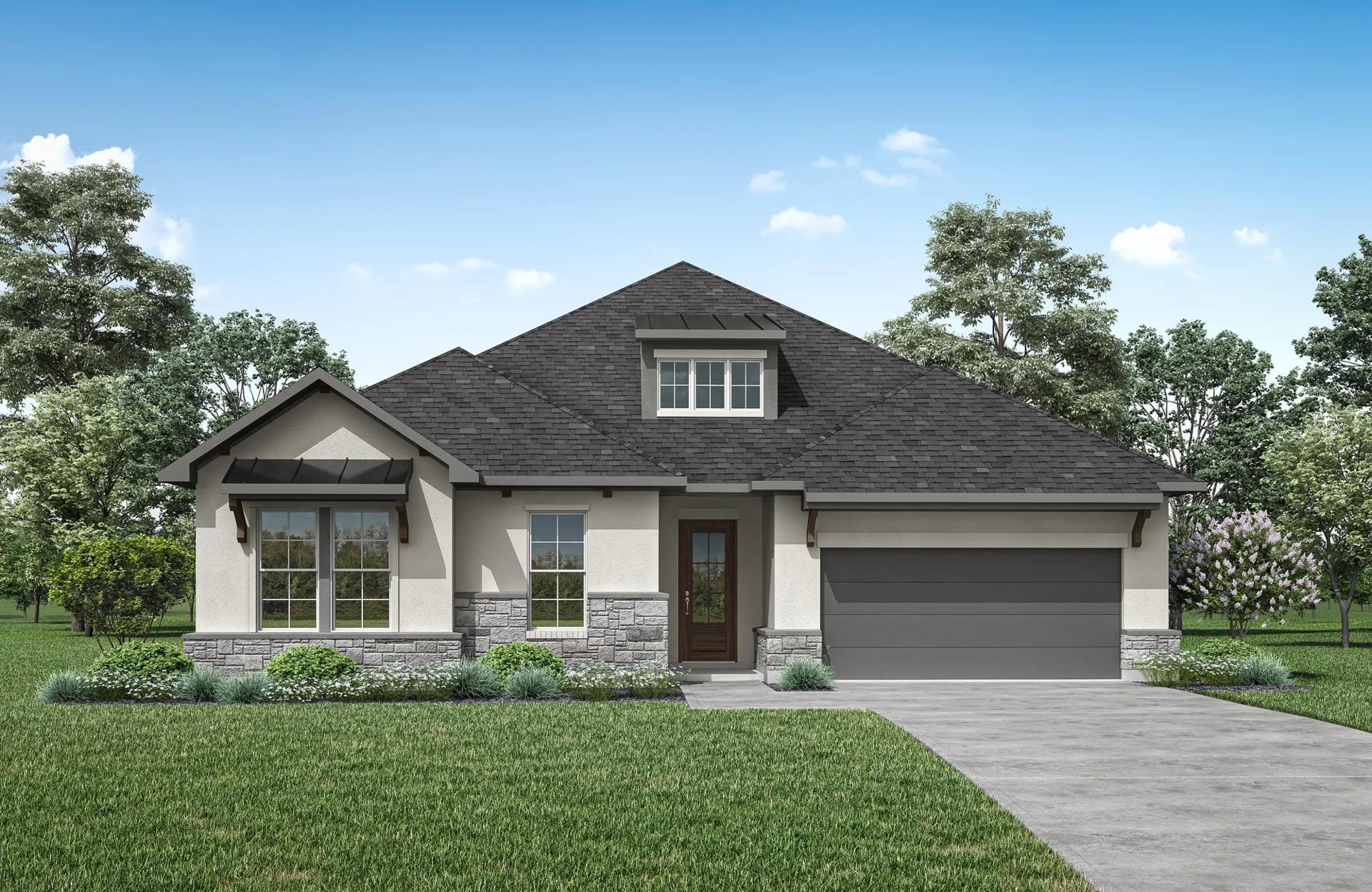 The Brynlee is a well-designed single story plan with the flexibility to create more space with a second level. The spacious standard plan includes a luxurious primary suite, a guest suite and a third bedroom along with a study that can be converted to a bedroom. The great room features a vaulted ceiling and option for a fireplace while the kitchen boasts a large island and walk-in pantry. You can add a second level with a bedroom and gameroom, plus an optional media room if desired.