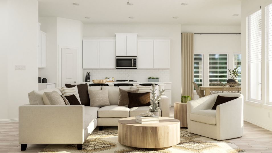 This single-story home has a smart layout that is ideal for those who value space. There are three bedrooms in the front of the home, as well as a versatile study. The owner’s suite is in the back, beside the open family room, which has a covered patio.