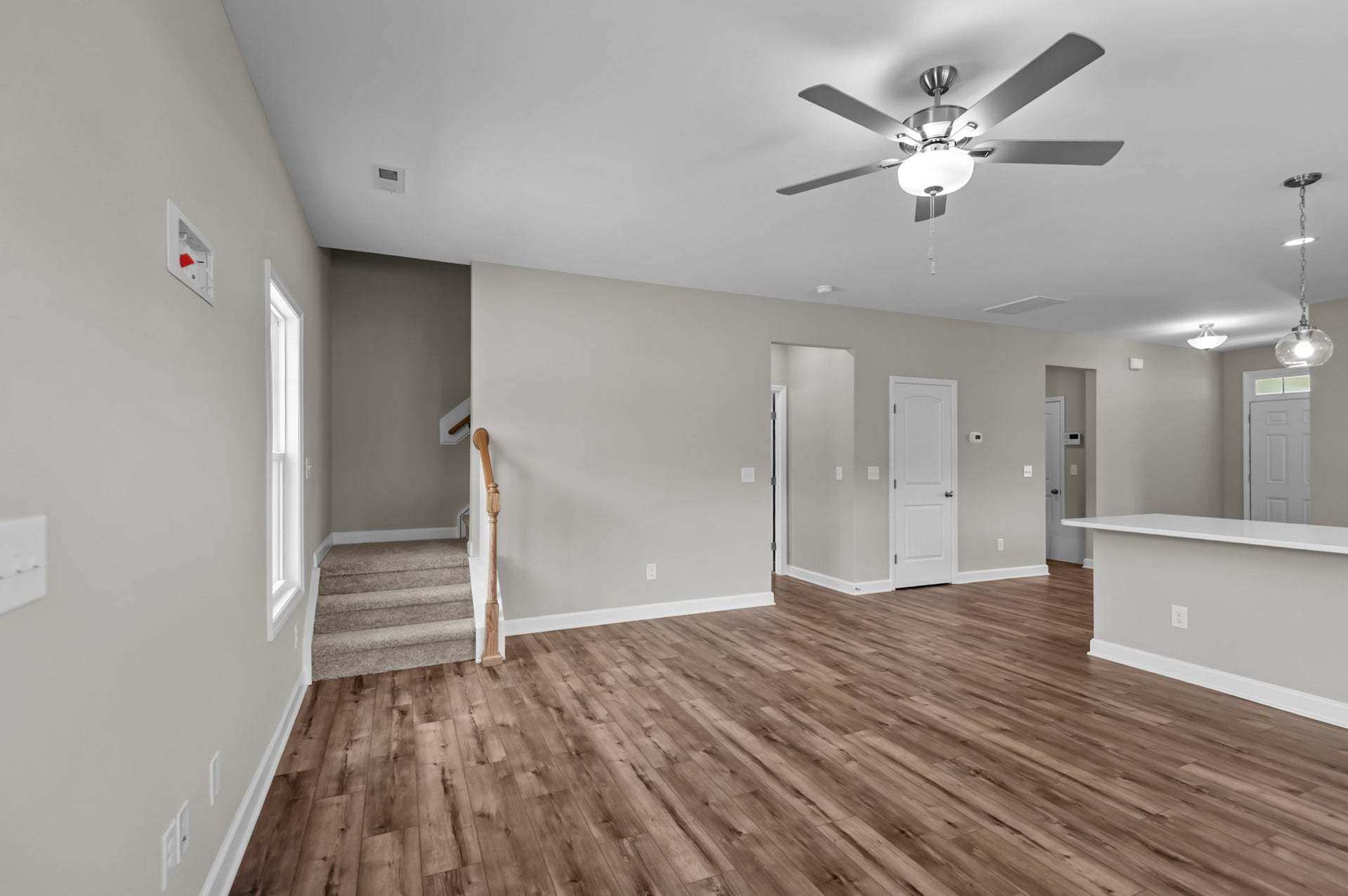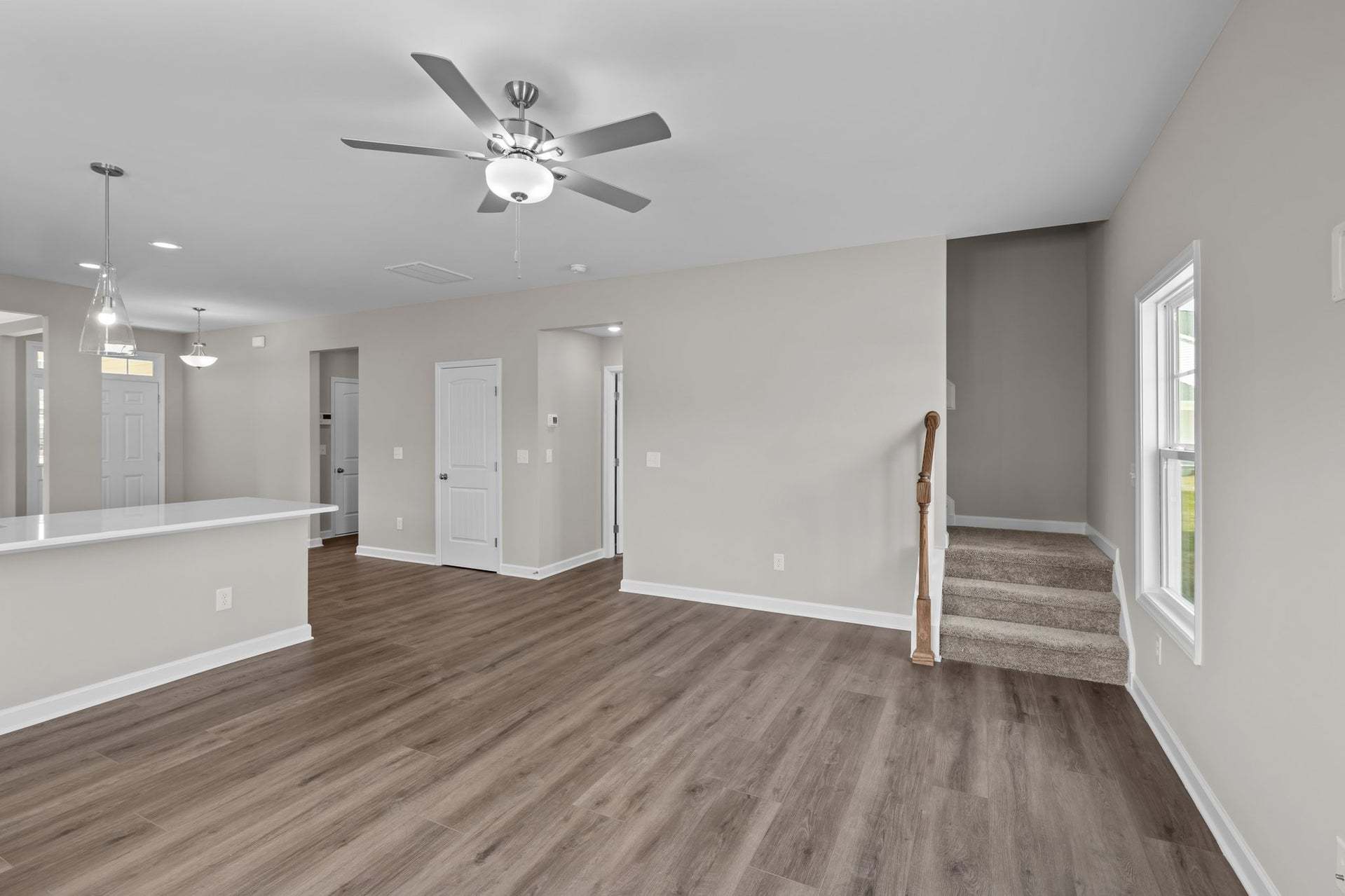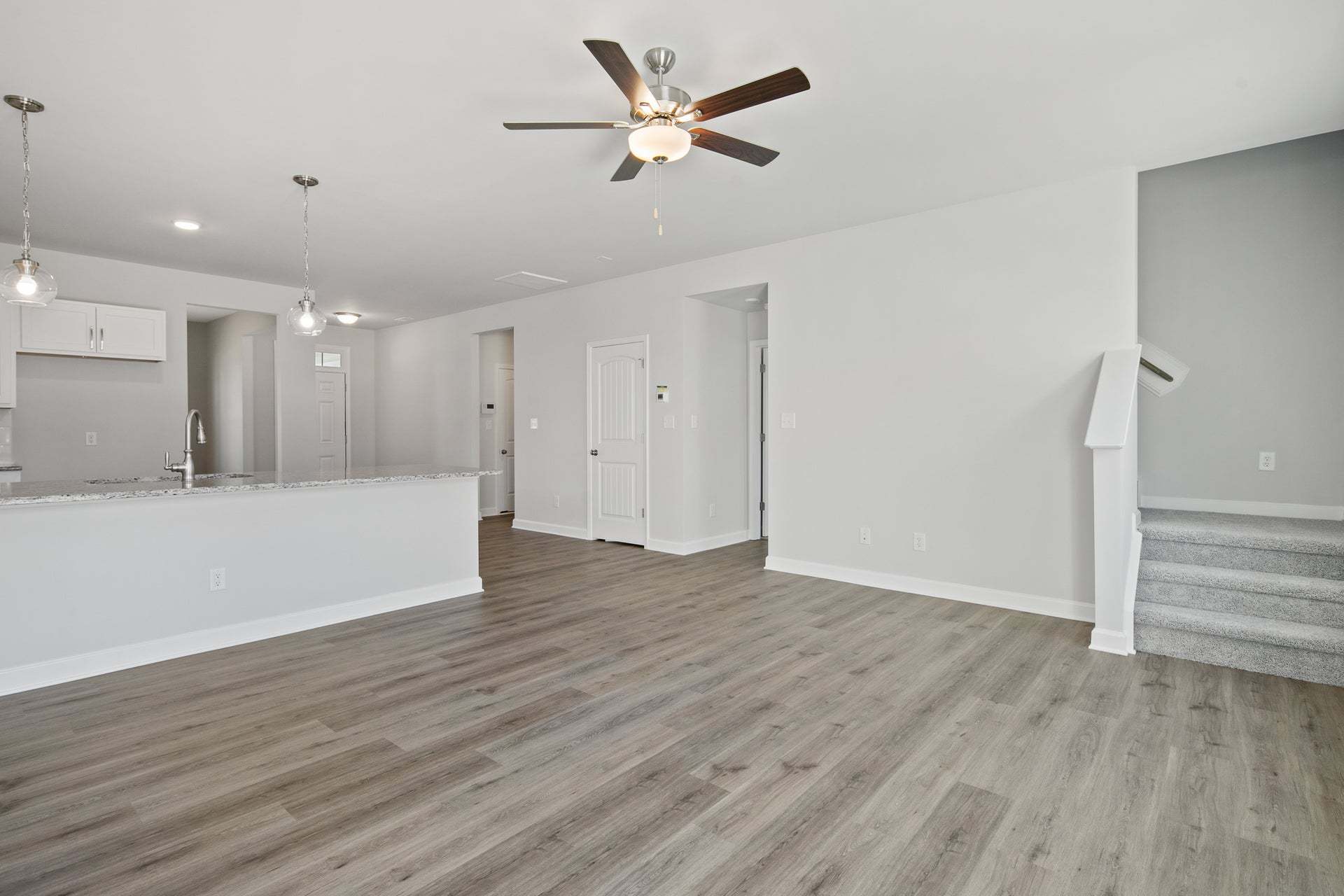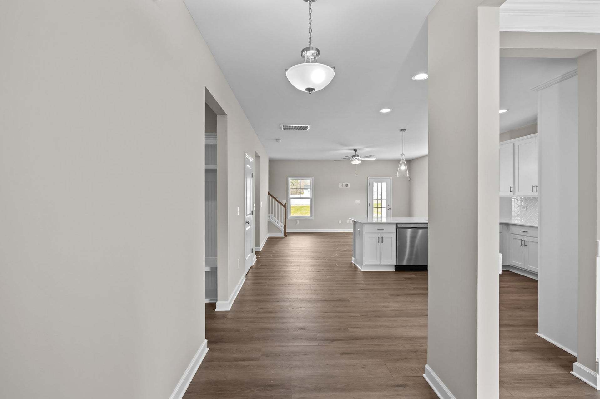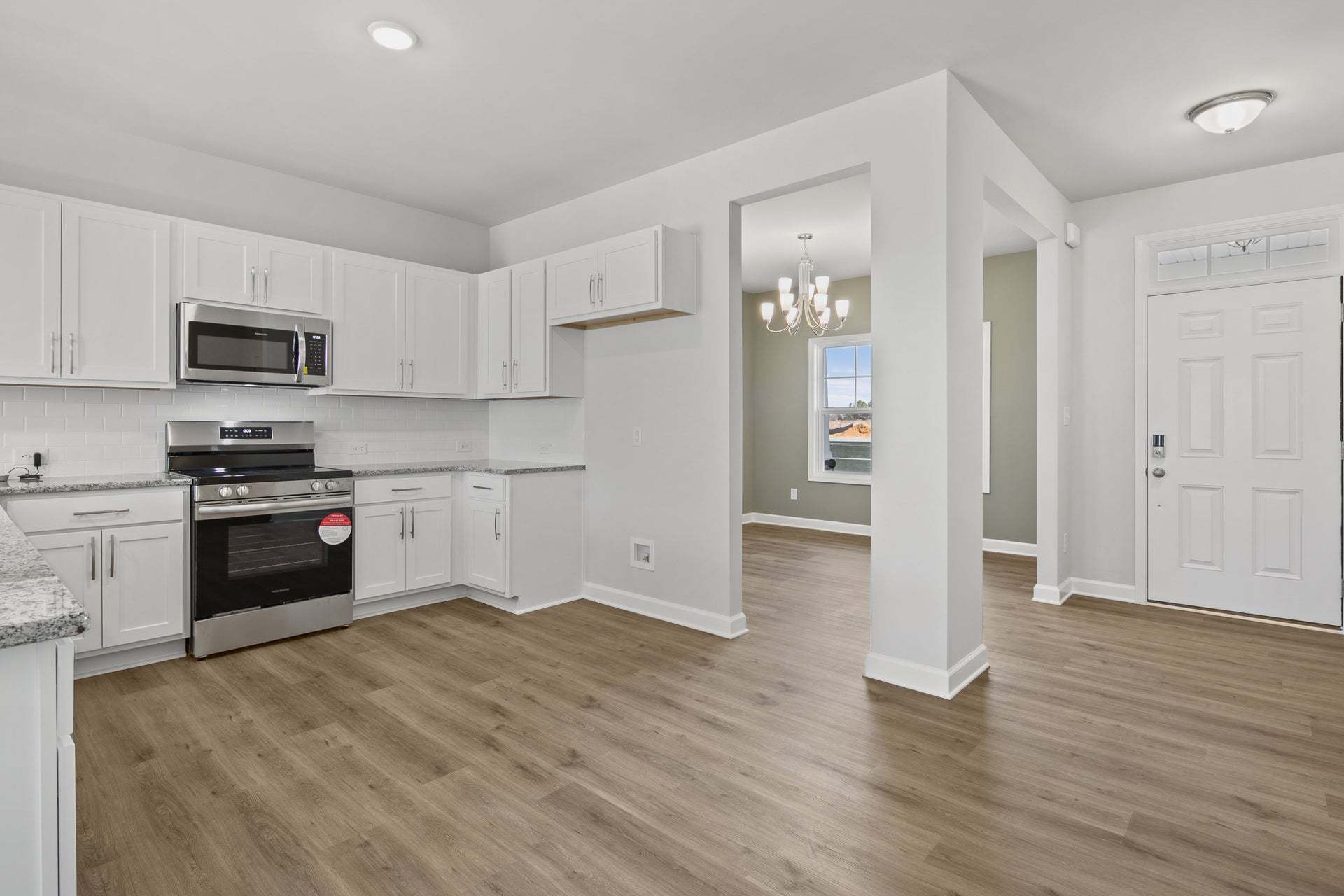 Upon entering the home, a formal dining room with optional coffered ceilings and wainscotting is located off of the foyer with access to the kitchen. The kitchen has plenty of countertop space with a sink overlooking the great room, bar seating, and a pantry. The entryway mudroom space to the garage includes an option for a built-in drop zone and access to the powder room. The open great room features an optional fireplace along the back wall and access to the back patio OR optional covered porch. *Please note: Home cannot include the fireplace option without the covered porch. The spacious first-floor primary suite is located off the great room and includes a tray ceiling option. The primary bathroom features a large walk-in closet, private water closet, linen closet, double vanity sink w...