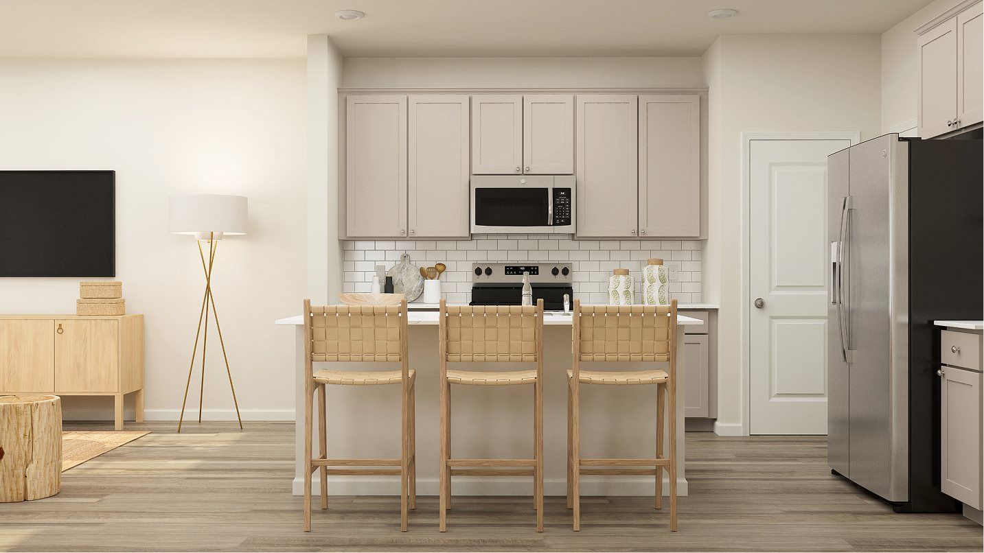 The first floor of this two-story townhome is host to an inviting open floorplan that seamlessly connects a chef-inspired kitchen, spacious Great Room and comfortable dining area. A rear patio extends the home out into the backyard for sunlit activities. Three bedrooms can be found upstairs, including the luxe owner’s suite, which features a restful bedroom, en-suite bathroom and walk-in closet.