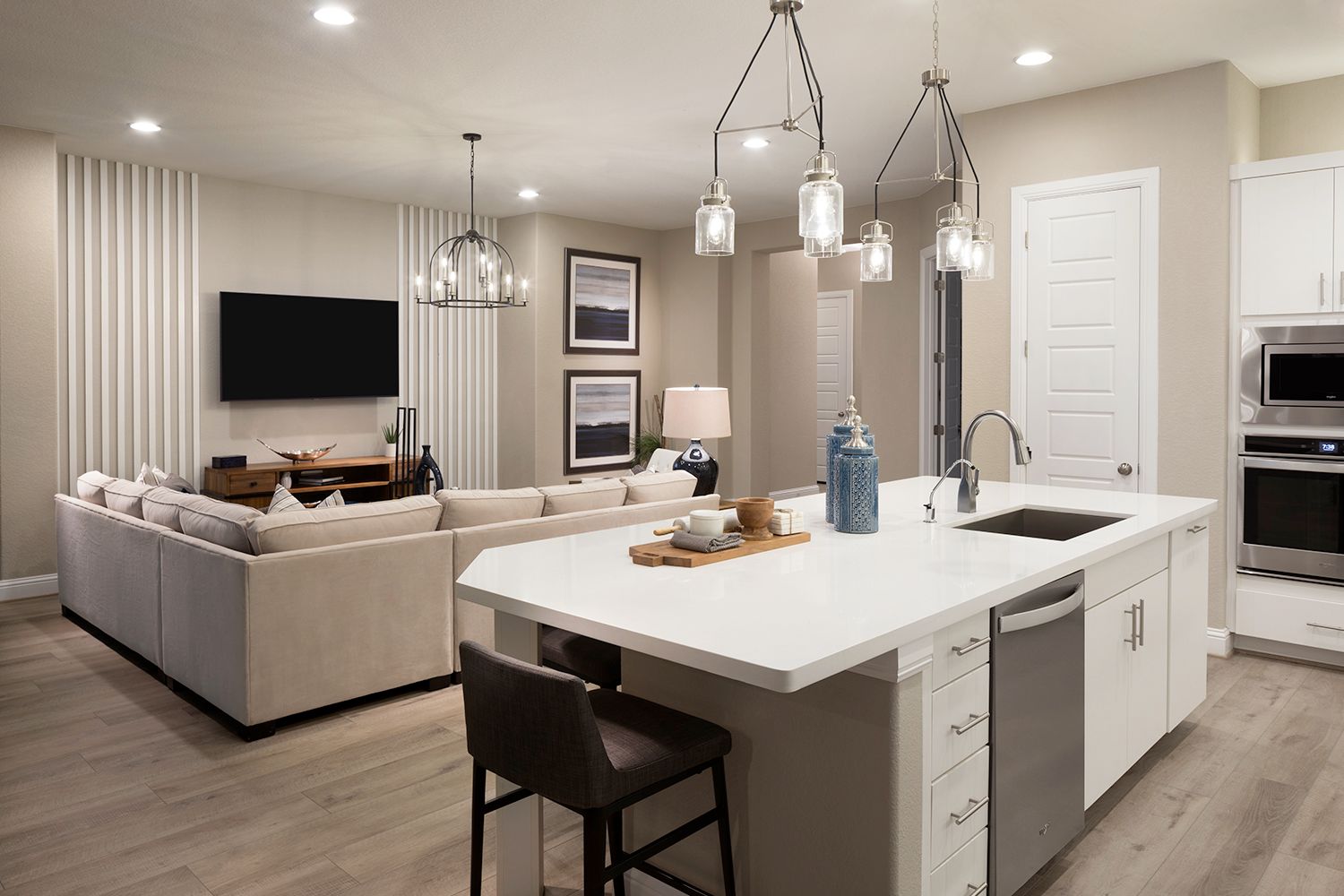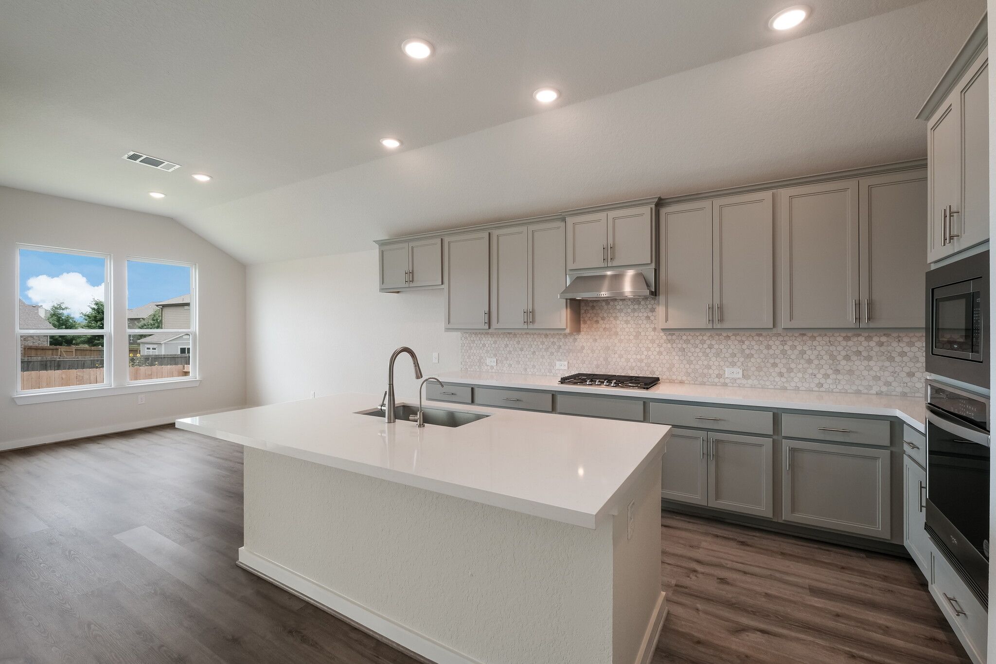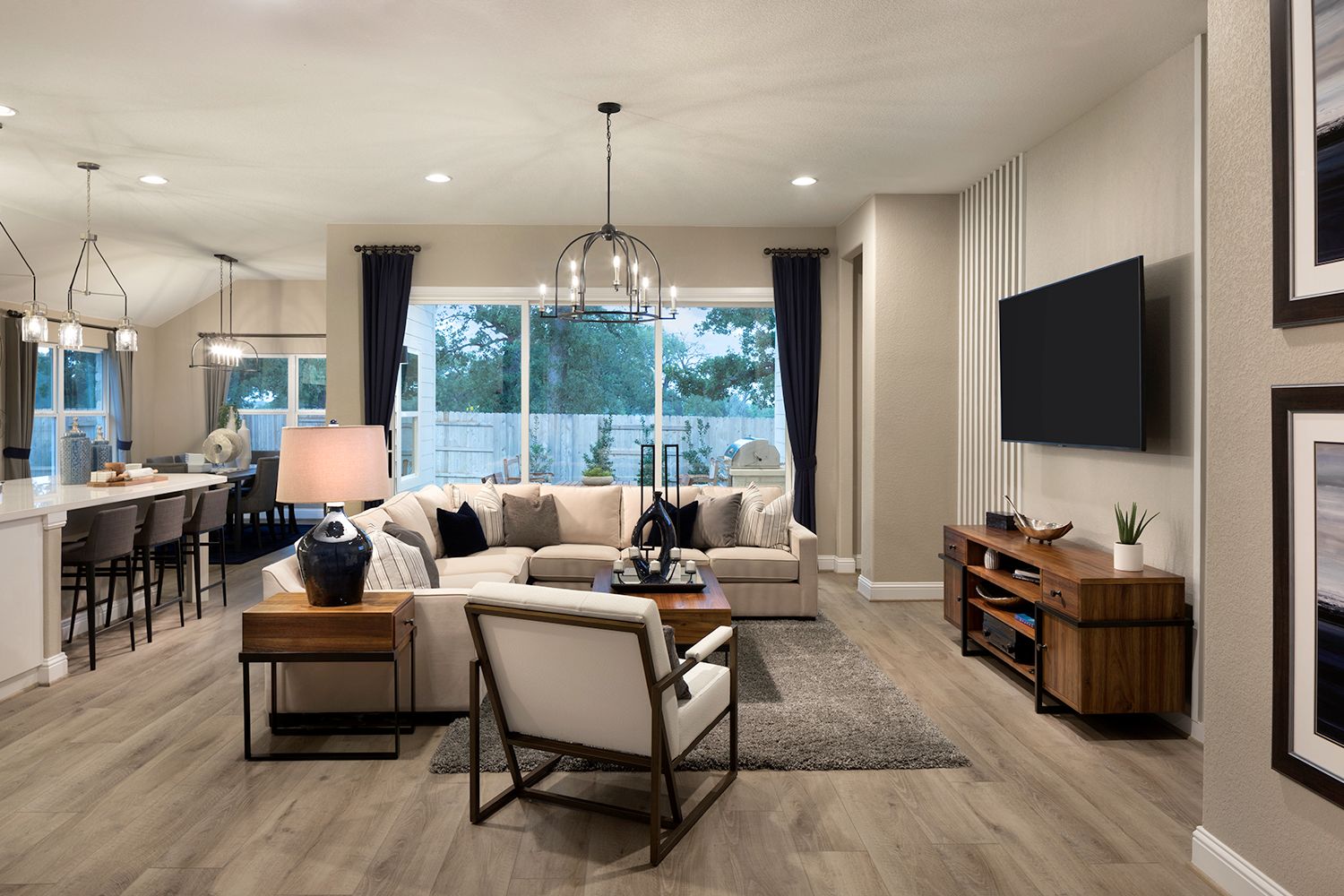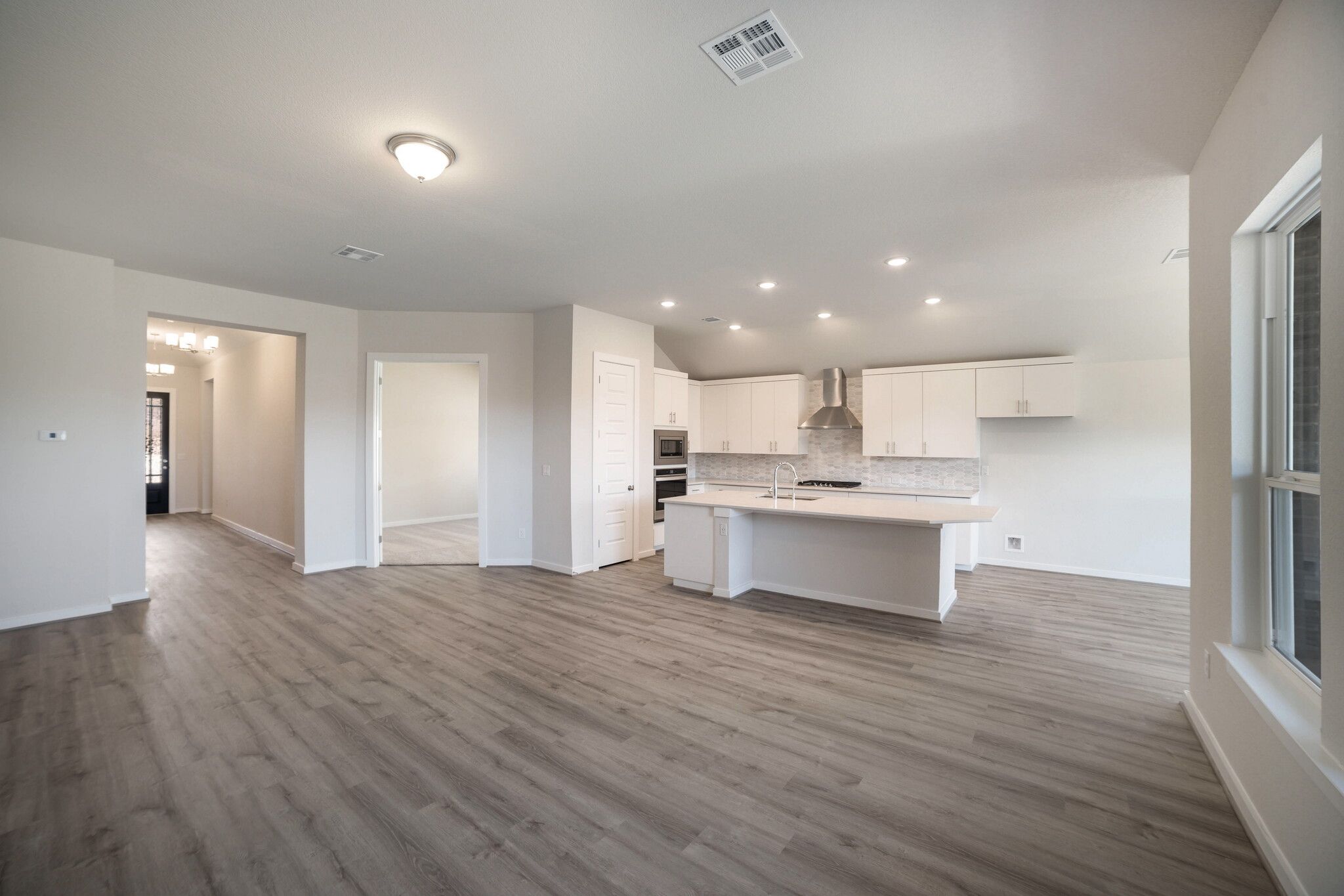 This is an impressive one-story home featuring a gallery entry, flex room, and family room open to a grand kitchen and dining area. The home also includes an elegant master suite, three additional bedrooms and two additional bathrooms. Opportunities to personalize this home are available including a shower and bathtub configuration at the master bath, dining room and master bedroom extensions, and covered patios.