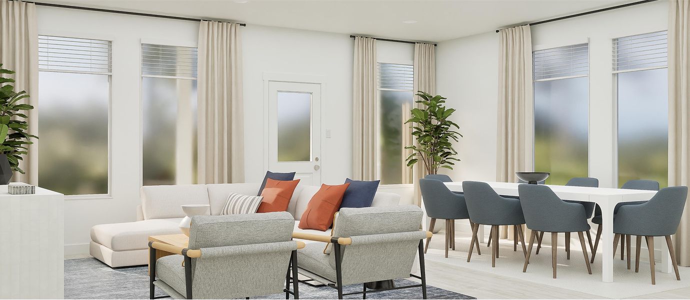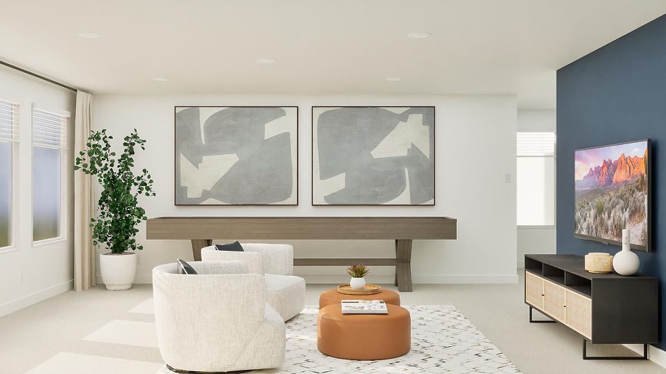 This new two-story home boasts a spacious and modern layout. At the back of the home on the first floor is a luxurious owner’s suite showcasing a full bathroom and walk-in closet, with a secondary bedroom located off the foyer. A convenient flex space is tucked away off the main living area, which features direct access to a covered patio for seamless indoor-outdoor transitions and entertaining. On the second floor, three additional bedrooms surround a versatile game room, ready for hosting guests or lounging at the end of the day.