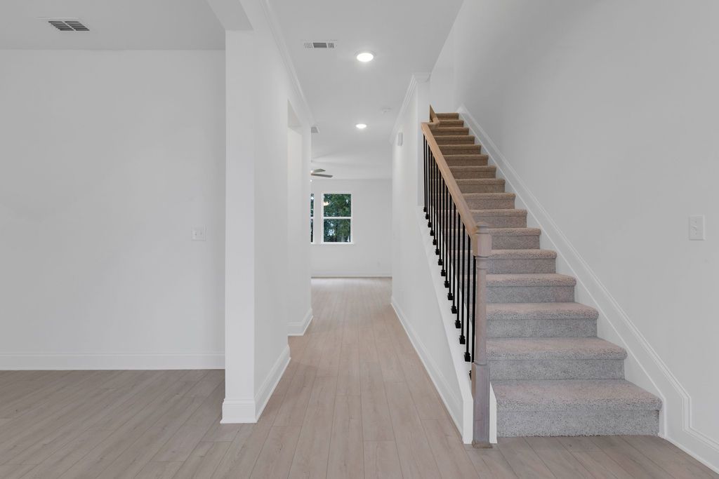 The Canton welcomes you with a charming covered front porch and a spacious foyer that opens into a flexible living space—perfect for a home office or study. The open-concept main floor features a large family room, a dedicated dining area, and a well-appointed kitchen with ample counter space and an oversized walk-in pantry, ideal for entertaining and everyday use. Smart storage solutions include a coat closet, under-stair storage, and a conveniently located powder bath. Upstairs, a versatile loft adds bonus space for work, play, or relaxation. The expansive primary suite offers a private bath with dual sinks, a walk-in shower, and two large walk-in closets. Three additional bedrooms, each with their own walk-in closet, share a full bathroom. A centrally located laundry room adds everyda...