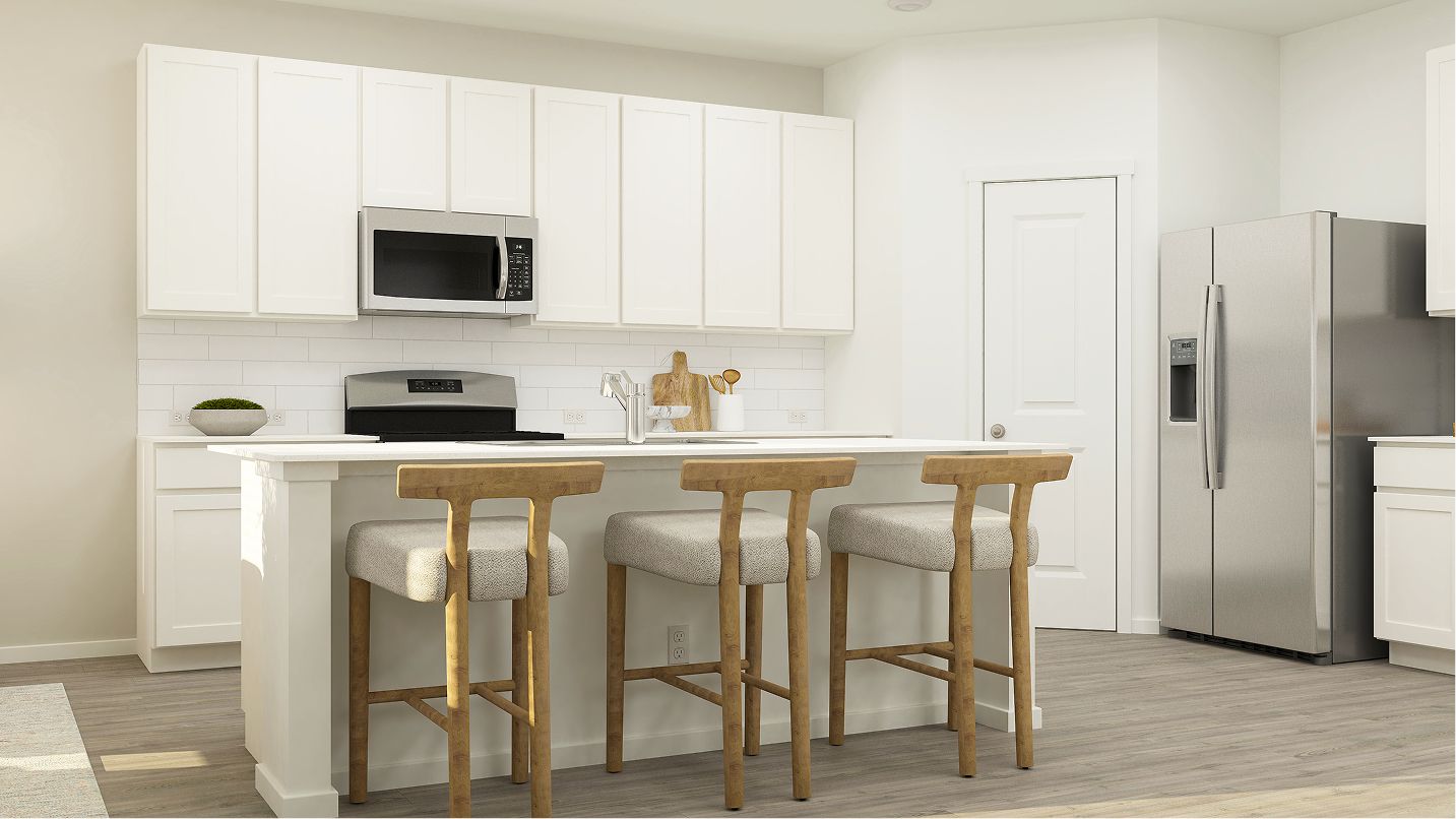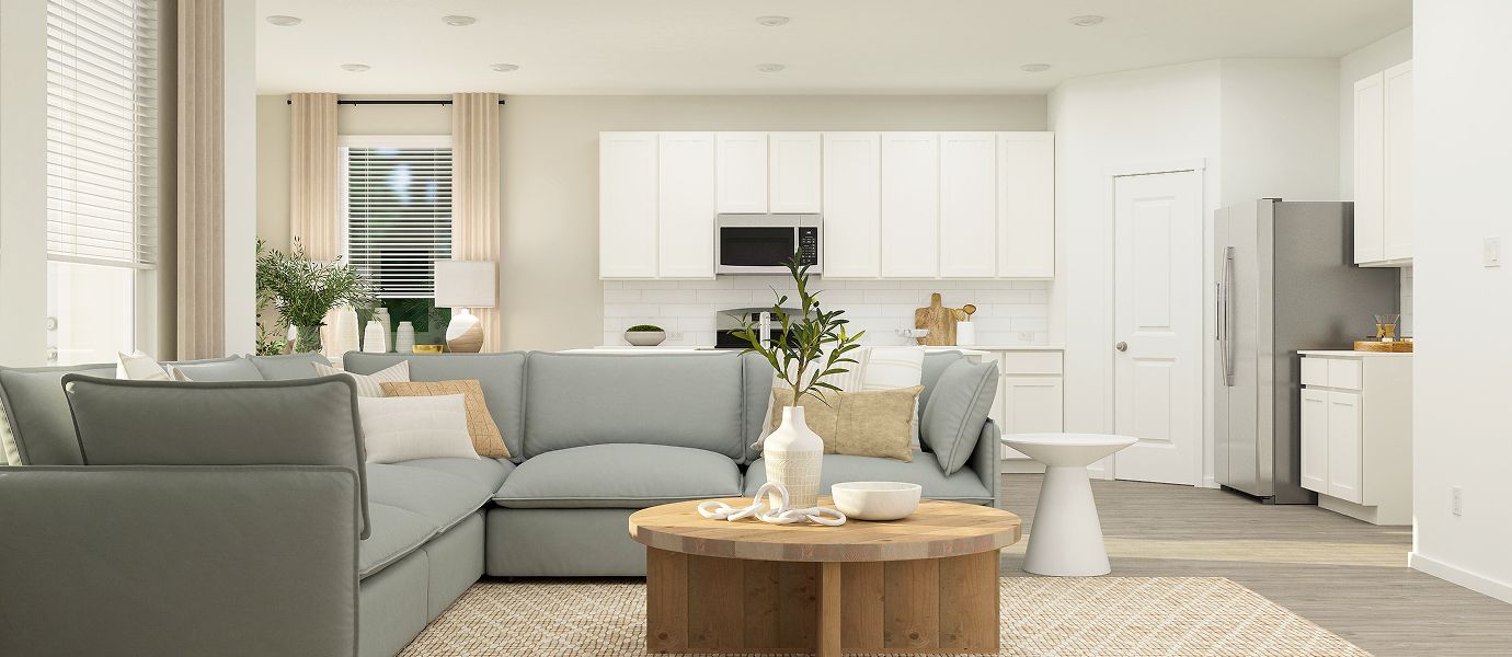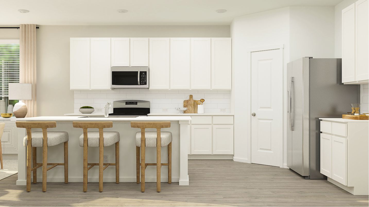 This new two-story home is designed for modern lifestyles. The first floor comprises an open-concept layout shared between the kitchen, living and dining areas, with a nearby covered patio offering outdoor fun and leisure. All four bedrooms are located on the second floor, including the luxurious owner’s suite with a full bathroom and walk-in closet, surrounding a versatile loft.