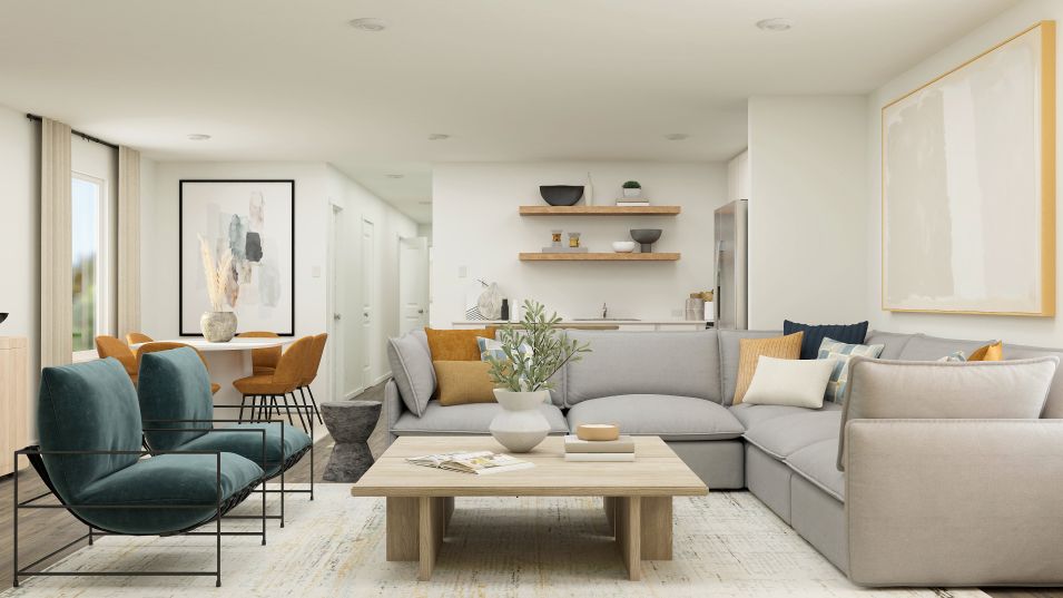 This new single-level home features a low-maintenance layout with ample room to live and grow. Off the entry is an inviting open-concept layout that combines the kitchen with the living and dining areas. Four bedrooms are tucked away at the back of the home, including the luxe owner’s suite with an en-suite bathroom and walk-in closet.