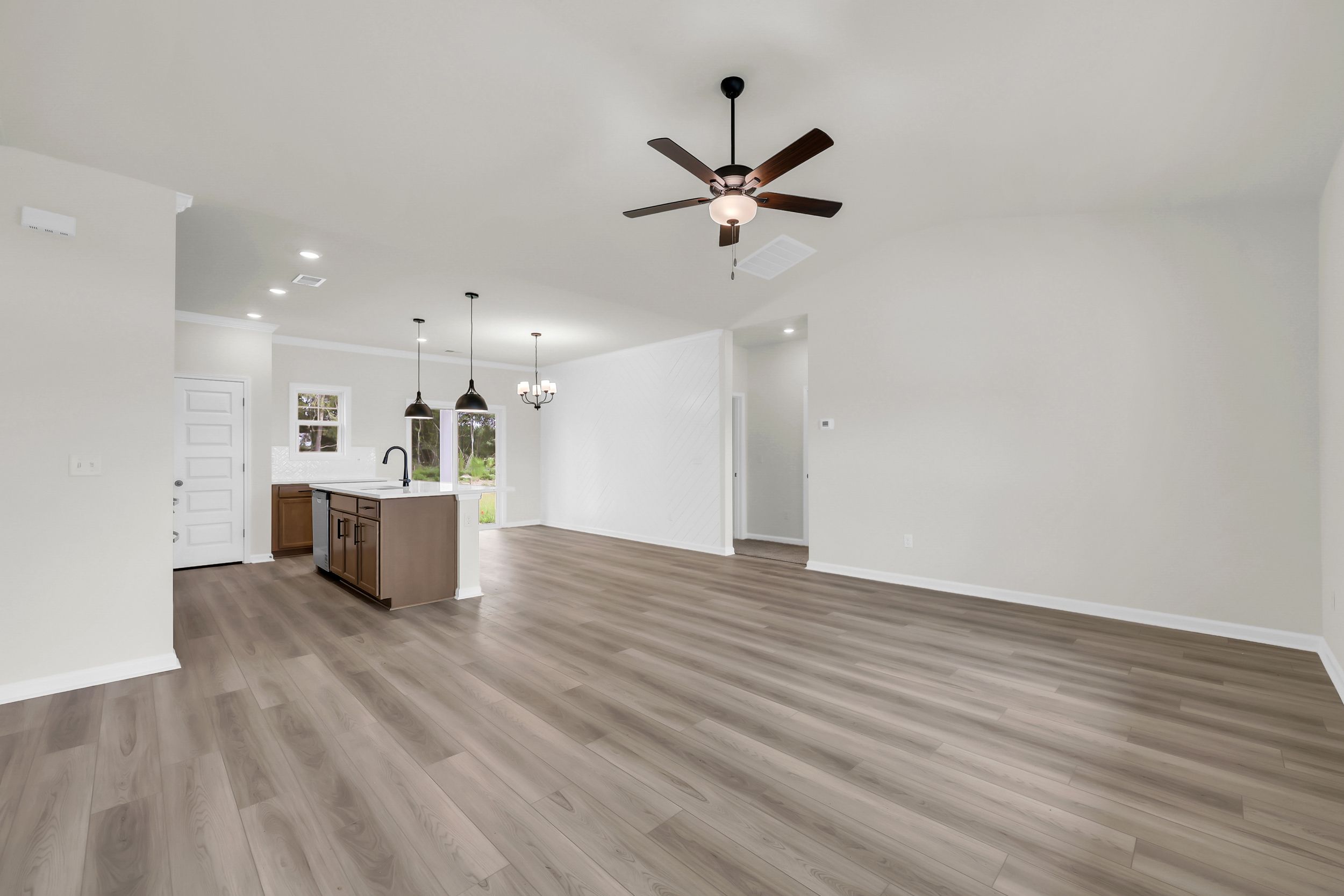The Charlotte II by Great Southern Homes is a thoughtfully designed single-story home offering approximately 1,324 square feet of efficient and comfortable living space. This plan features 3 bedrooms and 2 full baths, making it an ideal option for families, first-time homebuyers, or those seeking simplified one-level living. The open-concept layout centers around a spacious great room that flows seamlessly into the kitchen and dining area, creating a functional and inviting environment for everyday living and entertaining. The kitchen includes a central island, ample cabinetry, and direct access to the dining space, with optional features available to personalize finishes and functionality. Just beyond the dining area, homeowners may choose an optional covered or screened patio to extend ...