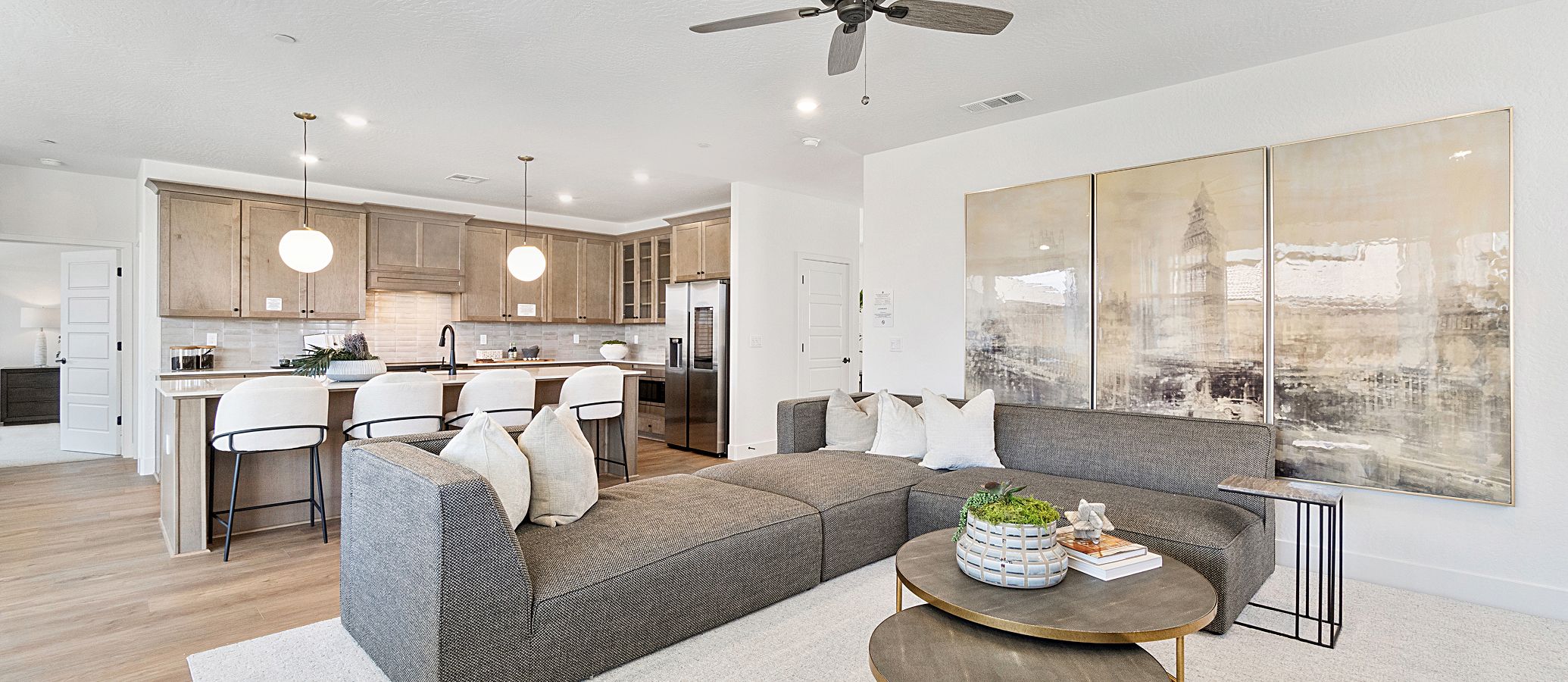 This new single-level home offers a modern and low-maintenance design for convenient transitions and multitasking. Four secondary bedrooms are located off the entry, leading to a spacious and flexible open-concept floorplan with access to an outdoor patio. The luxurious owner’s suite is nestled into a private back corner with a full-sized bathroom and walk-in closet.