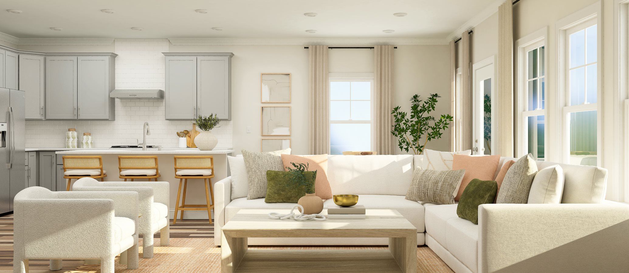 This single-level home is ready for modern lifestyles. Two secondary bedrooms and a full bathroom are located off the foyer. An open-concept floorplan that blends the kitchen, living and dining areas boasts access to an outdoor patio for simple entertaining and multitasking. The luxurious owner’s suite is nestled into a private rear corner and offers direct access to a spa-inspired bathroom and walk-in closet.