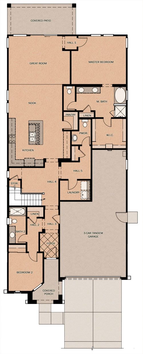 The Coastal with loft checks in at 2580 square feet and has 4 bedrooms, 3 1/2 baths, and a 3 car garage. It can be expanded to 6 bedrooms and has numerous other room configurations.