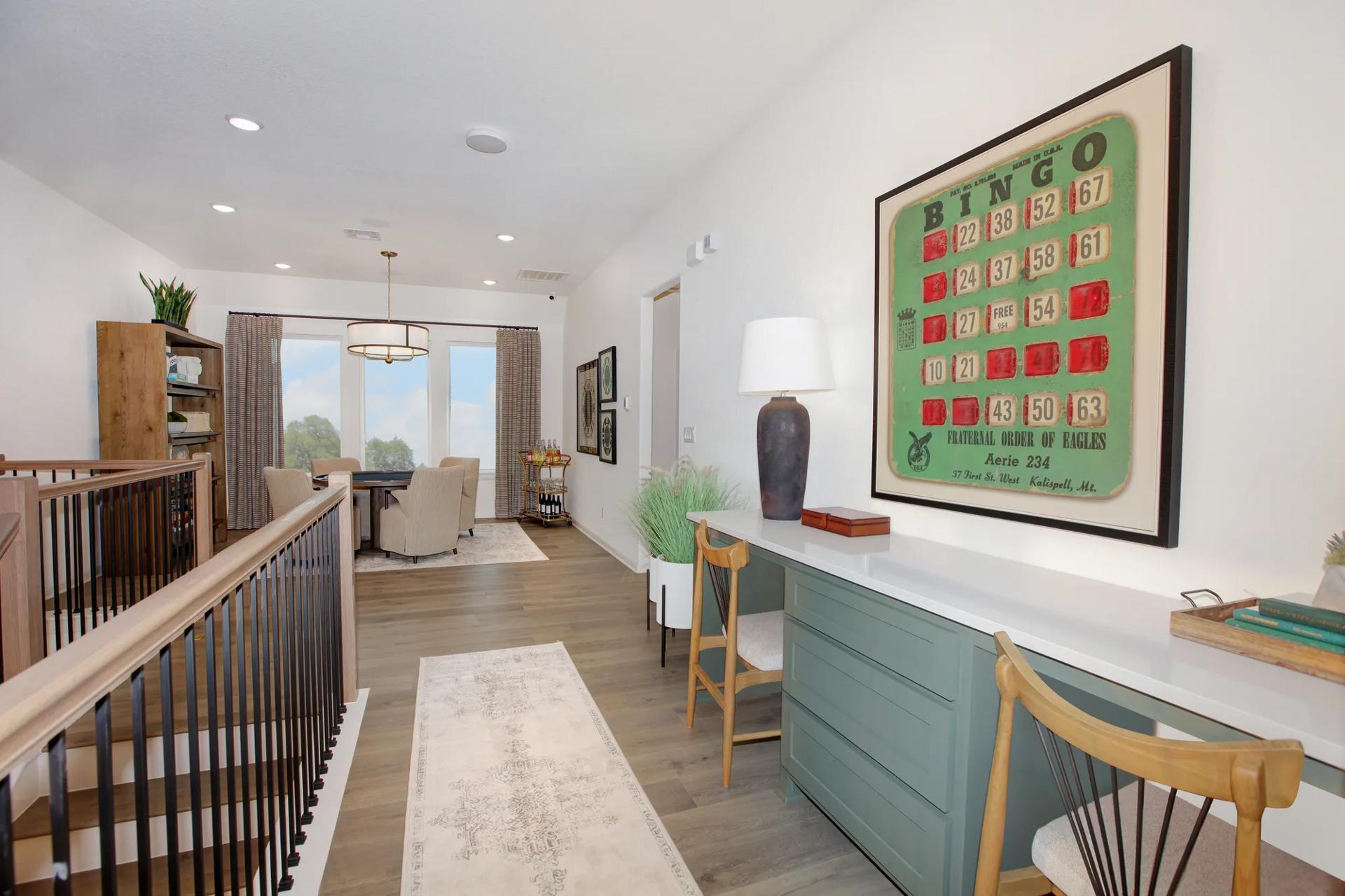 The Dakota is a versatile two-story home designed for modern living. It features four spacious bedrooms, with options to add up to two more, accommodating growing families or guests. Upon entry, a private home office and a flexible space offer adaptability for work or leisure. The main level includes a guest suite with a private bath and an open-concept kitchen that flows into the dining and family rooms, ideal for entertaining. The secluded primary suite boasts a spa-like bath with dual vanities, soaking tub, walk-in shower, and a large closet. Upstairs, two additional bedrooms, a game room, and optional media room provide ample space for relaxation and entertainment. With customizable options, The Dakota offers comfort, style, and flexibility to suit your lifestyle.