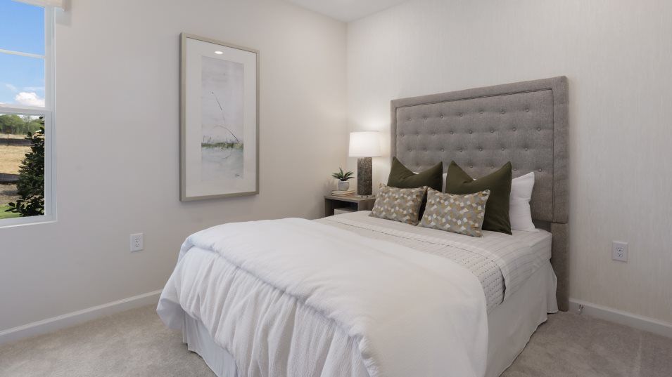 This new two-story home has space for the whole family. The main floor features a Great Room for great parties, a dining room for lovely lunches, a kitchen for cooking lessons, a separate bedroom ideal for guests and a patio for outdoor living. Upstairs are a versatile loft and three bedrooms, including the owner’s suite with a private bathroom.