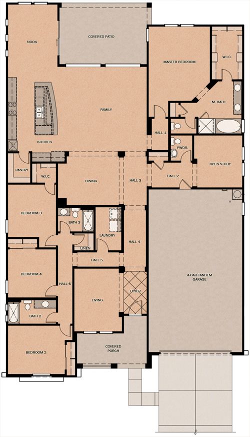 Single story, 3 bedrooms, 3 1/2 baths, four car garage, living room,dining room, family room, Open Study, Expandable to 7 bedrooms and 4 baths.