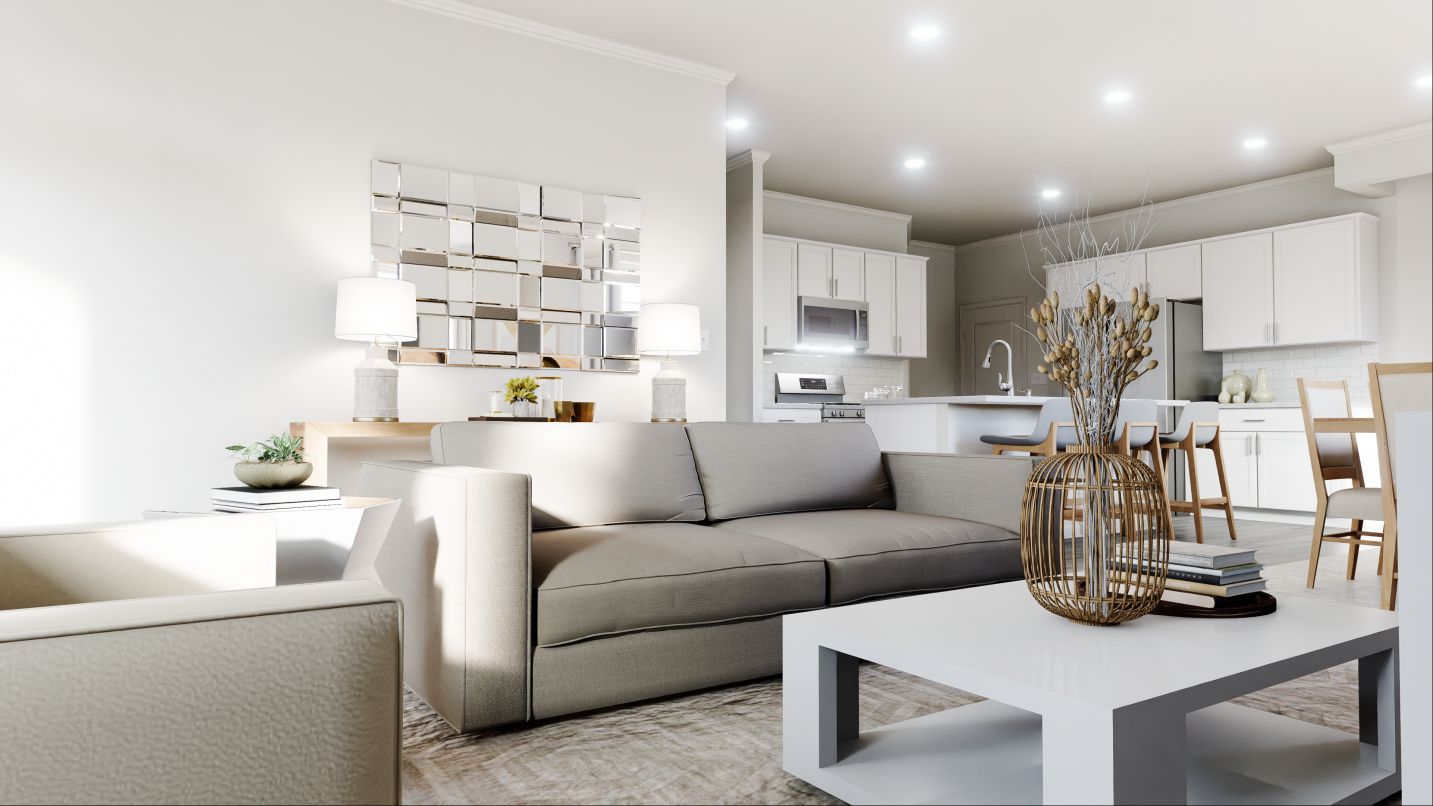 This new two-story end unit combines comfort and style. The first floor showcases an open-plan layout among a Great Room for shared moments, a dining room for memorable meals and a kitchen for inspired cooks. Ideal for hosting overnight guests, there is a serene bedroom off the foyer. Upstairs is a loft surrounded by three bedrooms, including a spacious owner’s suite with a luxe bathroom and two walk-in closets. Rounding out the home is a rear-load two-car garage.