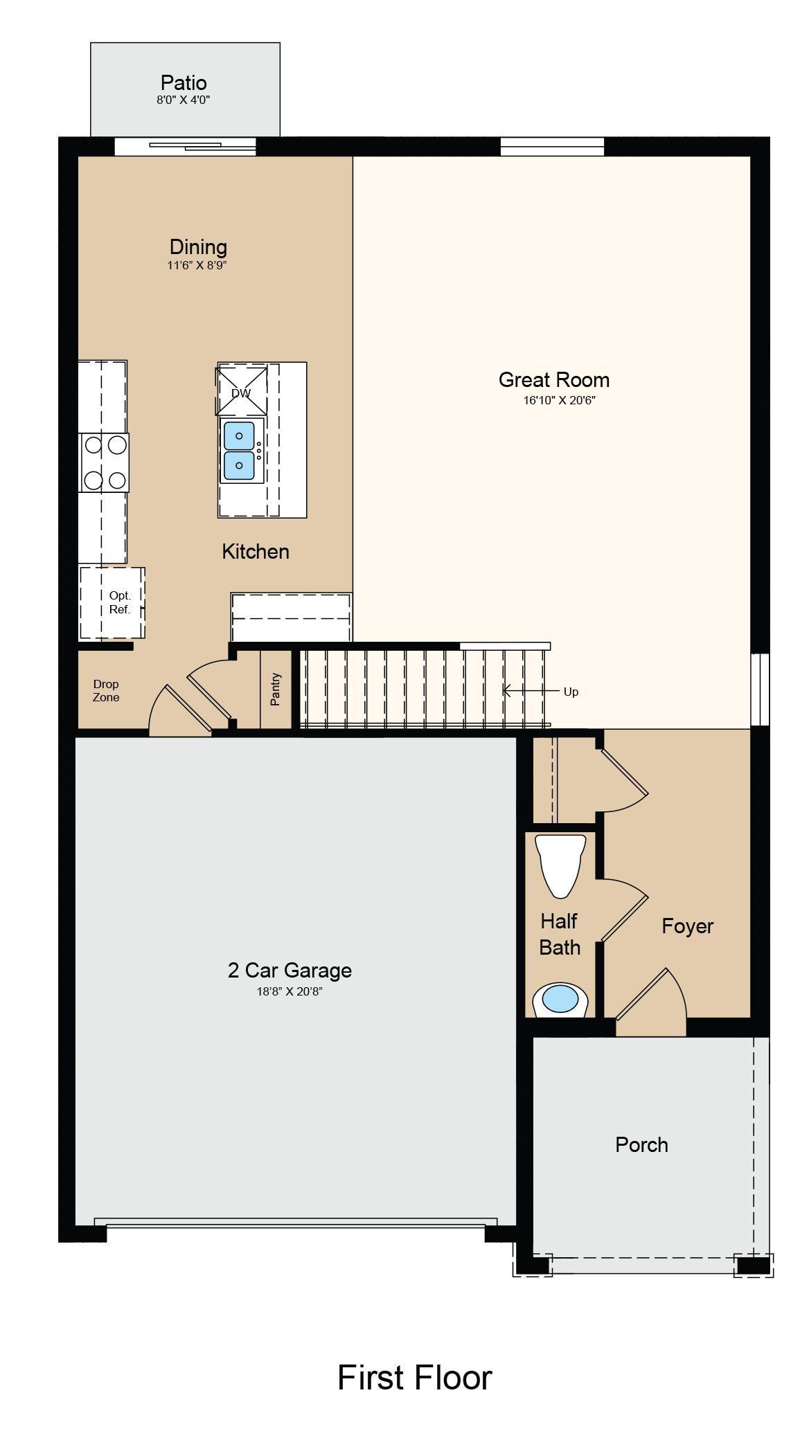 The two-story Eagle floor plan offers 2,271 square feet of thoughtfully designed, open-concept living space featuring 4 bedrooms, 2.5 bathrooms, a versatile loft, and a 2-car garage. On the first floor, you’ll find a welcoming foyer that flows into a spacious great room, dining area, and modern kitchen, plus a convenient half bath. Upstairs, enjoy a flexible loft space, three secondary bedrooms, a full bathroom, and laundry room. Your private primary suite is also located upstairs and includes a spacious bathroom with dual vanity sinks, a walk-in shower, and a generous walk-in closet. To top it off, the home includes a relaxing patio for seamless indoor/outdoor living—perfect for soaking up the beautiful Florida sunshine!