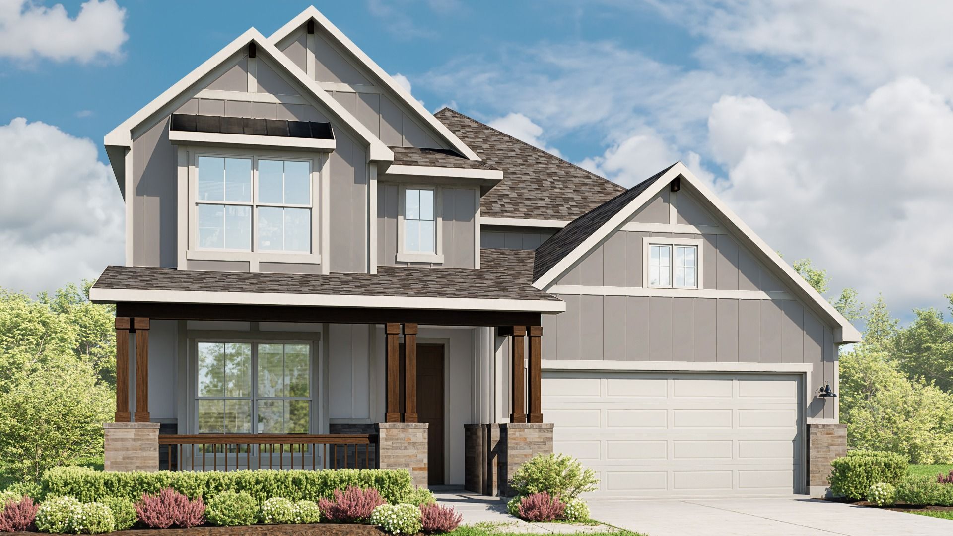 Welcome to The Elm, a stunning two-story home offering approximately 3,400 square feet of thoughtfully designed living space. With 4–5 bedrooms, 2.5–4 baths, and a 2–3 car garage, this home perfectly balances comfort, functionality, and style. Step inside and be greeted by a bright, open concept layout featuring a chef inspired kitchen with a large island, gourmet storage pantry, and seamless flow into the great room, perfect for entertaining and family gatherings. The primary suite, conveniently located on the main floor, offers a luxurious retreat with a spa inspired bath, dual vanities, a soaking tub, a glass enclosed shower, and an expansive dressing closet that combines elegance with everyday convenience. Upstairs, discover a spacious game room and media room ideal for relaxation ...