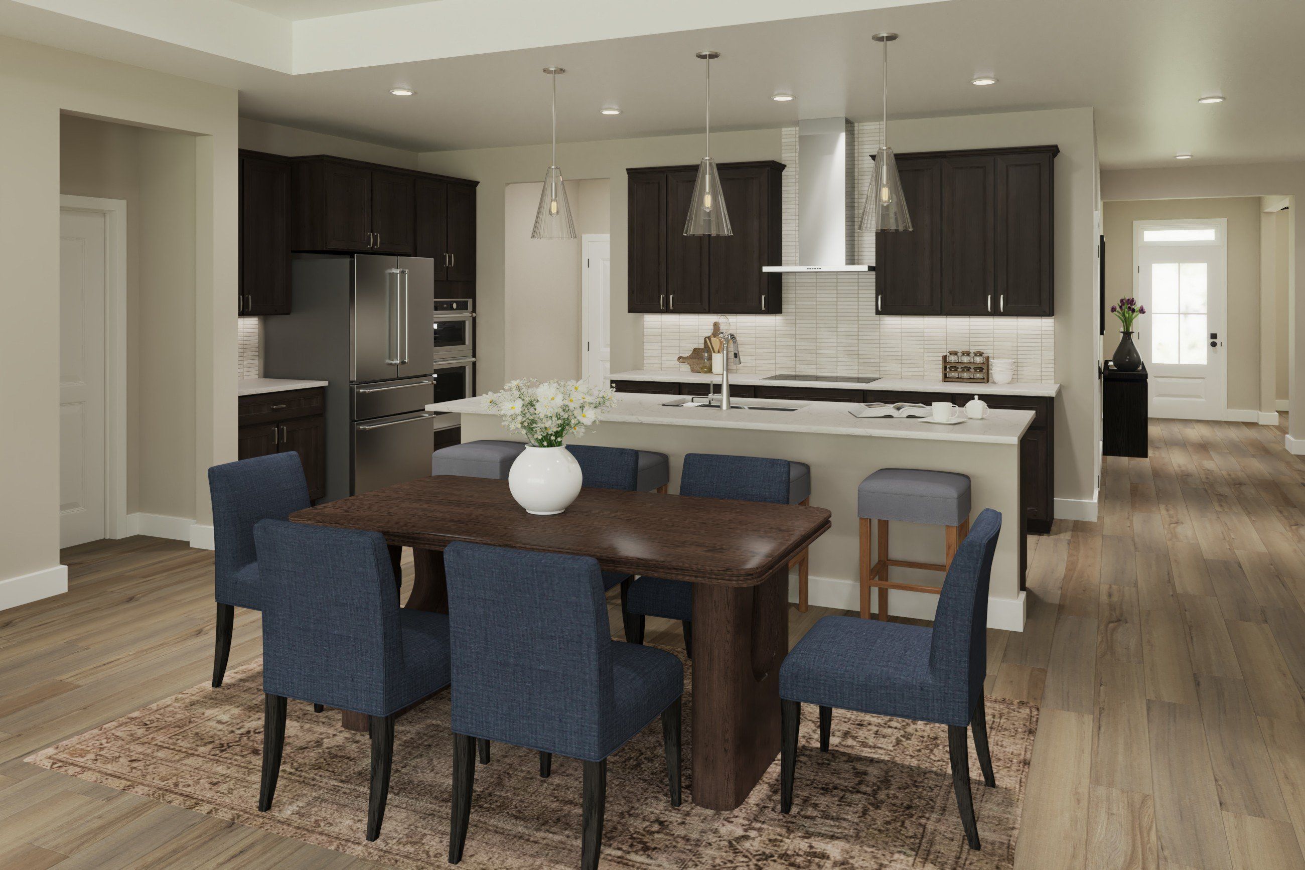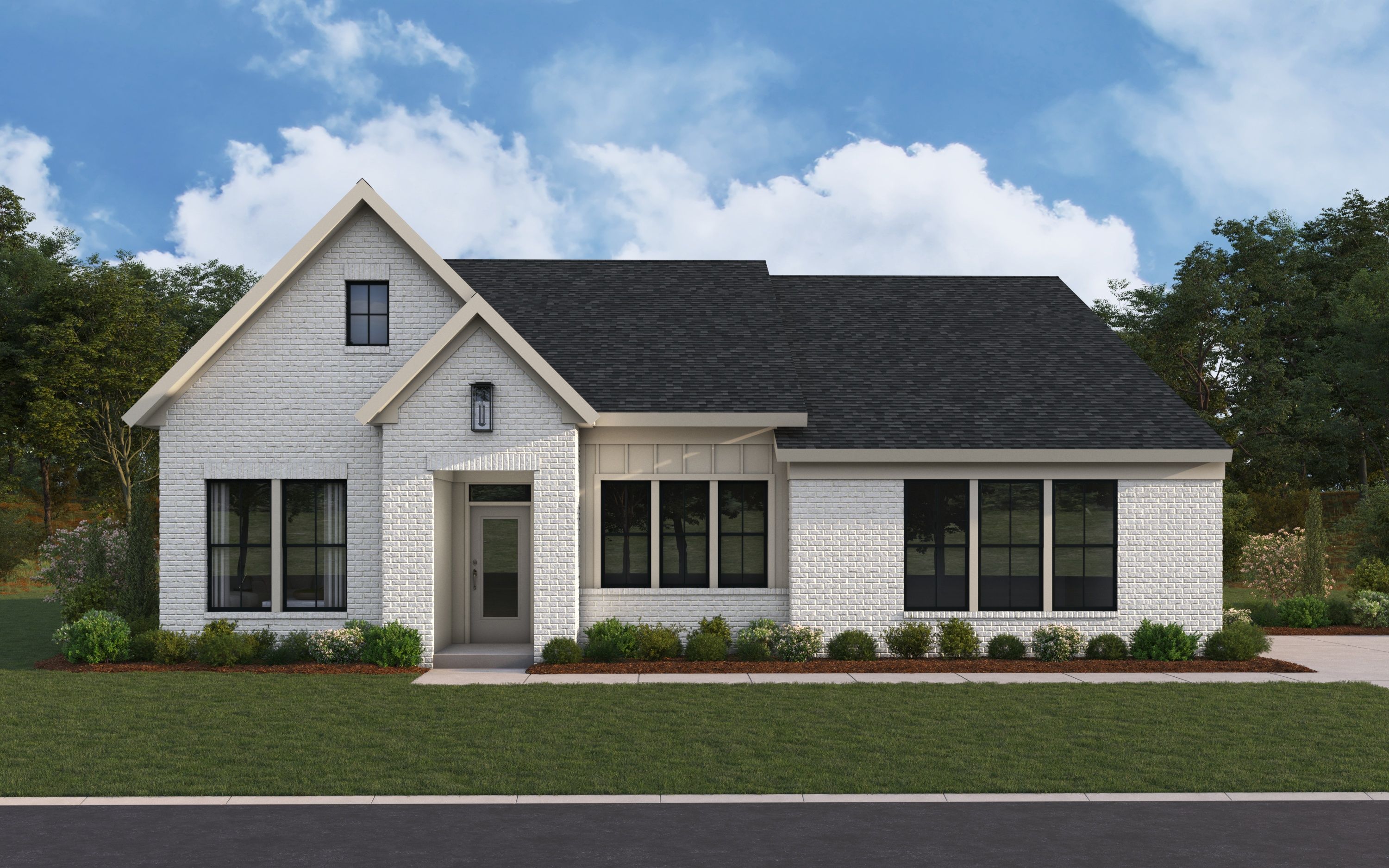 Discover our first ranch plan with an integrated 3-car garage, offering 9' ceilings and a spacious open layout with bedrooms thoughtfully placed on opposite sides of the home for privacy. The central Kitchen and Family Room showcase rear-facing views with an included window wall and patio door, with the option to upgrade to a large sliding glass door. Customize the layout with an optional Study or Guest Suite in place of the Dining Room. A standout feature is the option to transform Bedrooms 2 and 3 into our first-ever Designer Collection Generation Suite, complete with optional wet bar, washer/dryer hookup, and private garage access. The Owners Suite features a variety of luxury bath options and an optional direct Laundry connection.