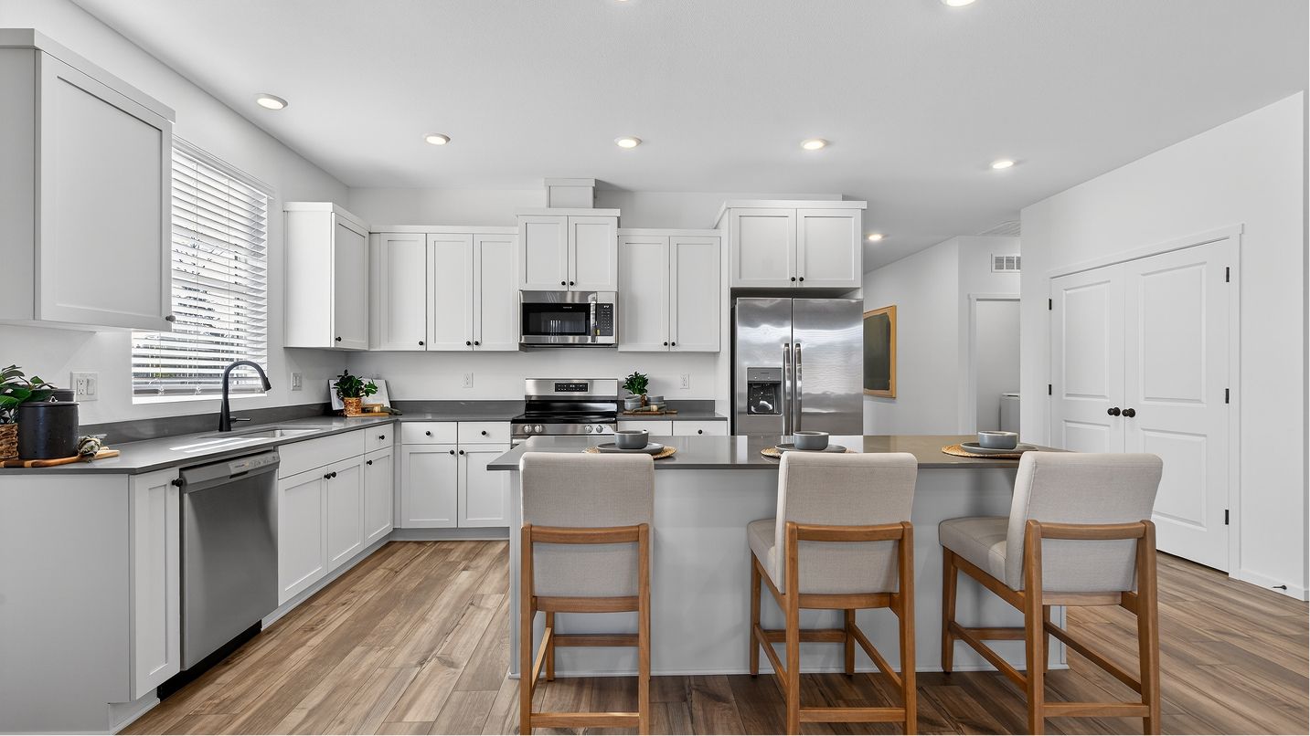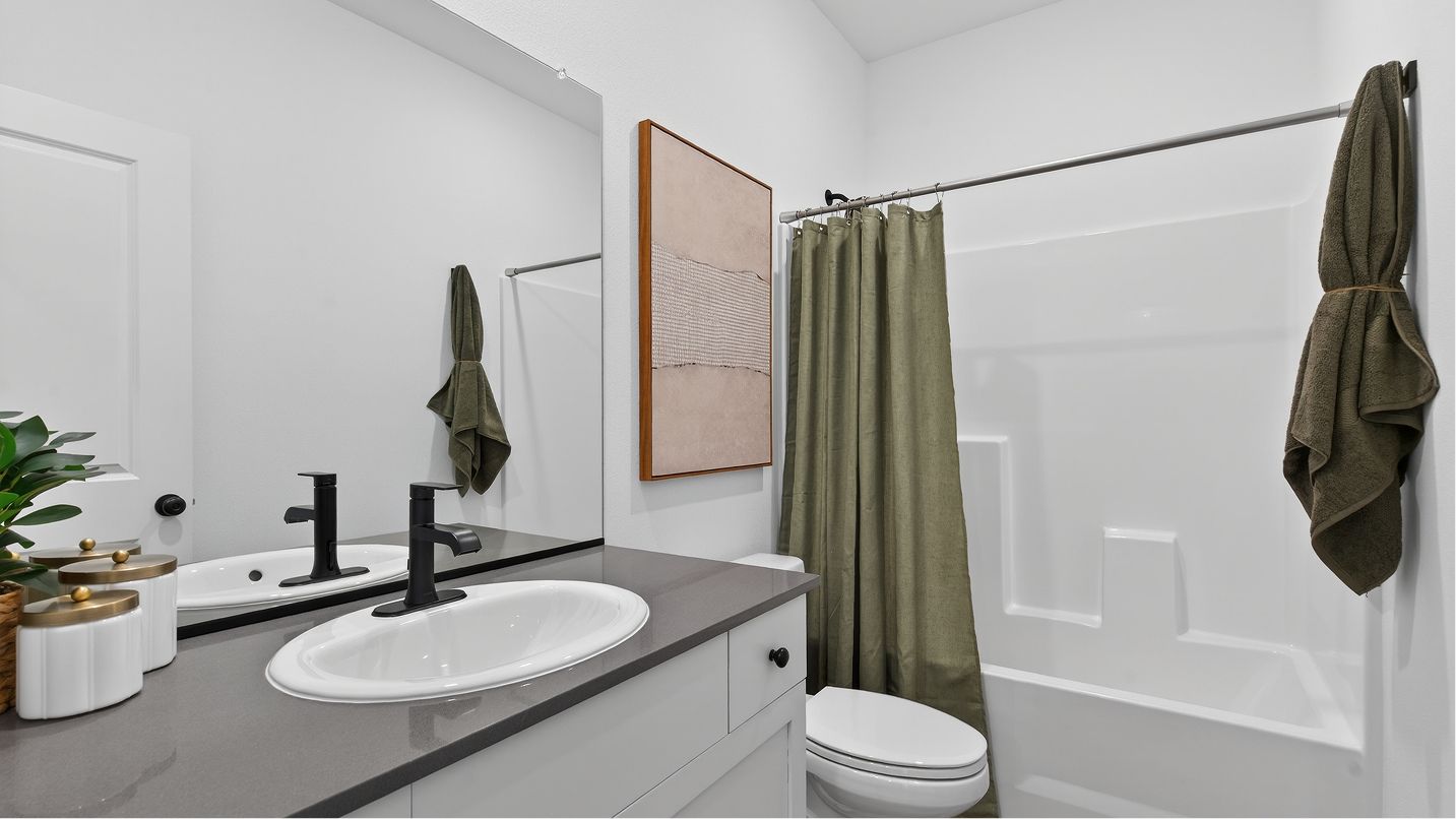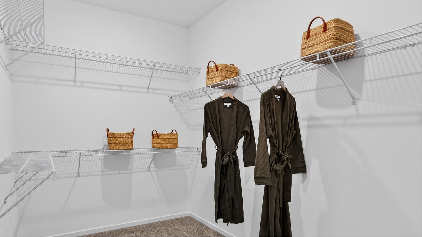 In this spacious single-story home, three secondary bedrooms frame the foyer, while the open floorplan among the kitchen, Great Room and dining room leads to a patio for versatile living. Nearby, the owner’s suite is tucked in the back of the home for increased privacy. Both two and three-car garage plans offer additional storage.