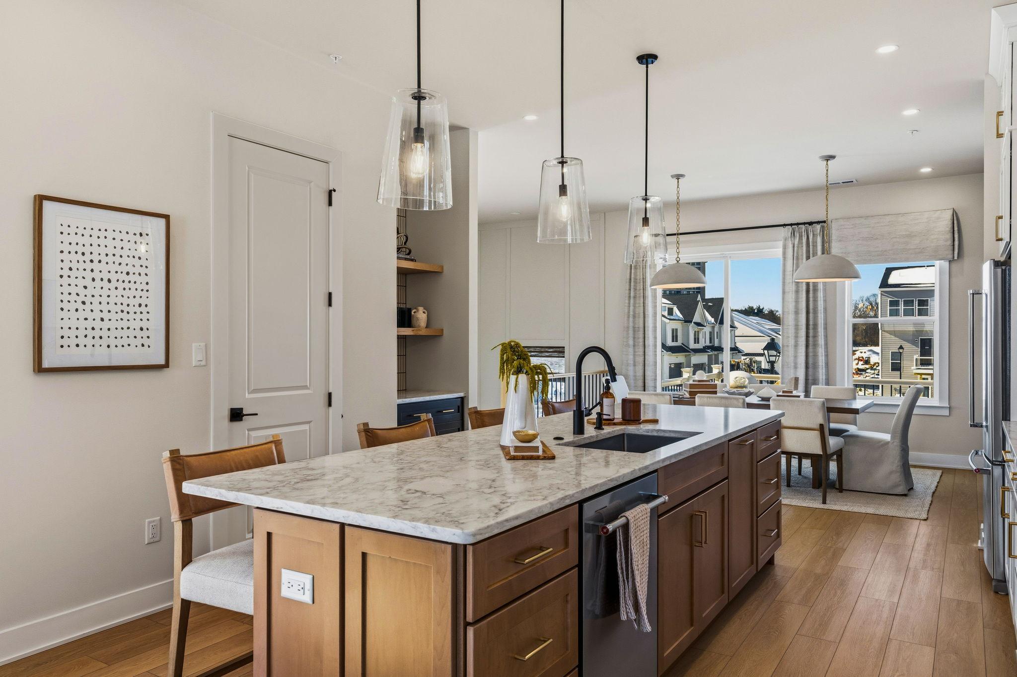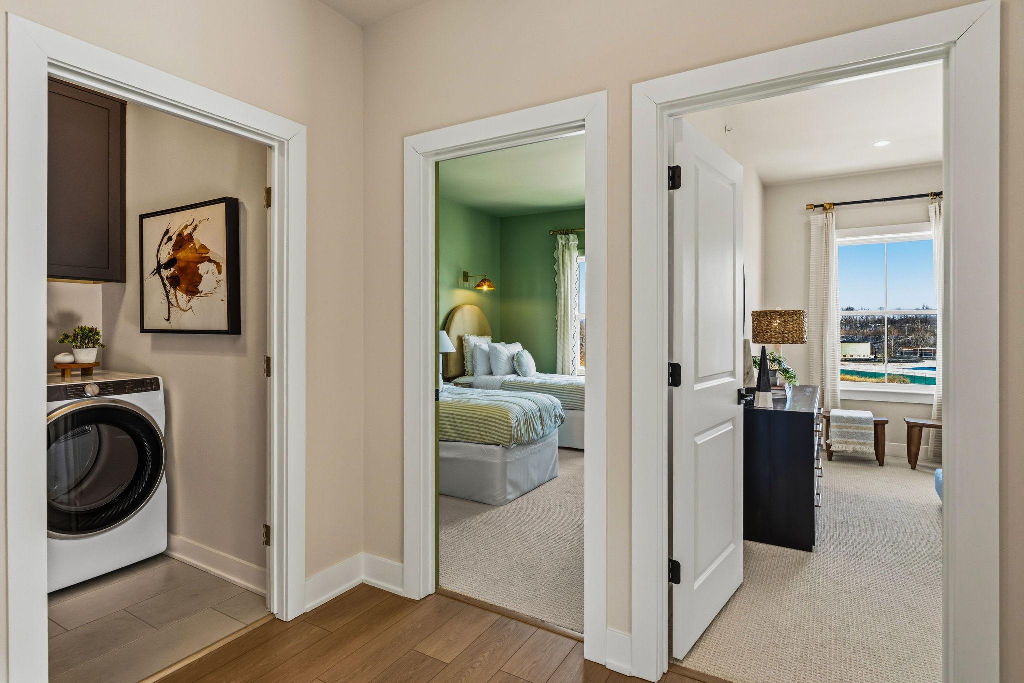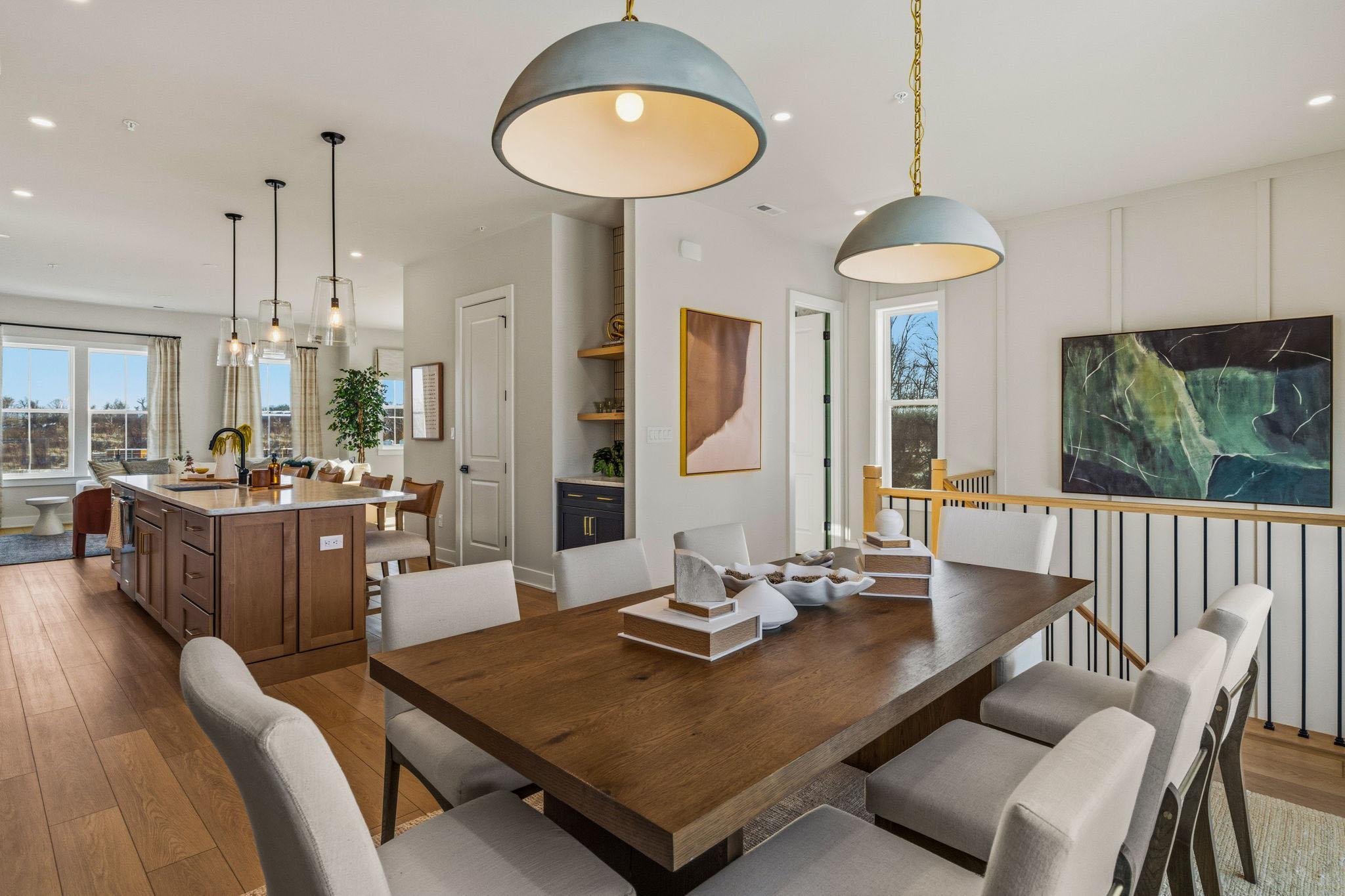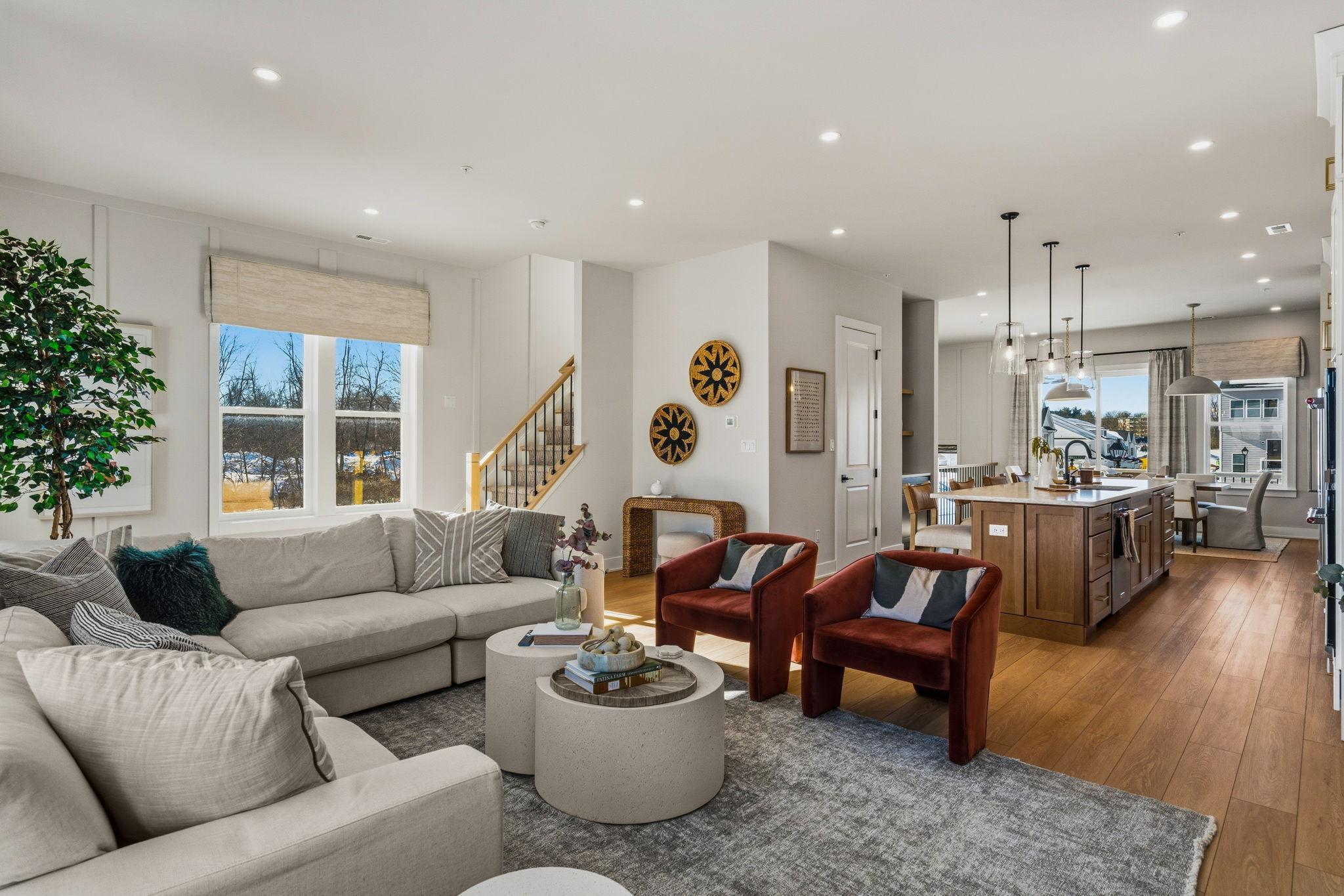 Welcome to the Finley II The Finley II townhome design is available as an end unit with front or side entry, or as an interior unit. Featuring 3+ bedrooms, 2.5+ baths and 2-car garage. The entry level features a welcoming foyer, bonus room or optional guest suite with full bathroom, and 2-car garage.The main living level offers an open-concept design with 10' ceiling heights, perfect for entertaining with a generously-sized great room adjacent to the kitchen. The kitchen features a large dining area, and an oversized center island with countertop overhang to allow for added seating as a breakfast bar. Upstairs, the third floor features a laundry room; large owner's suite with 2 walk-in closets and dual vanity bathroom with walk-in shower. Two secondary bedrooms and hall bath complete ...