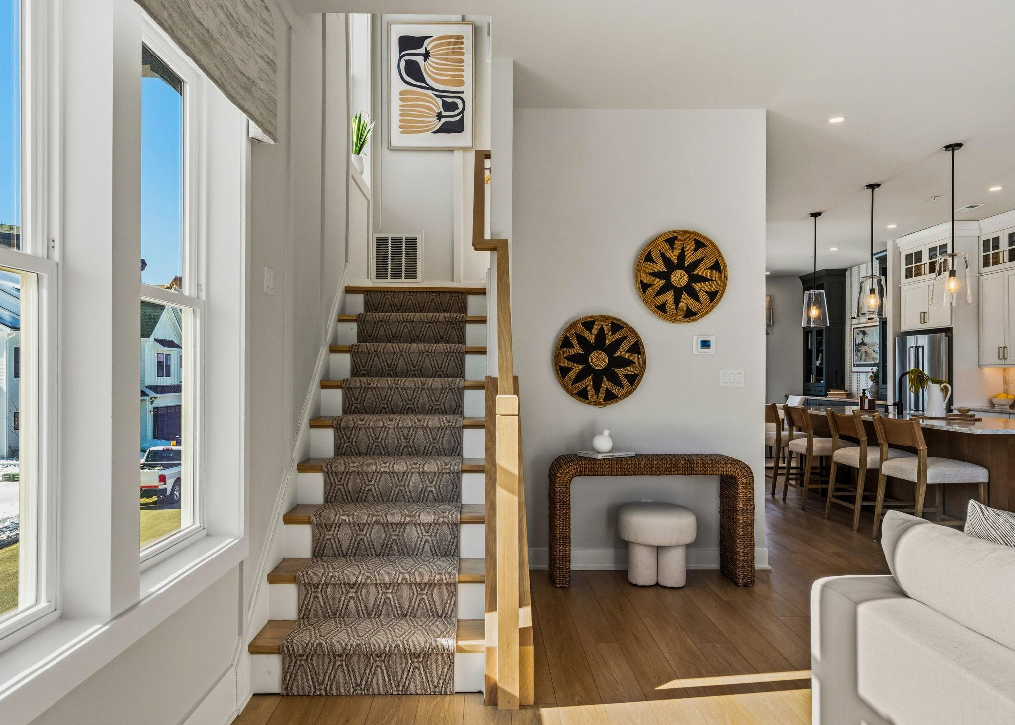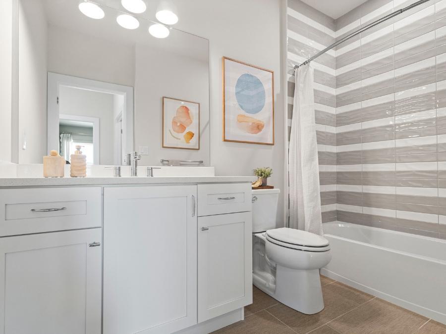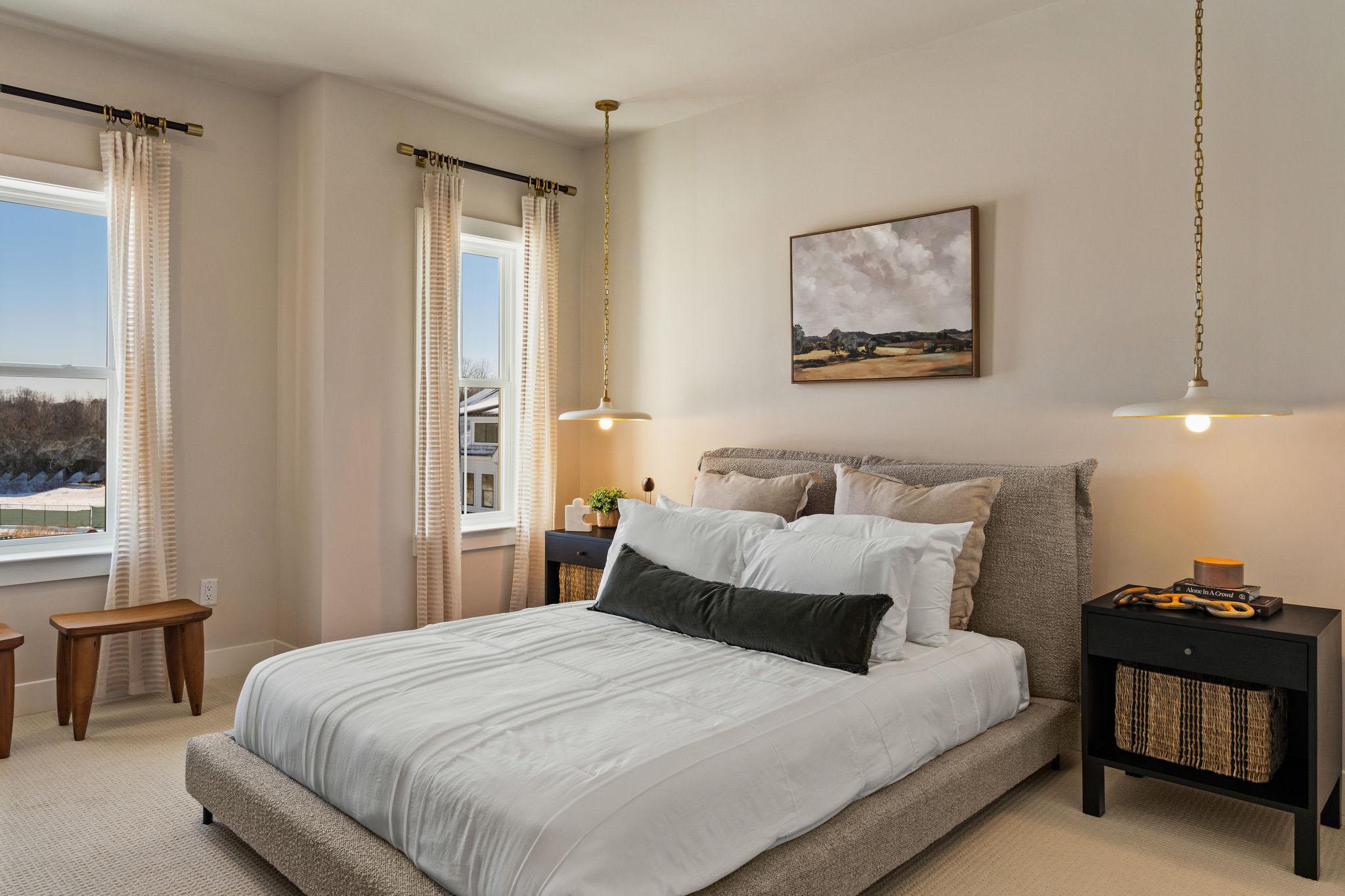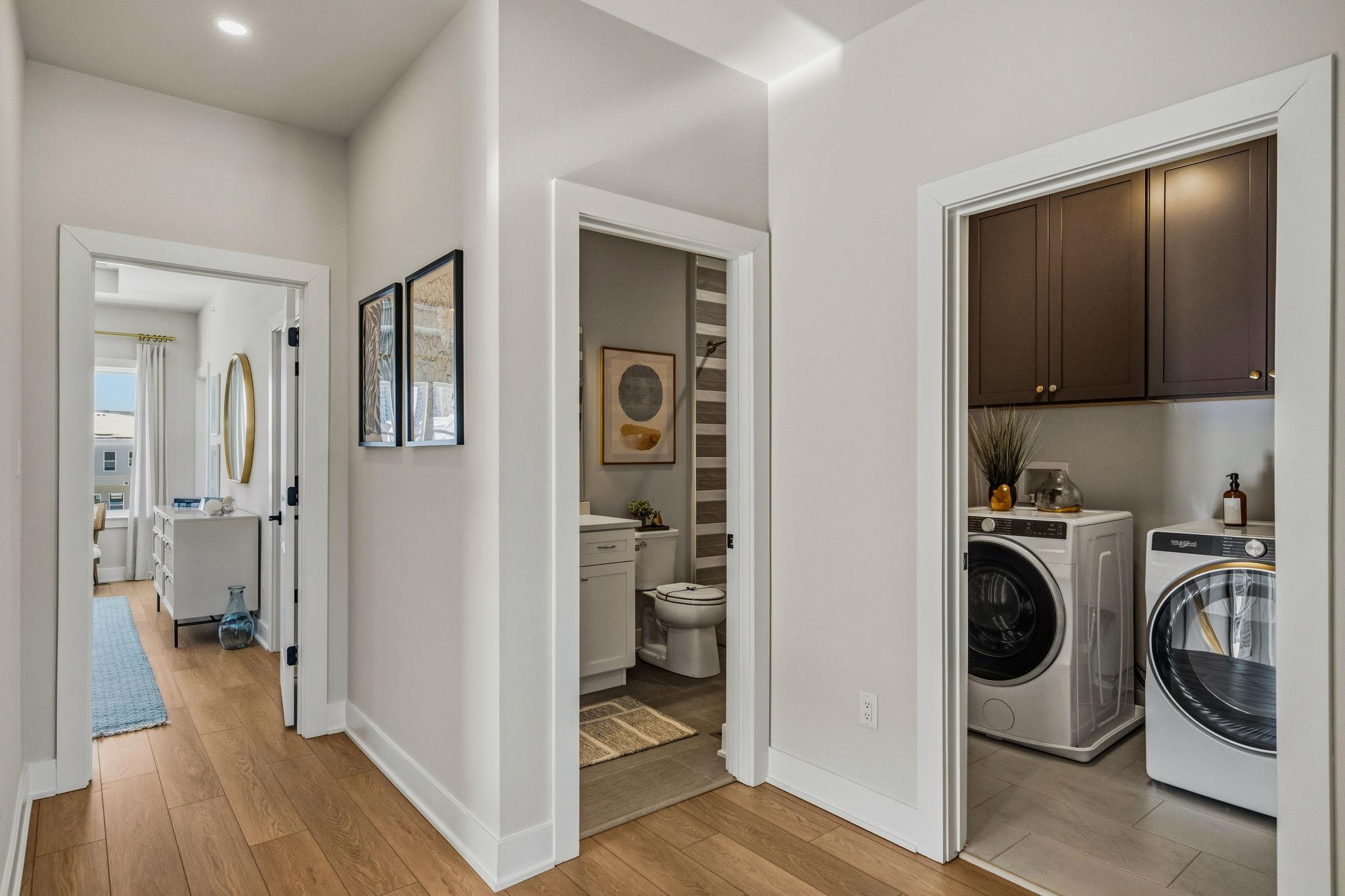 Welcome to the Finley II The Finley II townhome design is available as an end unit with front or side entry, or as an interior unit. Featuring 3+ bedrooms, 2.5+ baths and 2-car garage. The entry level features a welcoming foyer, bonus room or optional guest suite with full bathroom, and 2-car garage.The main living level offers an open-concept design with 10' ceiling heights, perfect for entertaining with a generously-sized great room adjacent to the kitchen. The kitchen features a large dining area, and an oversized center island with countertop overhang to allow for added seating as a breakfast bar. Upstairs, the third floor features a laundry room; large owner's suite with 2 walk-in closets and dual vanity bathroom with walk-in shower. Two secondary bedrooms and hall bath complete ...